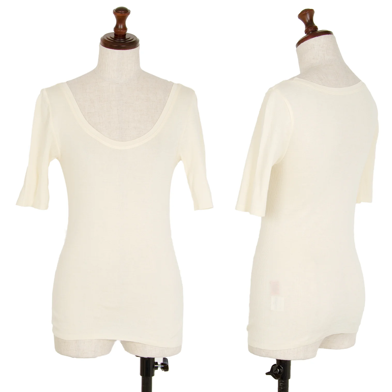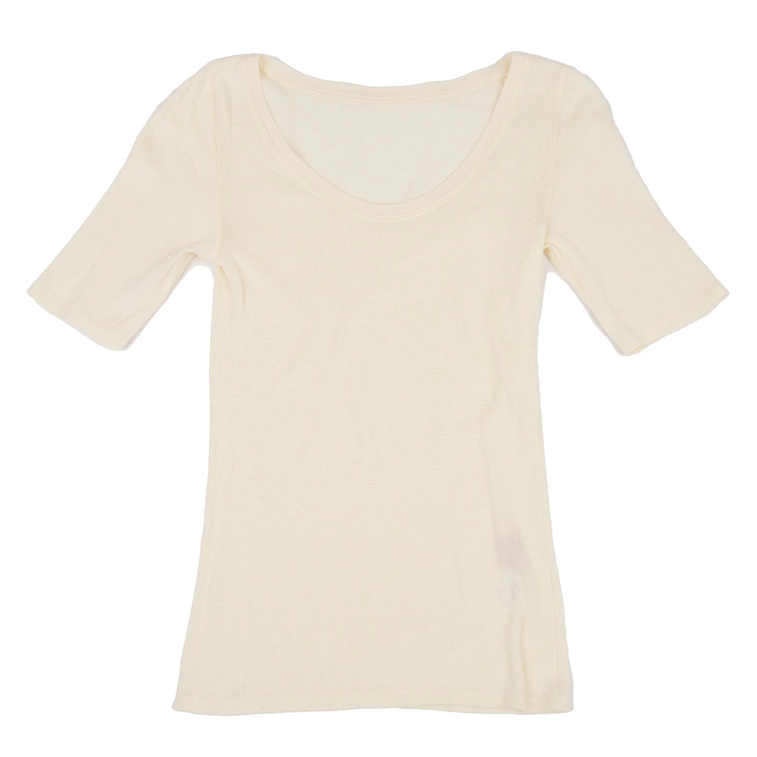 イッセイミヤケ ハートISSEY MIYAKE HaaT コットンサイドリブUネック5分袖Tシャツ ベージュ2