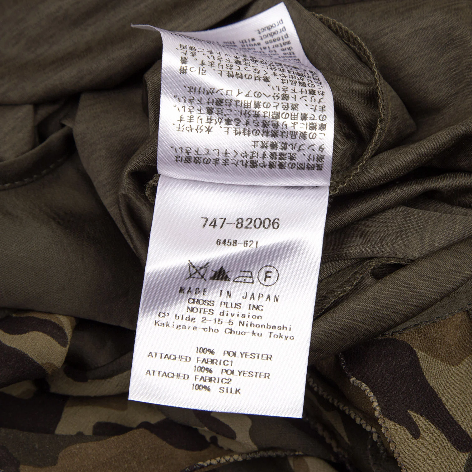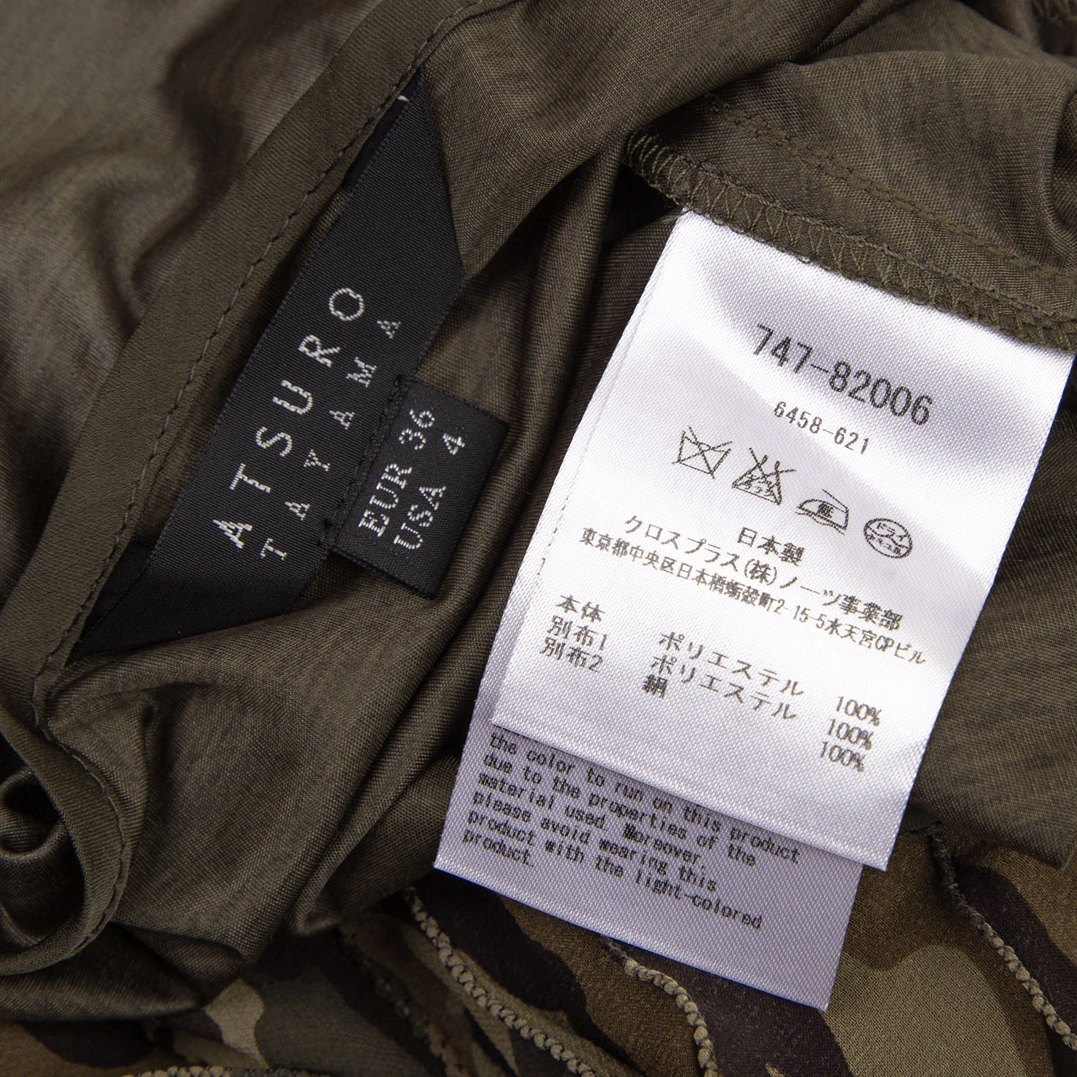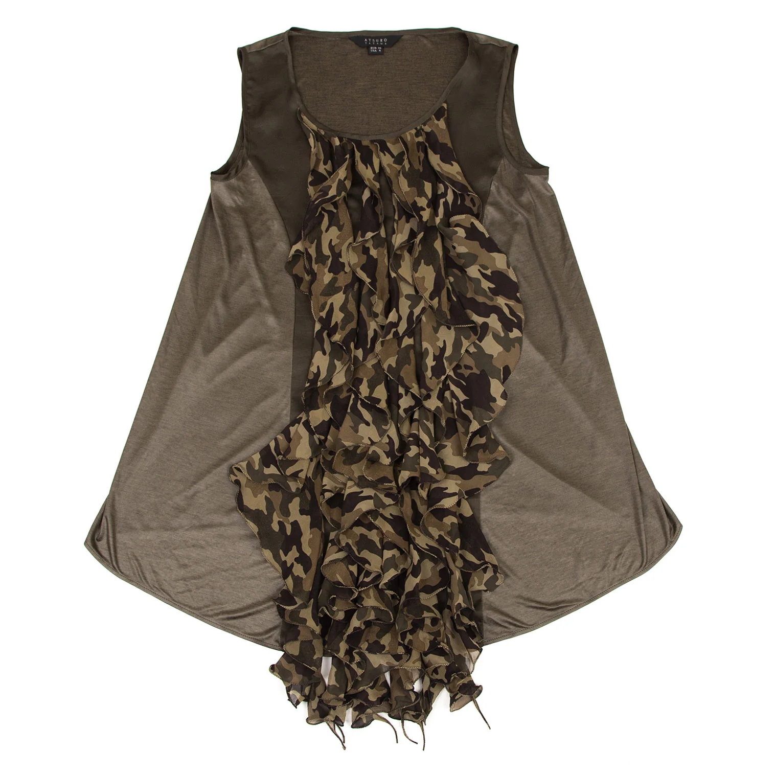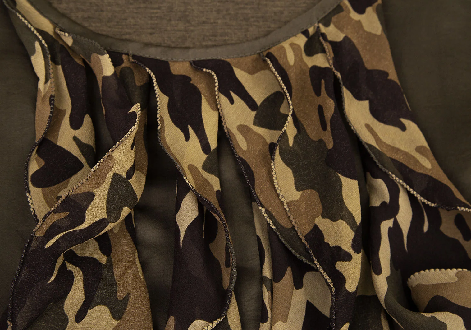 アツロウタヤマATSURO TAYAMA シルク切替迷彩フリル装飾ノースリーブトップス カーキ36