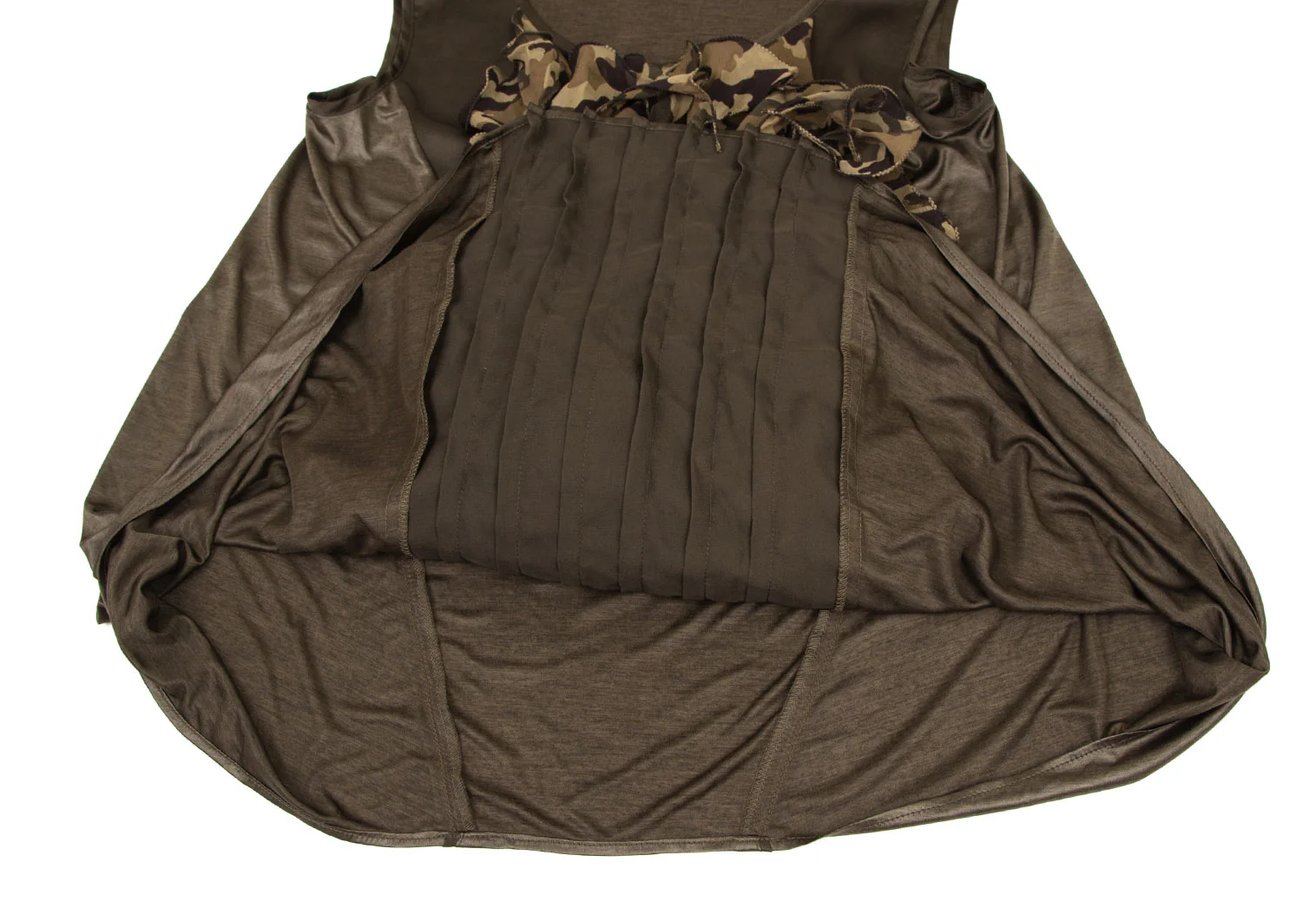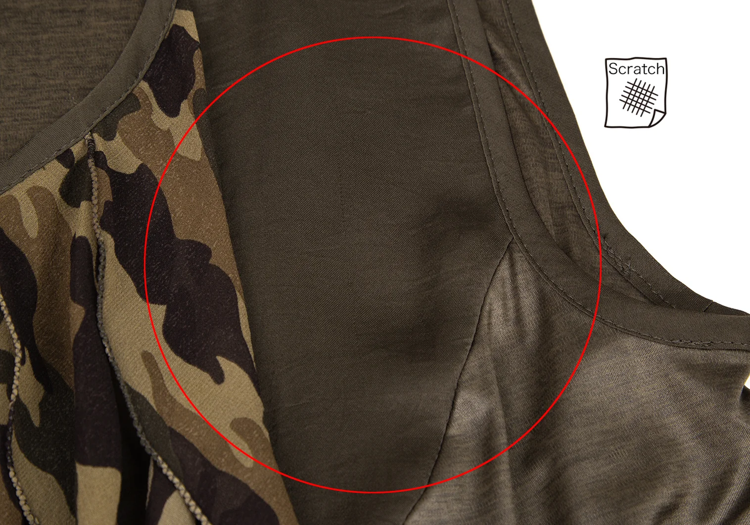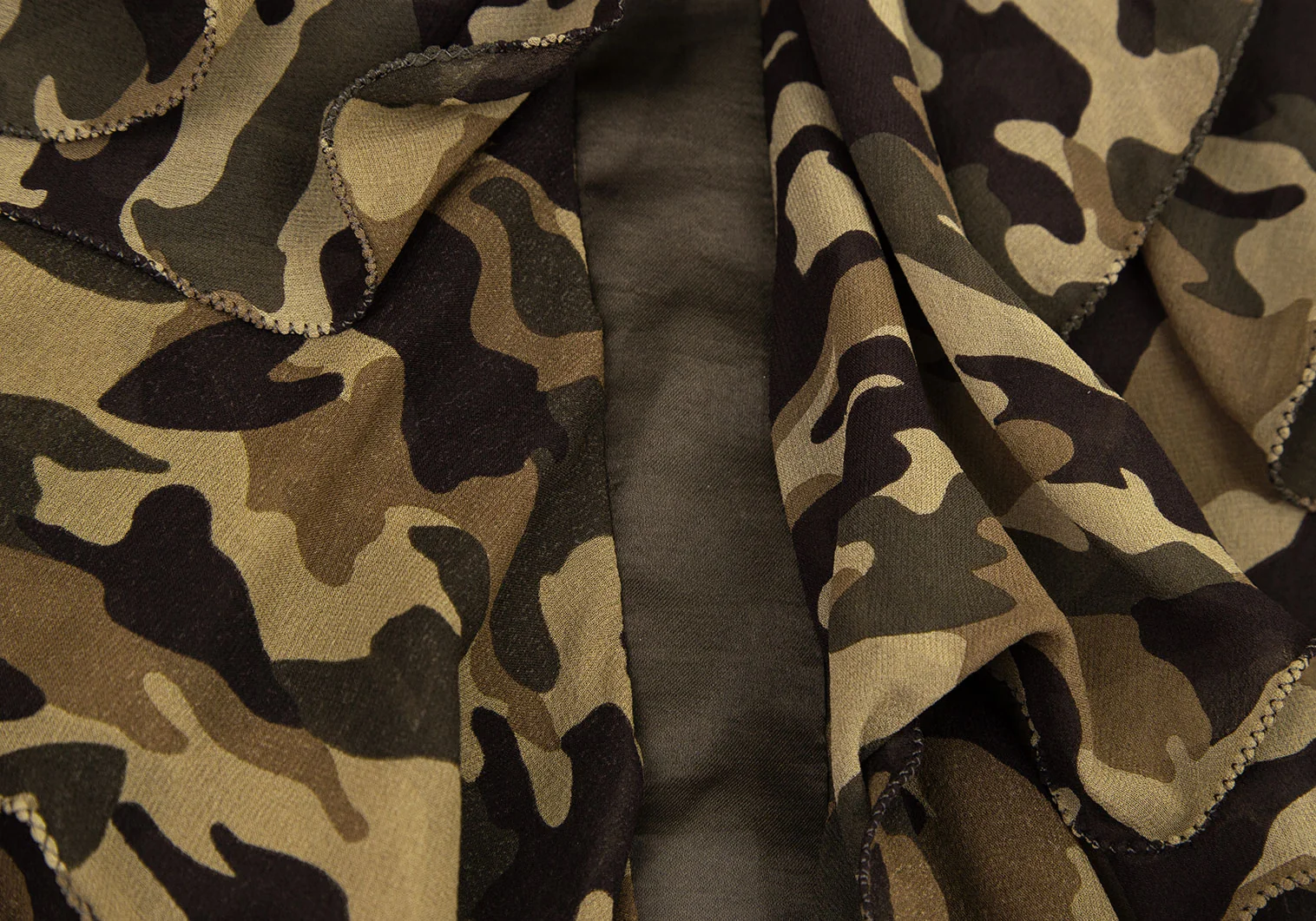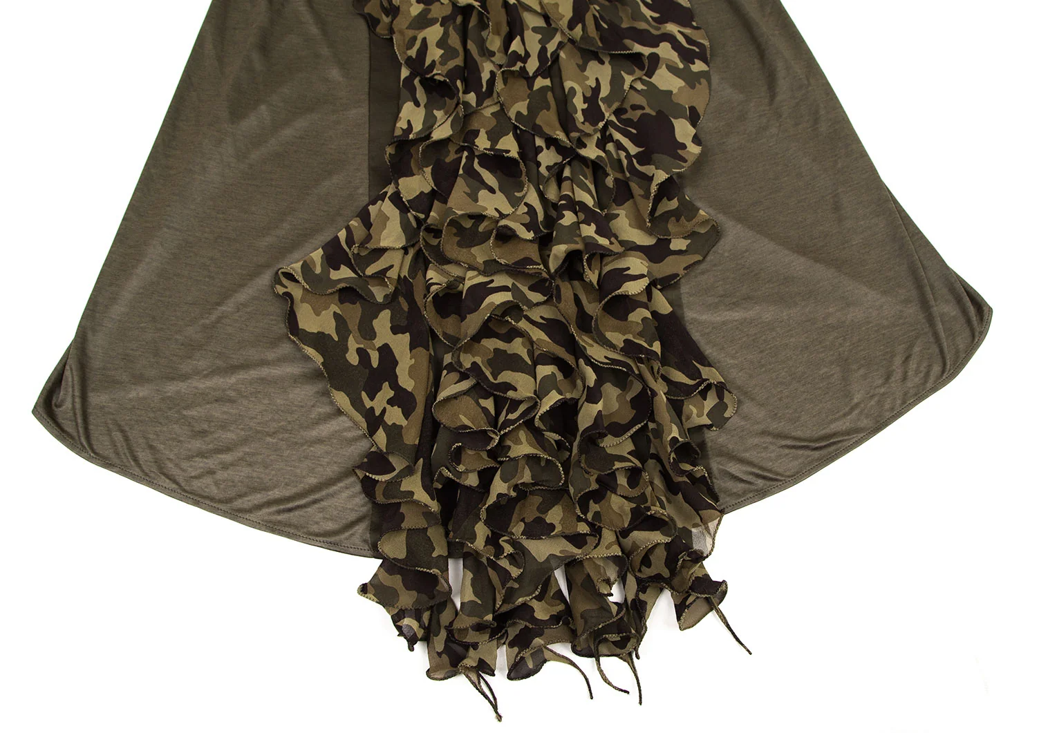 アツロウタヤマATSURO TAYAMA シルク切替迷彩フリル装飾ノースリーブトップス カーキ36