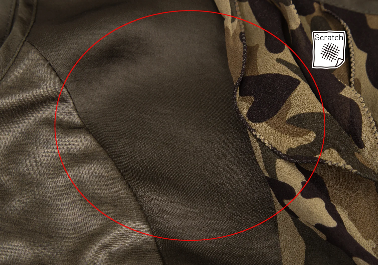 前に糸引きがあります(写真参照)。その他に目立ったシミ、汚れ、ほつれ等なくいい状態です。クリーニング済み