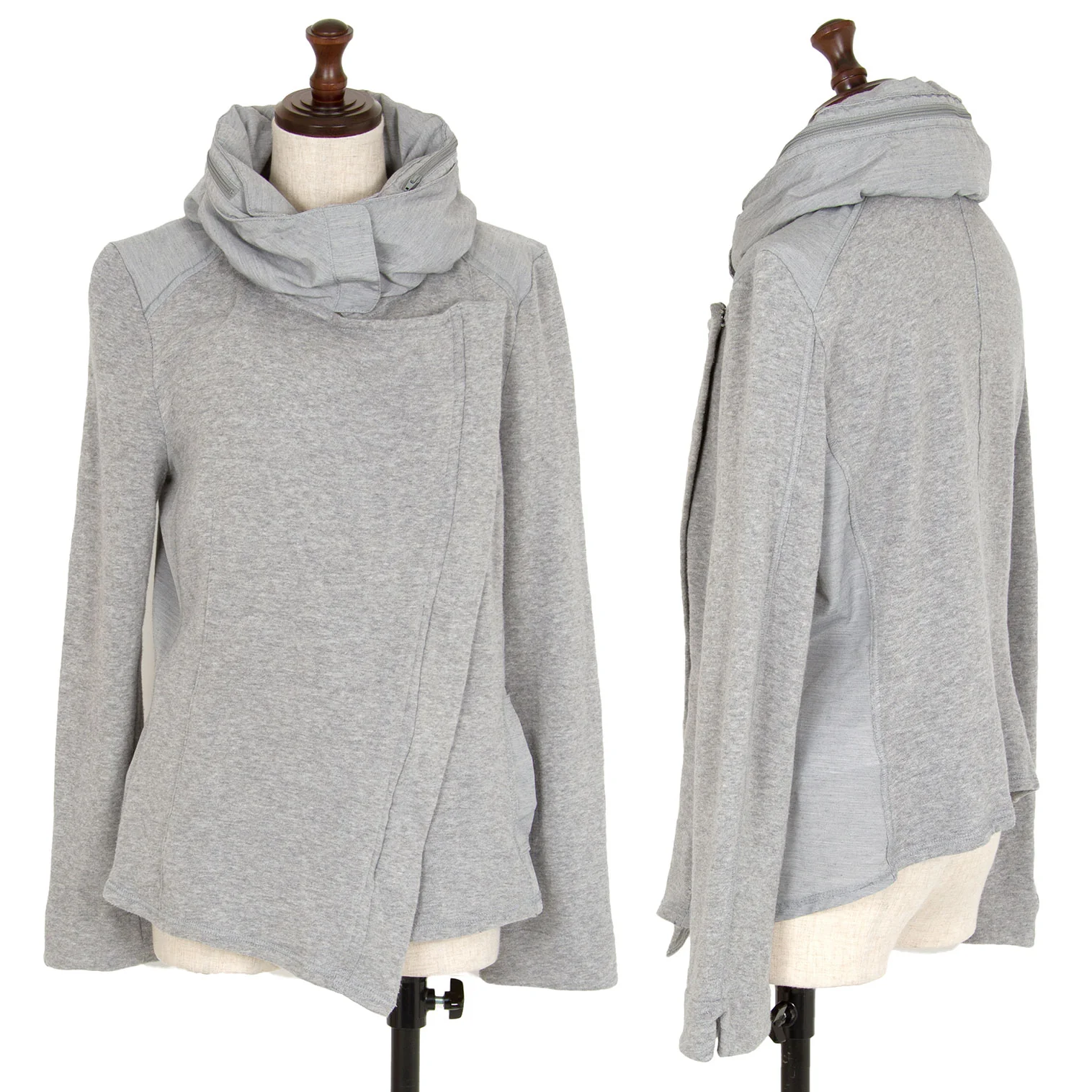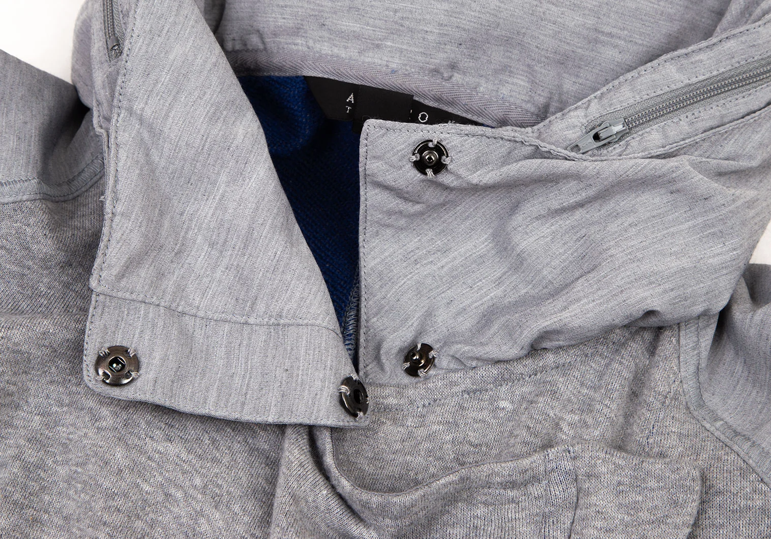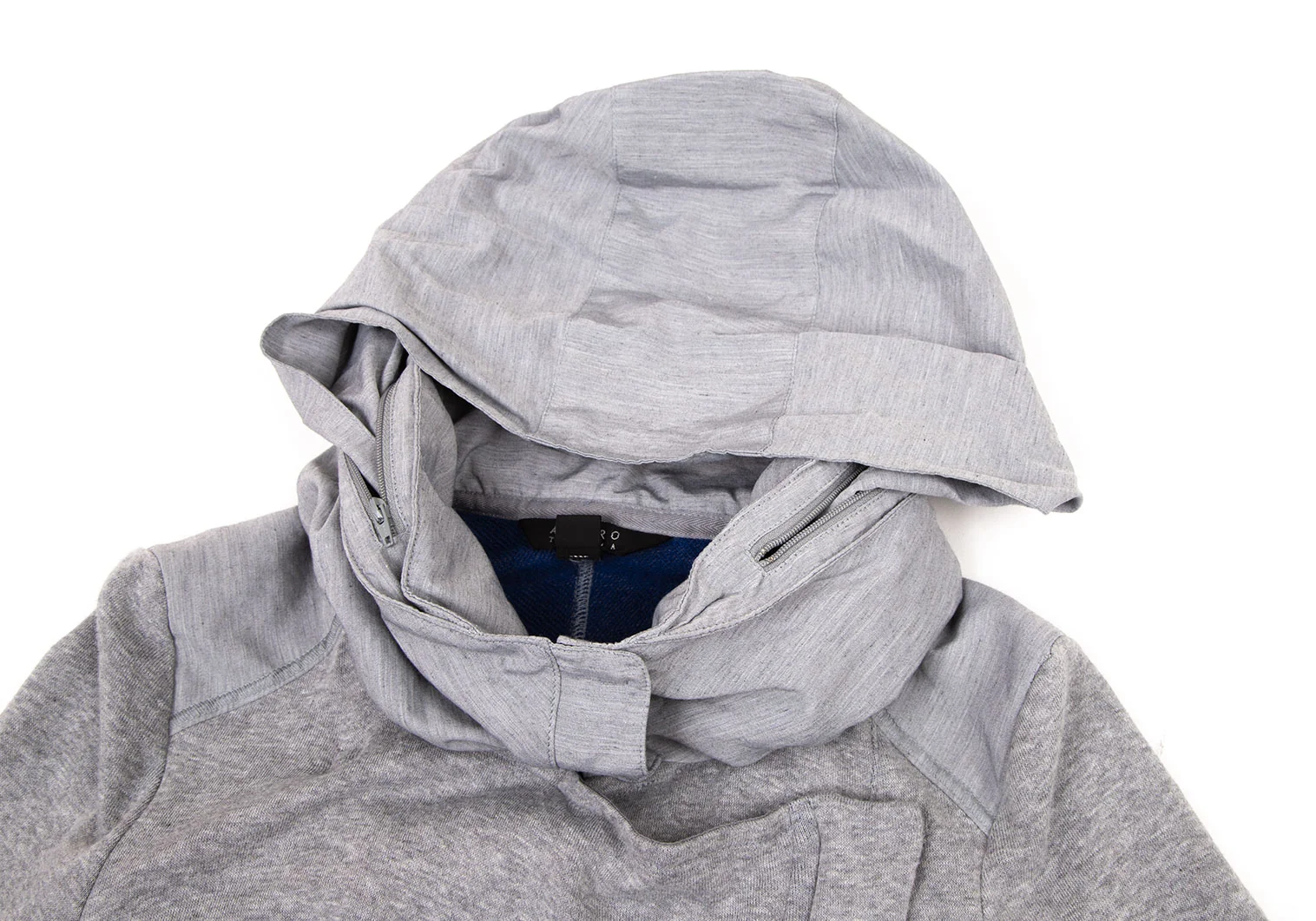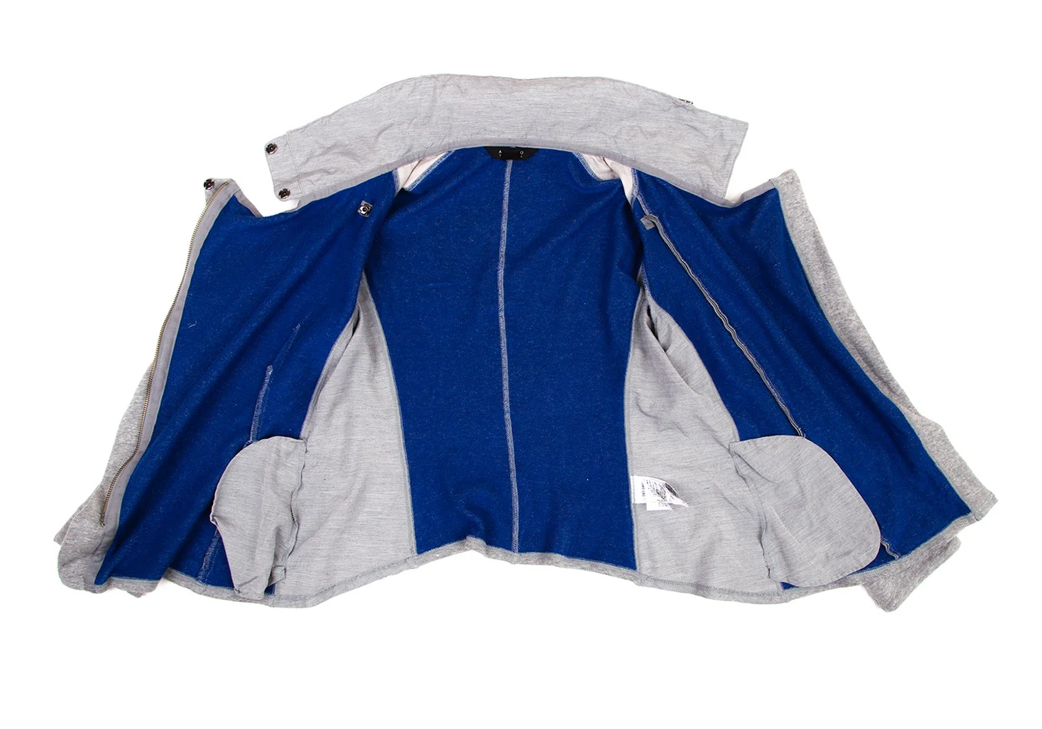 アツロウタヤマATSURO TAYAMA コットンフード収納バイカラースウェットライダースジャケット グレー青36