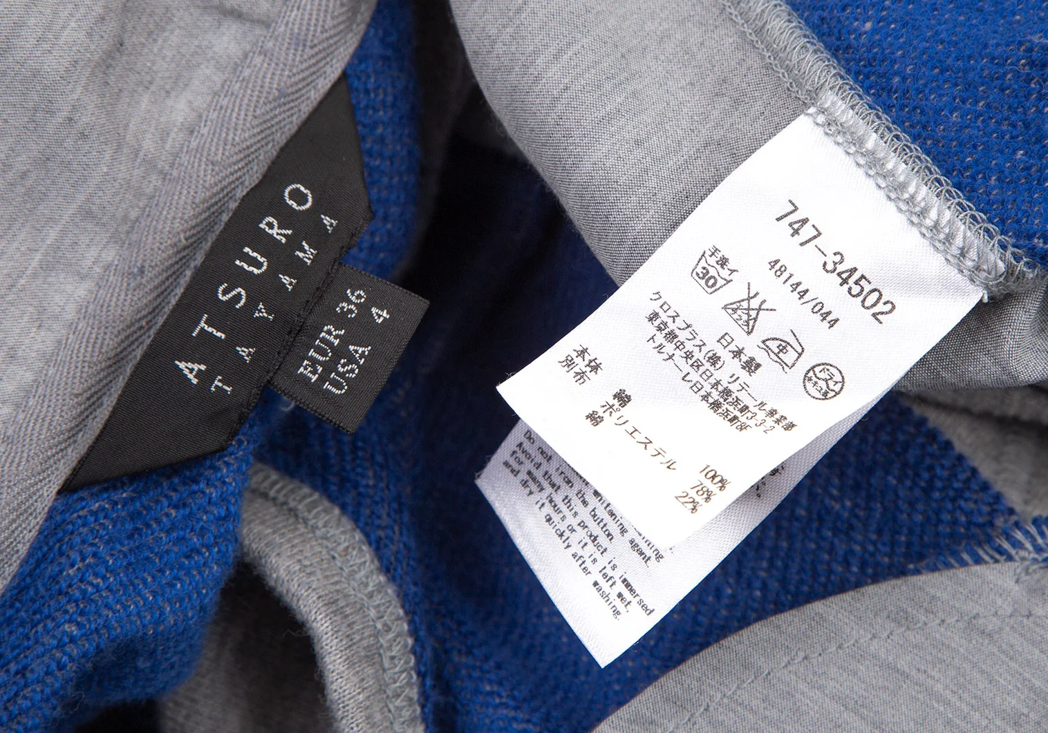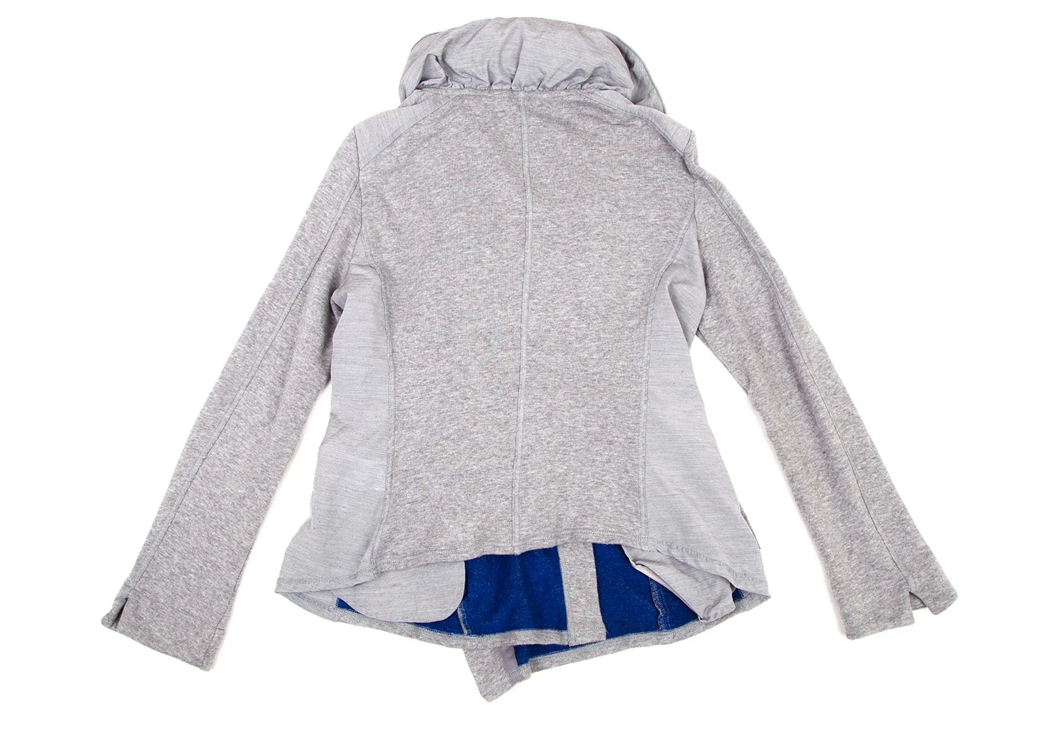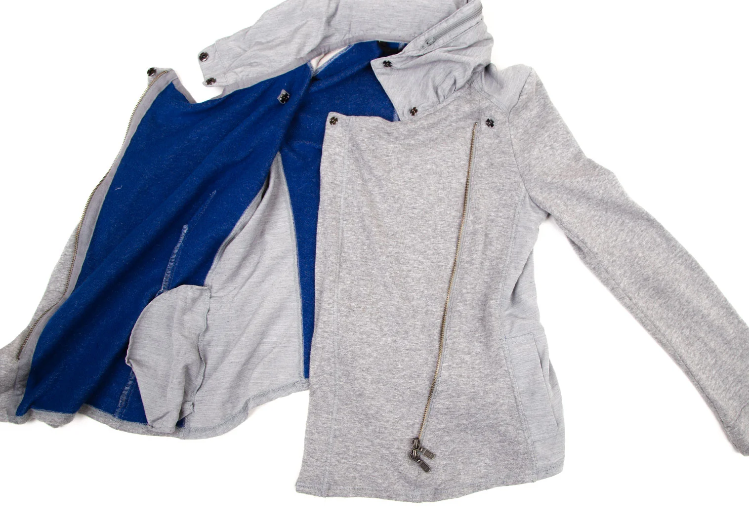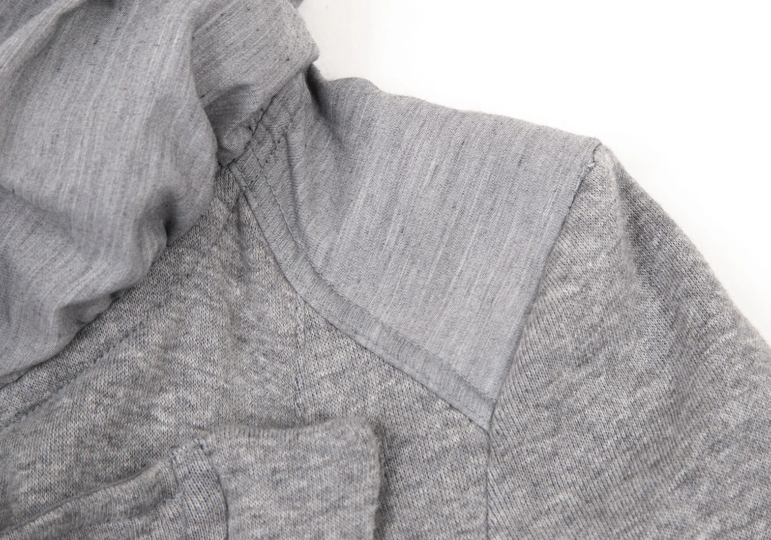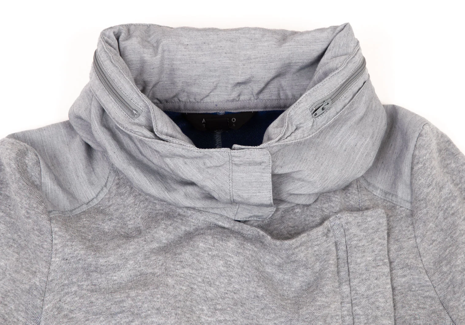 アツロウタヤマATSURO TAYAMA コットンフード収納バイカラースウェットライダースジャケット グレー青36