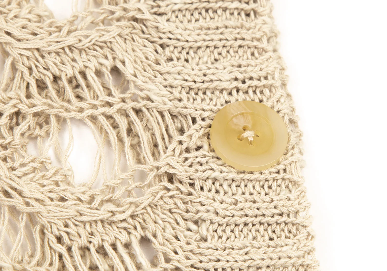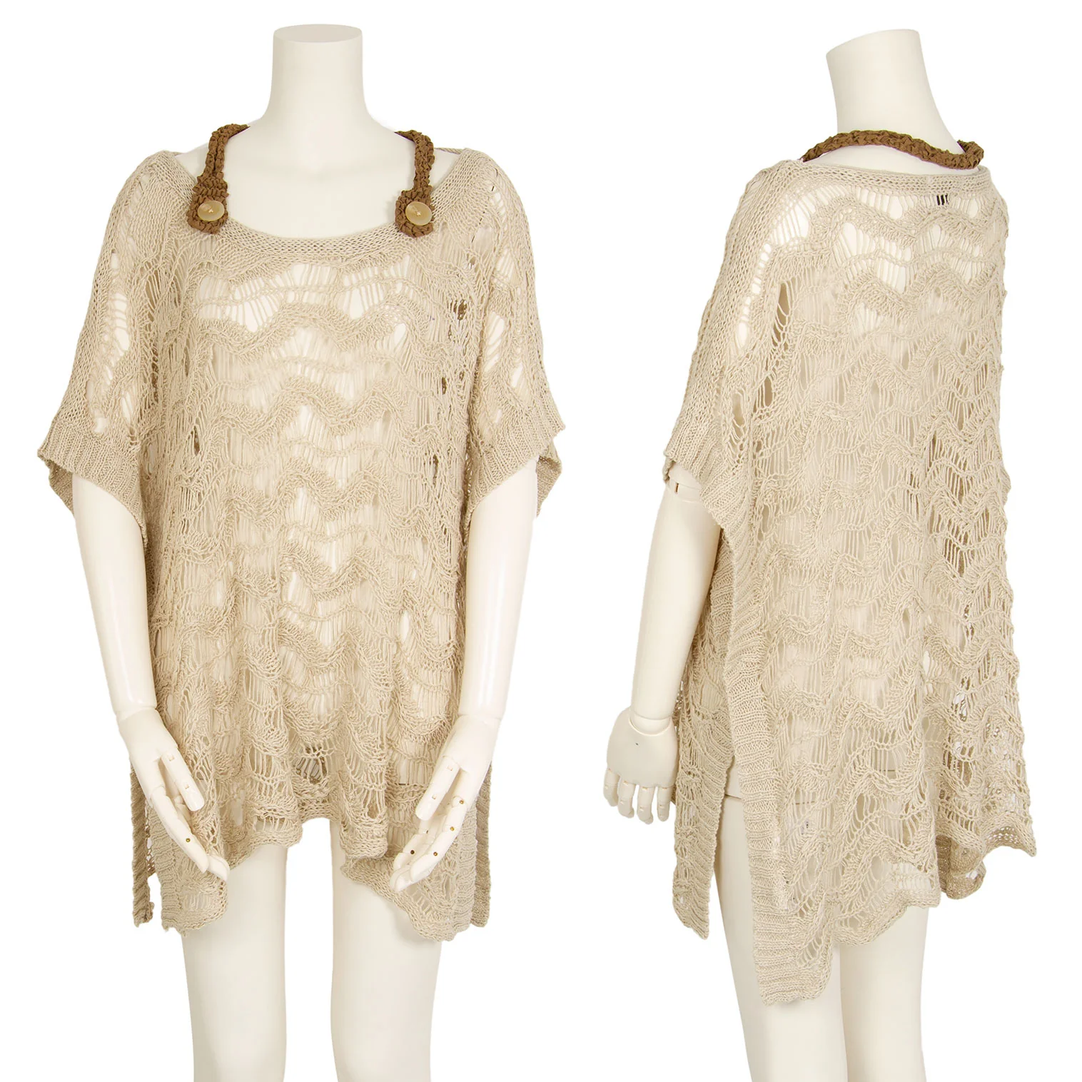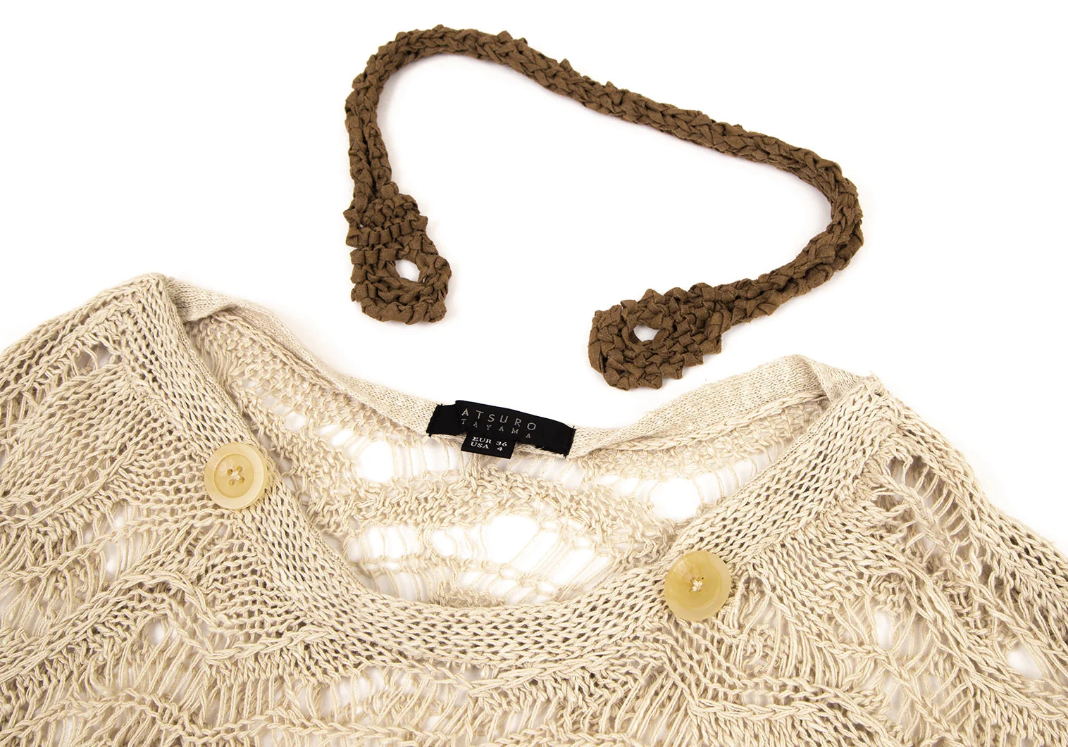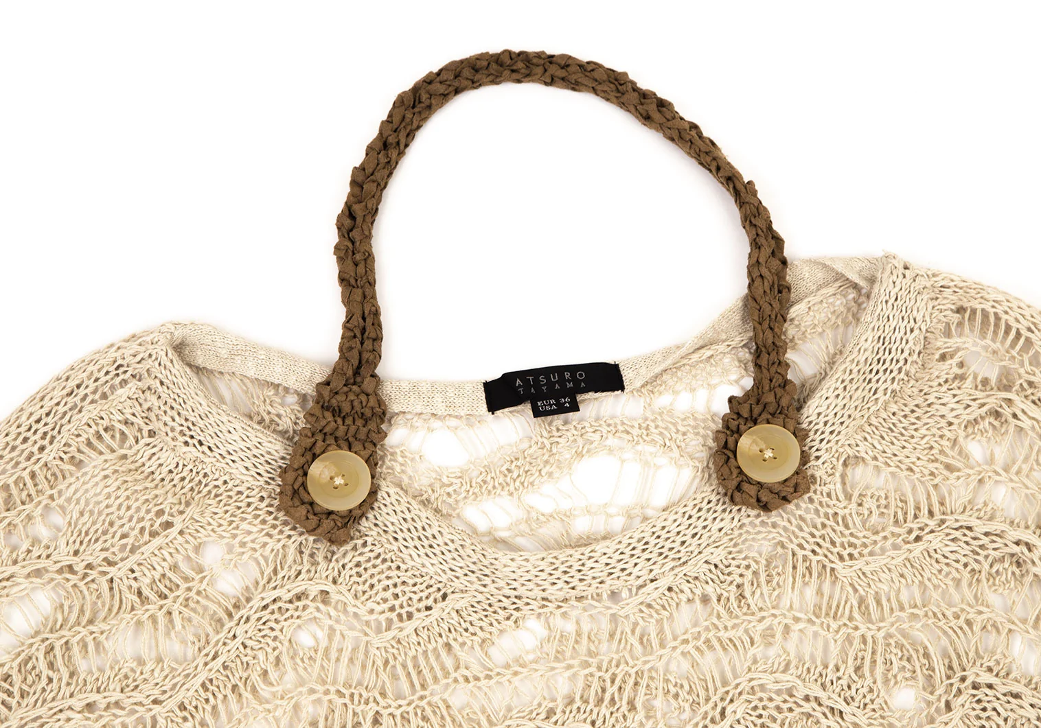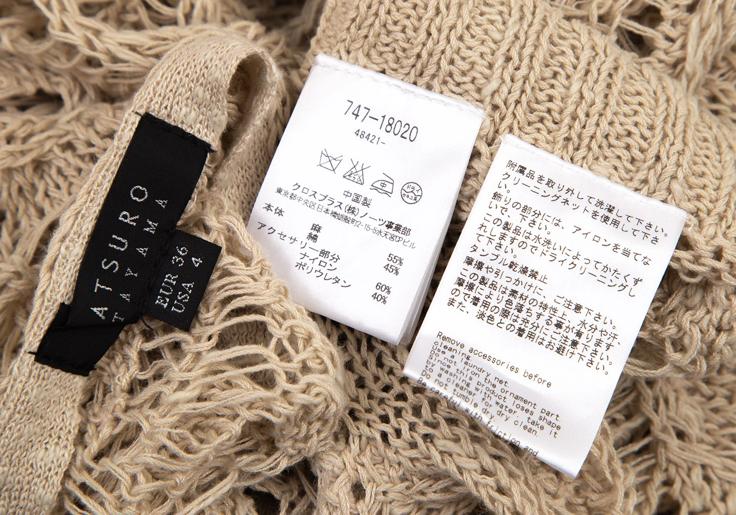 アツロウタヤマATSURO TAYAMA リネンコットンネック装飾カギ編みニットトップス ベージュ茶36