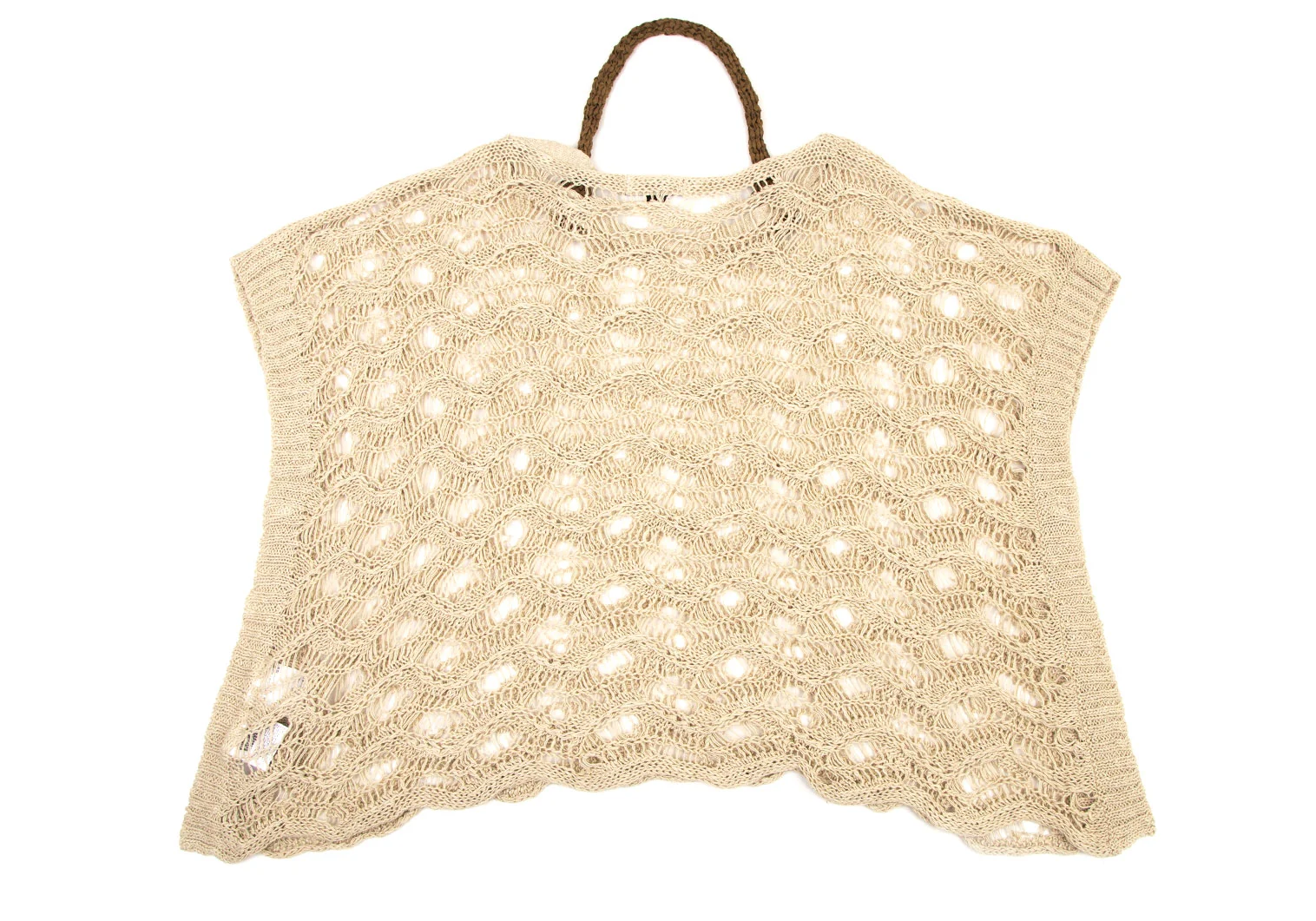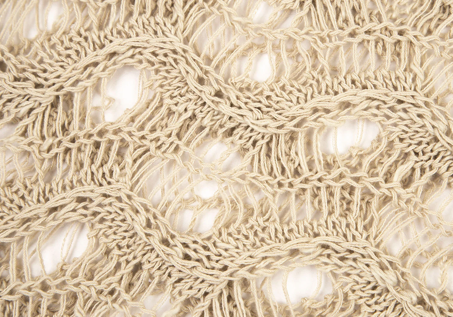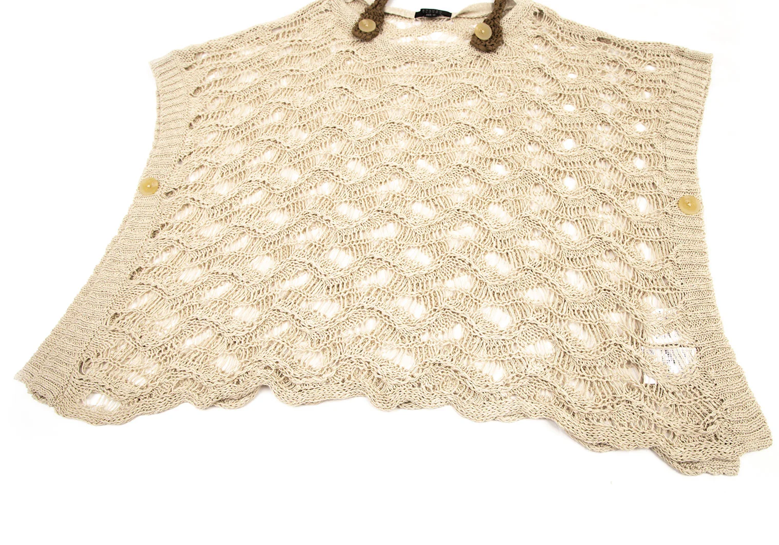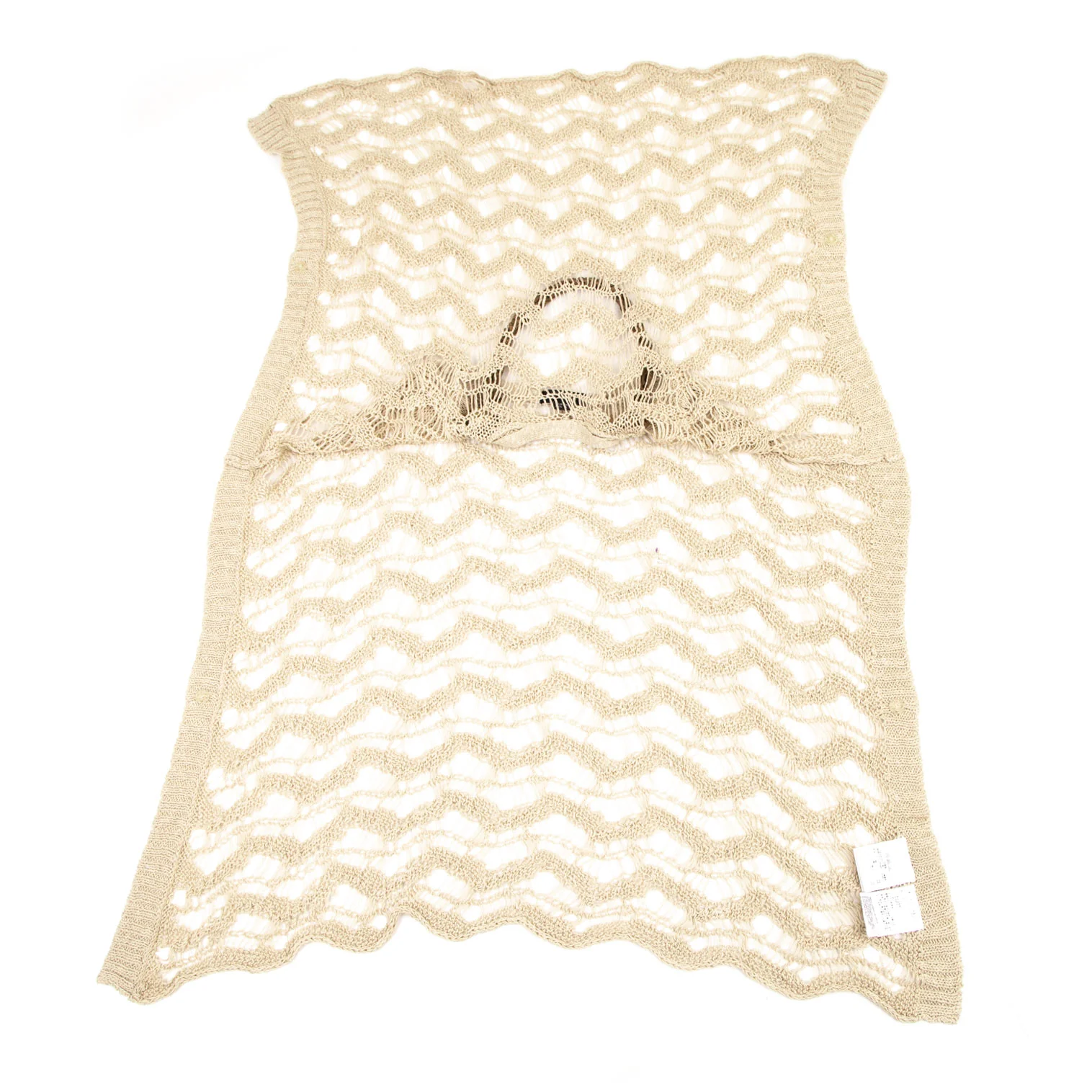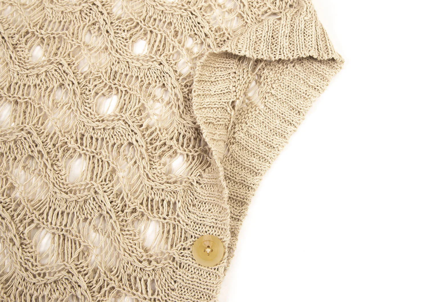 アツロウタヤマATSURO TAYAMA リネンコットンネック装飾カギ編みニットトップス ベージュ茶36