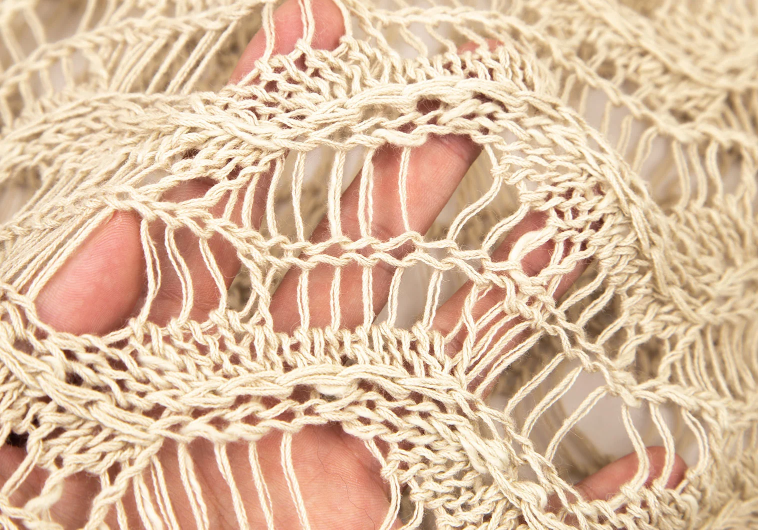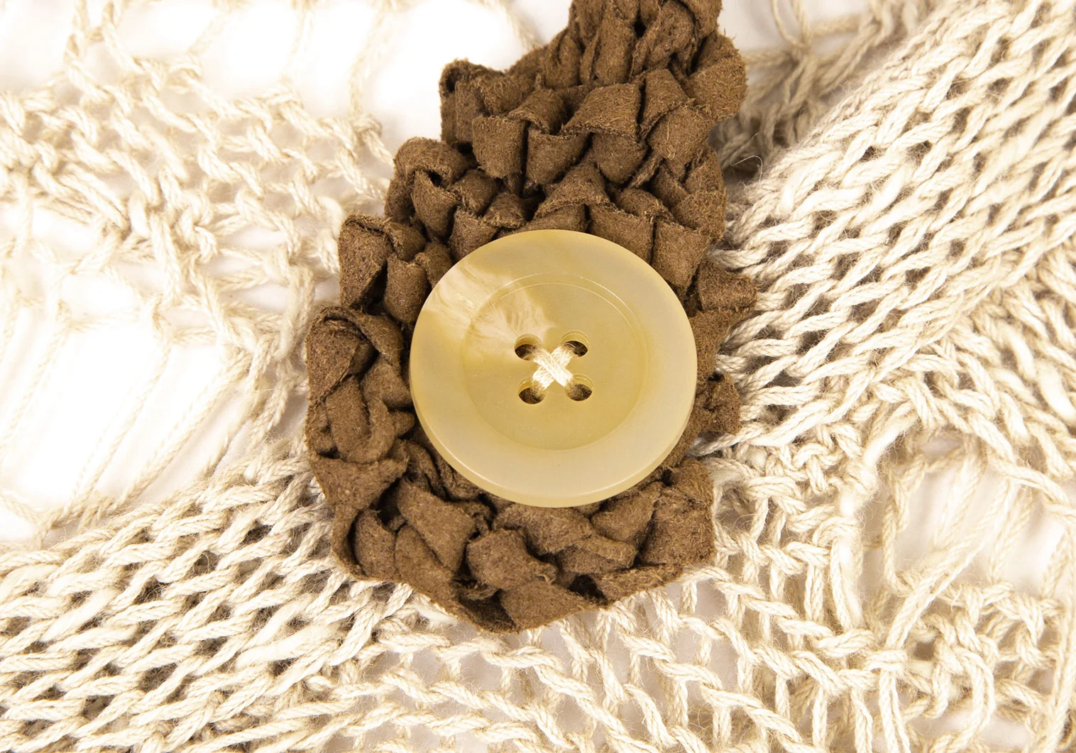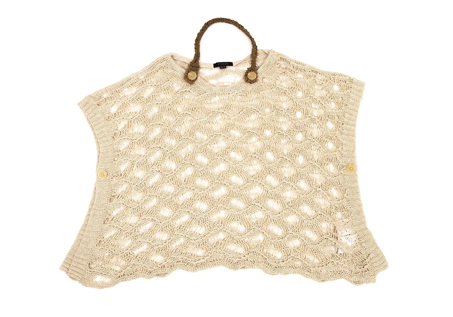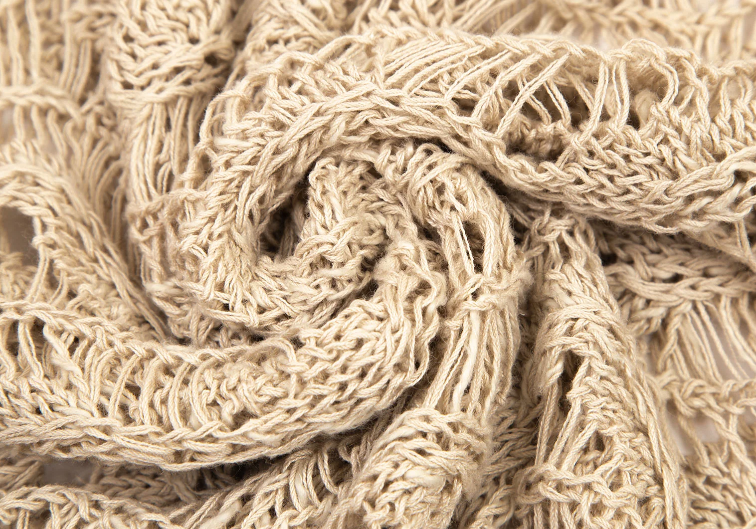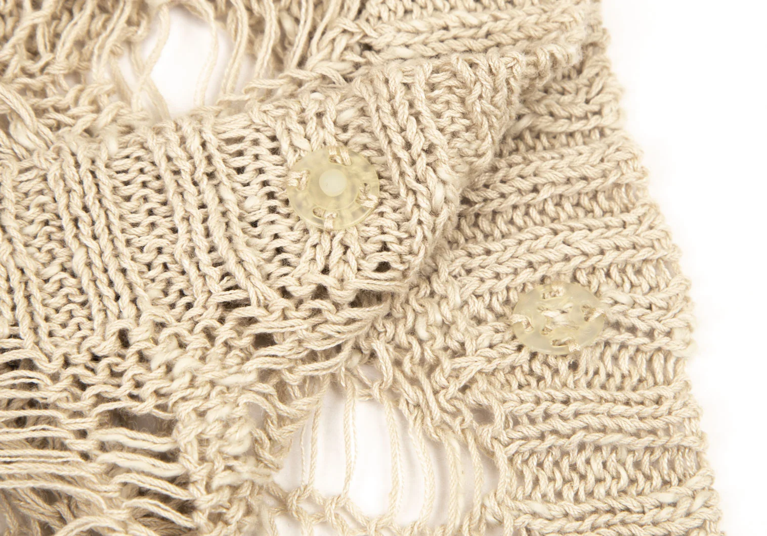 アツロウタヤマATSURO TAYAMA リネンコットンネック装飾カギ編みニットトップス ベージュ茶36