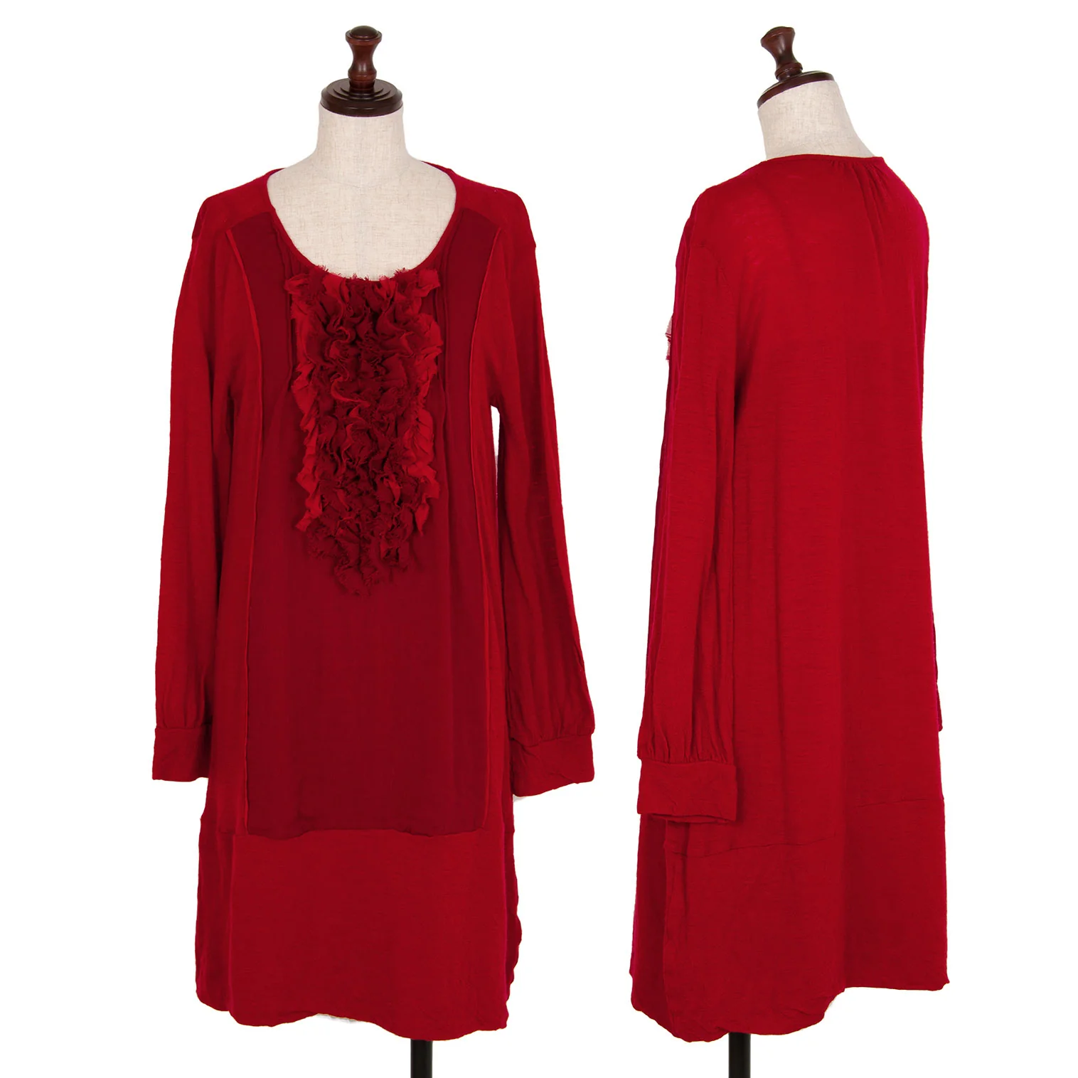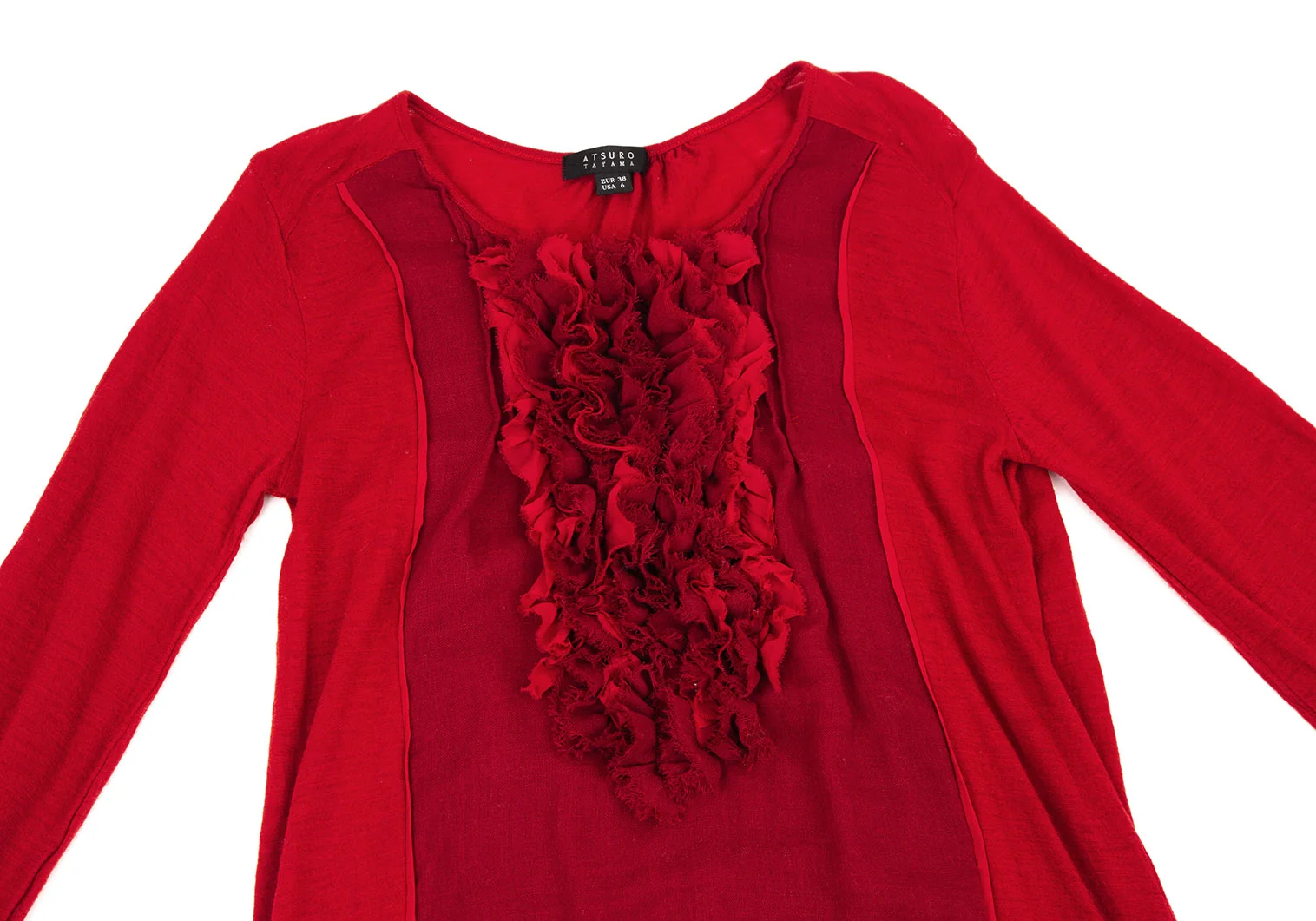アツロウタヤマATSURO TAYAMA ウールフリル装飾ニットチュニック 赤38