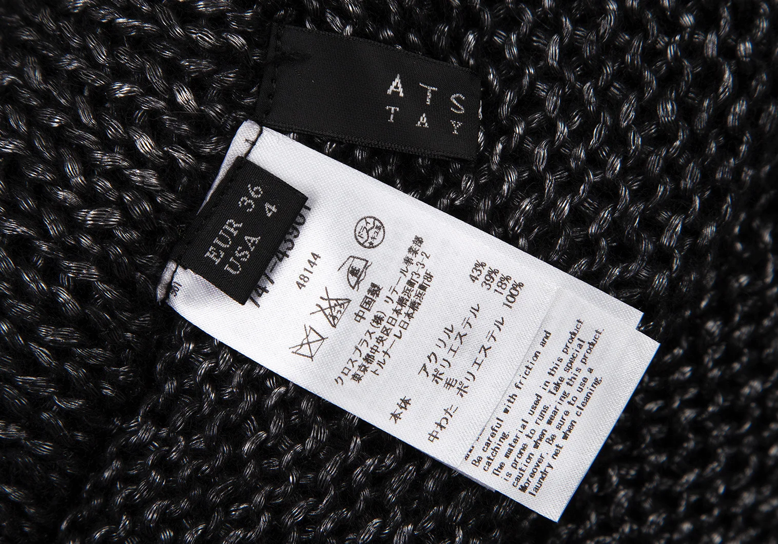 本体 アクリル43% ポリエステル39% 毛18% 中わた ポリエステル100%