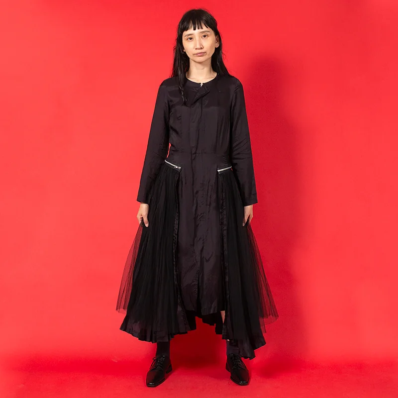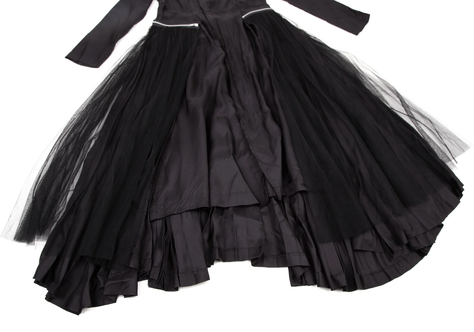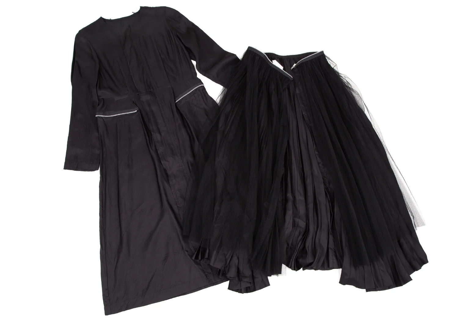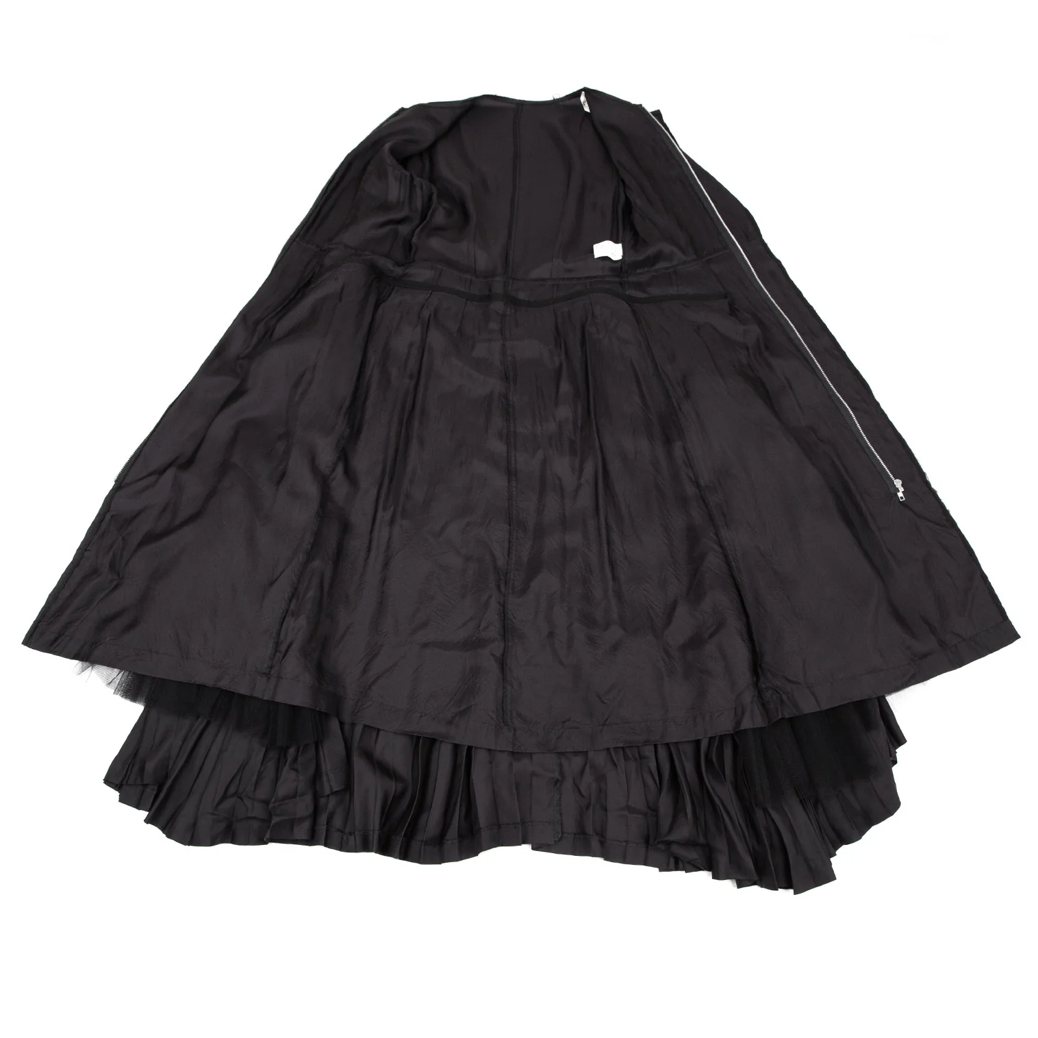 コムデギャルソンCOMME des GARCONSチュールアコーディオンプリーツジップ着脱サテンワンピース 黒M