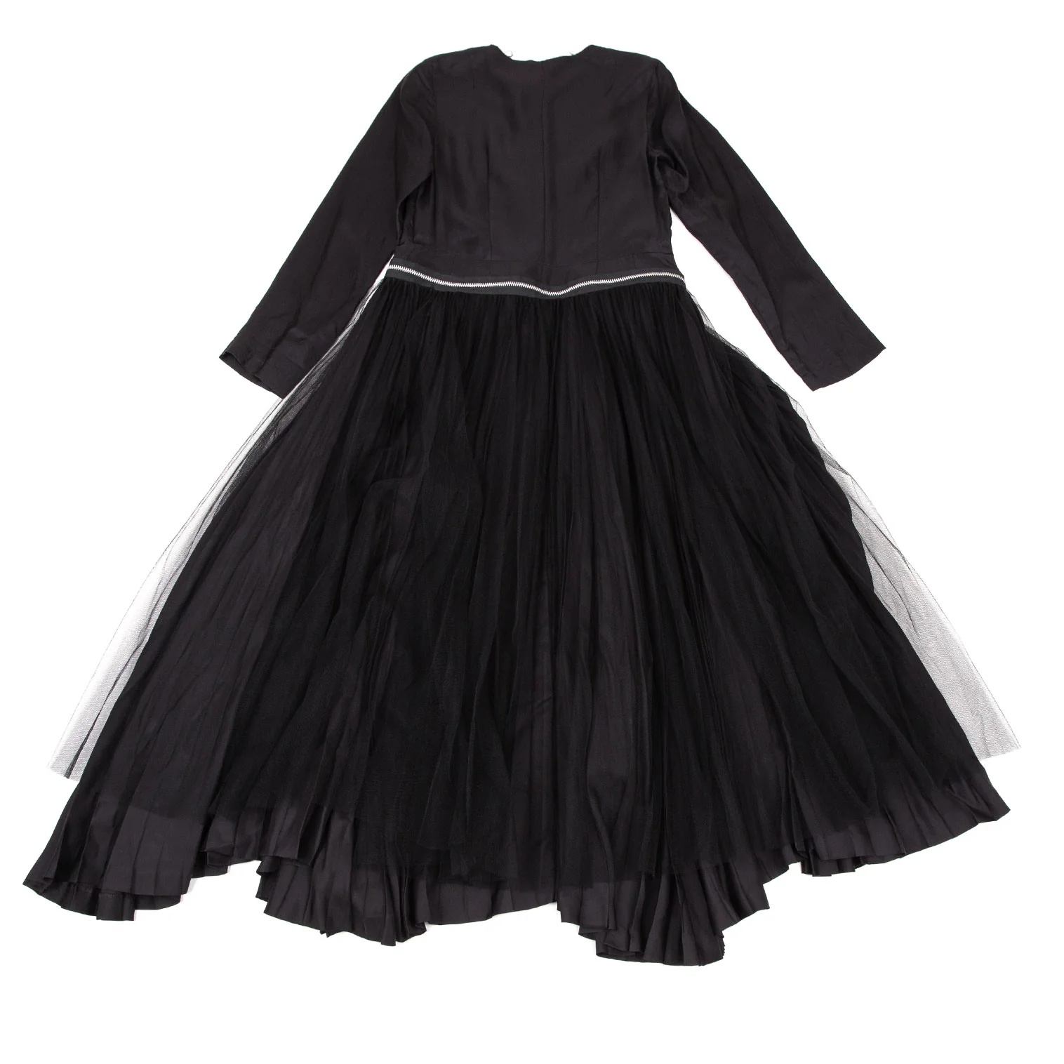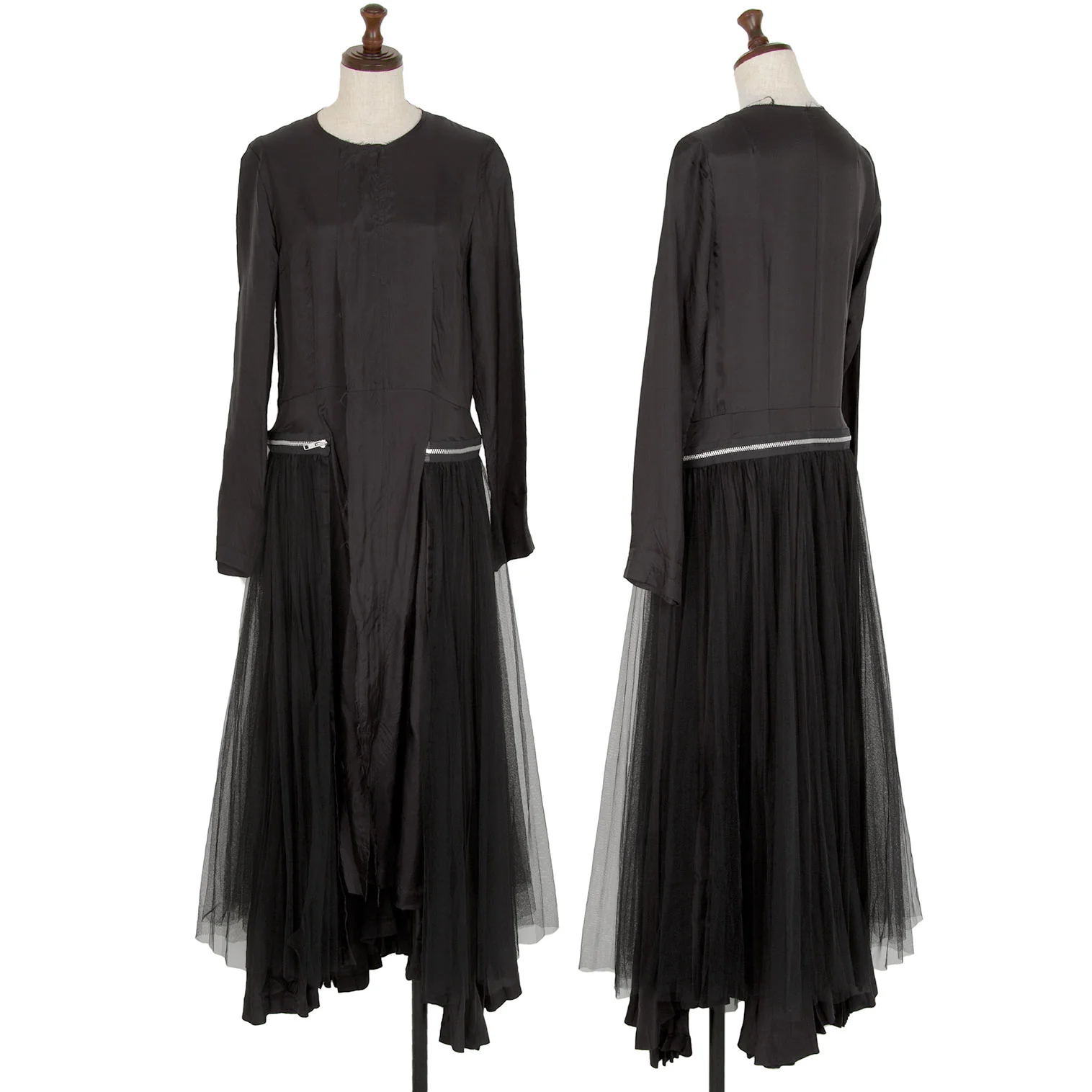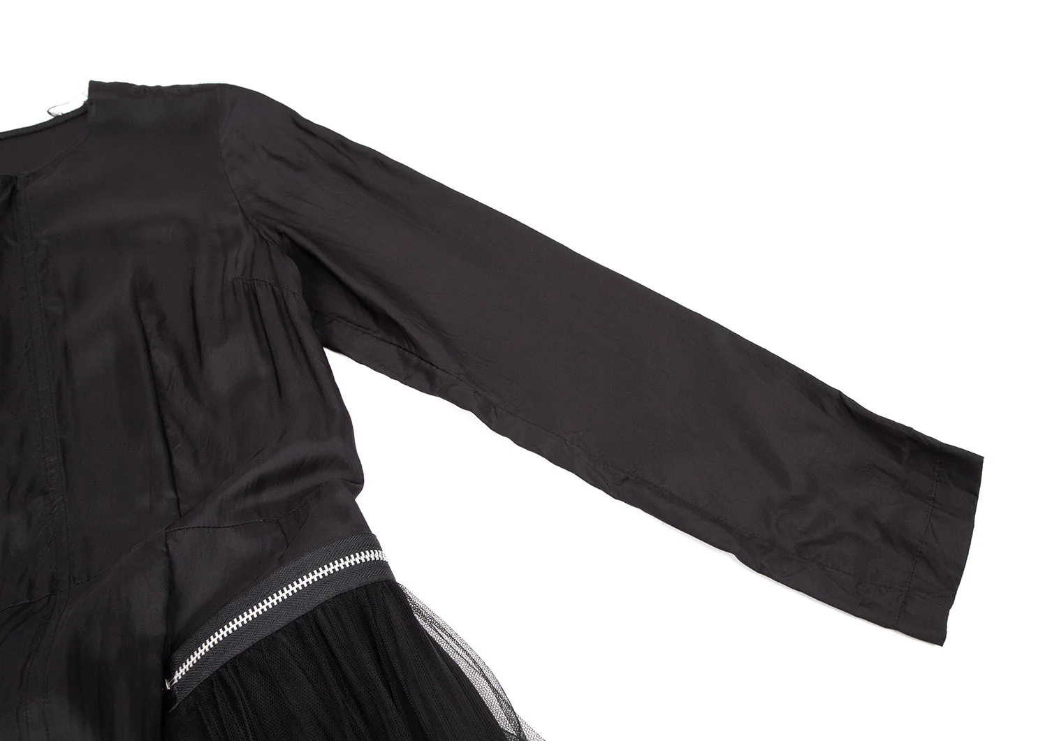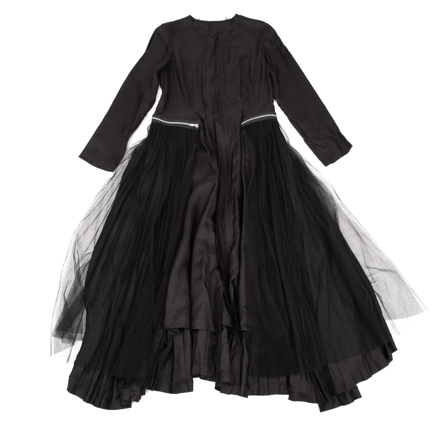 コムデギャルソンCOMME des GARCONSチュールアコーディオンプリーツジップ着脱サテンワンピース 黒M
