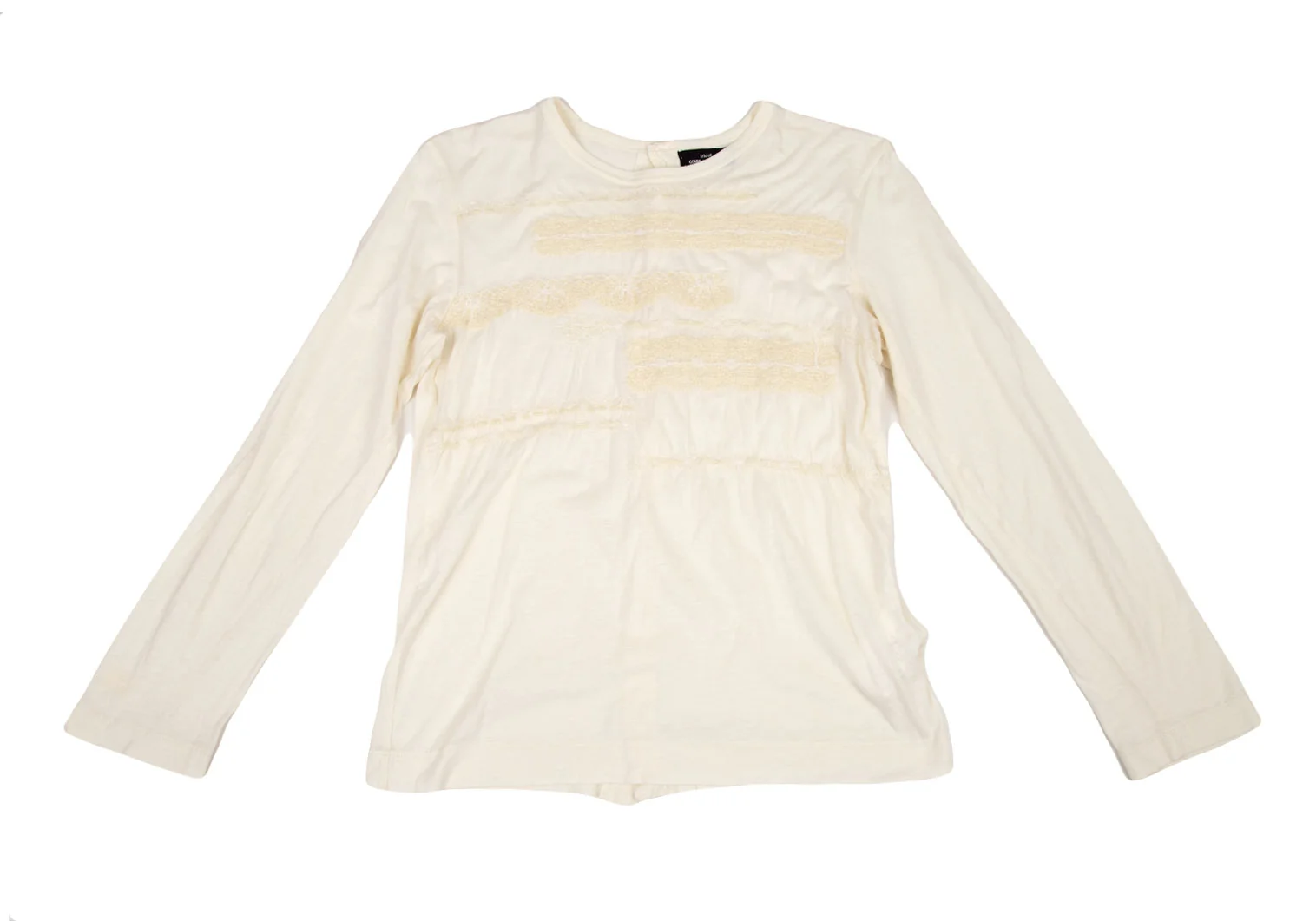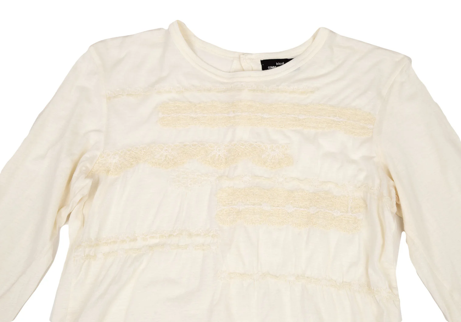 トリココムデギャルソンtricot COMME des GARCONS コットンフェルト刺繍バックボタン留めカットソー 生成りM位