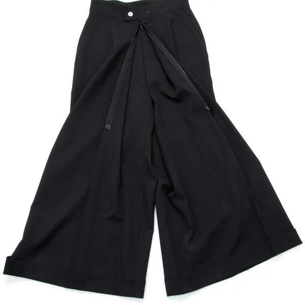 ヨウジヤマモト ファム yohji yamamoto femme 袴風折り畳みジップ変形ウールギャバパンツ 黒1