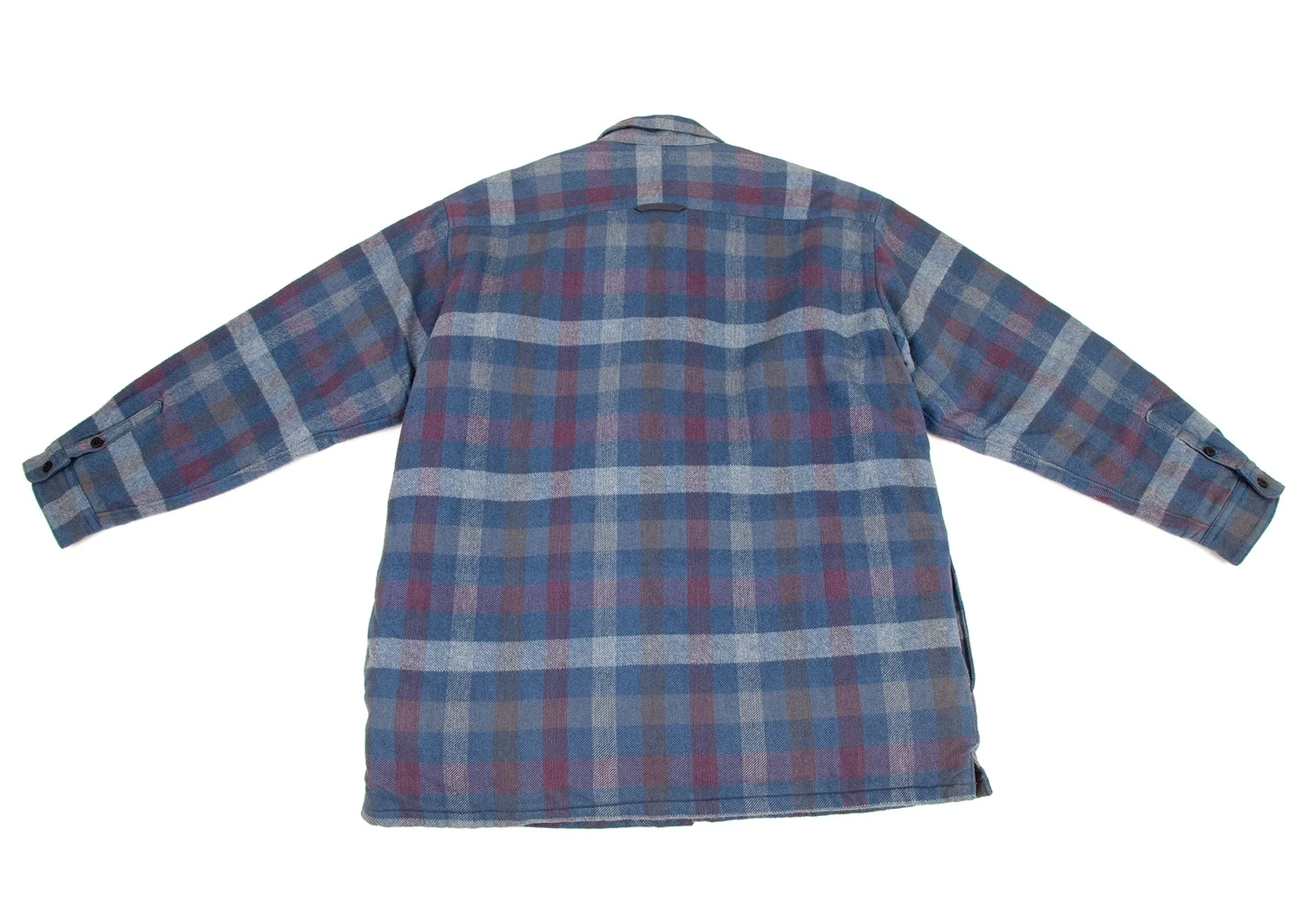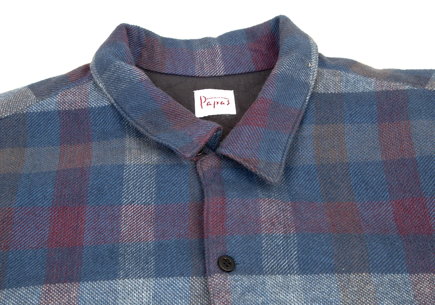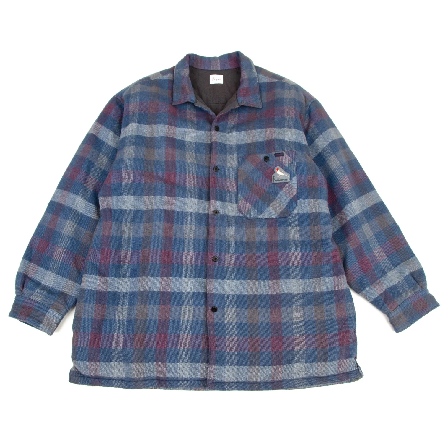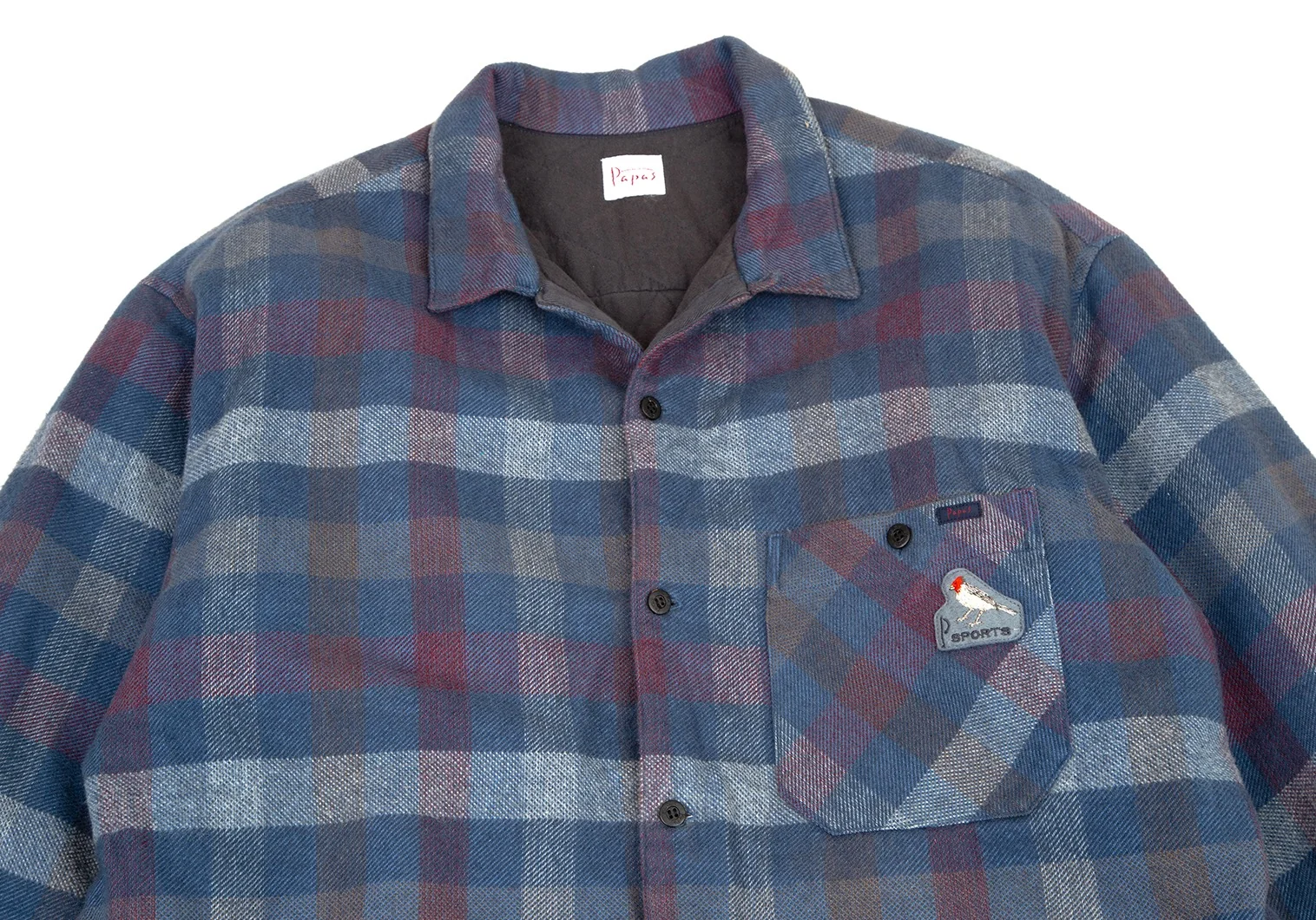 パパスPapas コットンワッペン裏キルティング中綿ブロックチェックシャツジャケット 青白ワインL