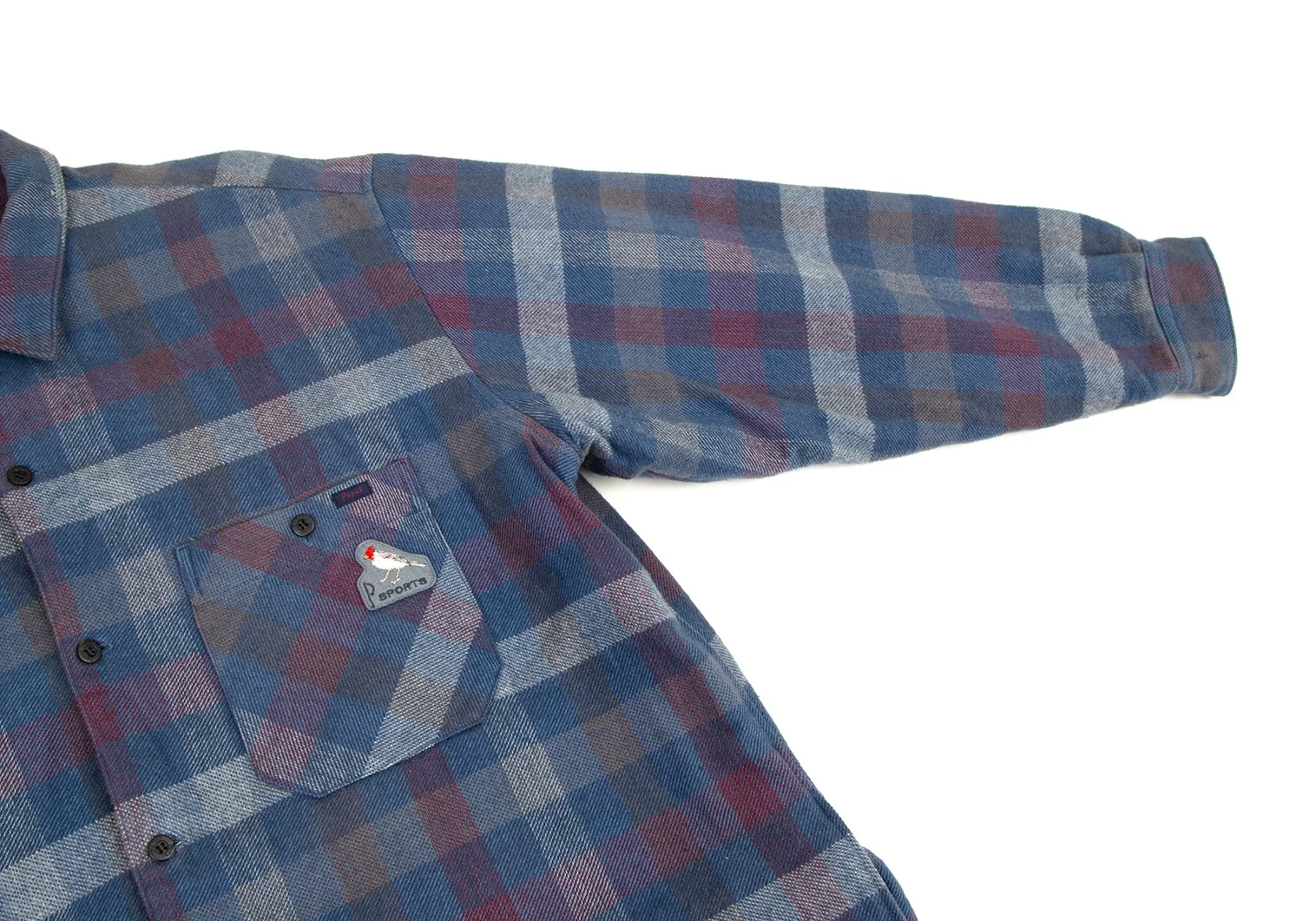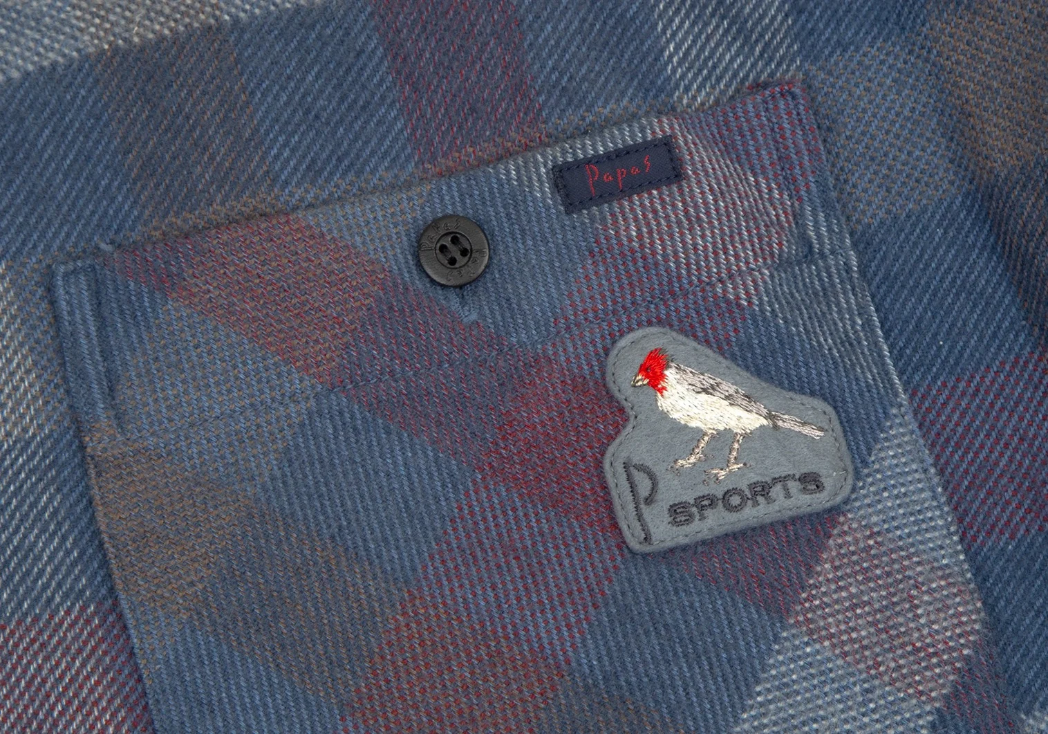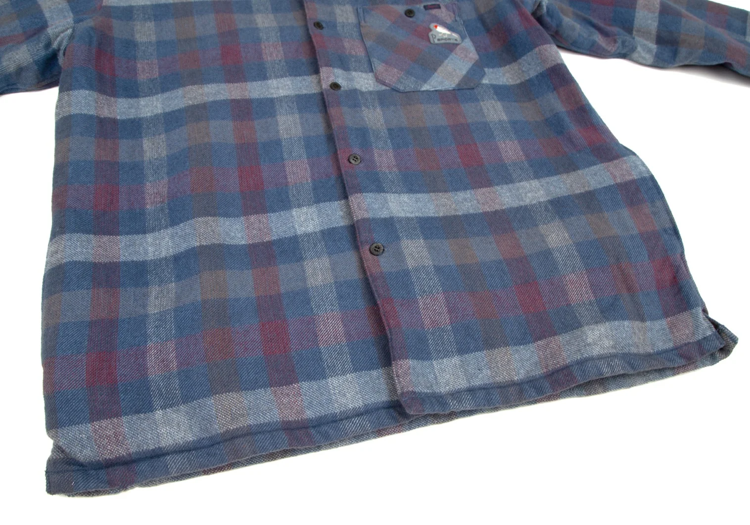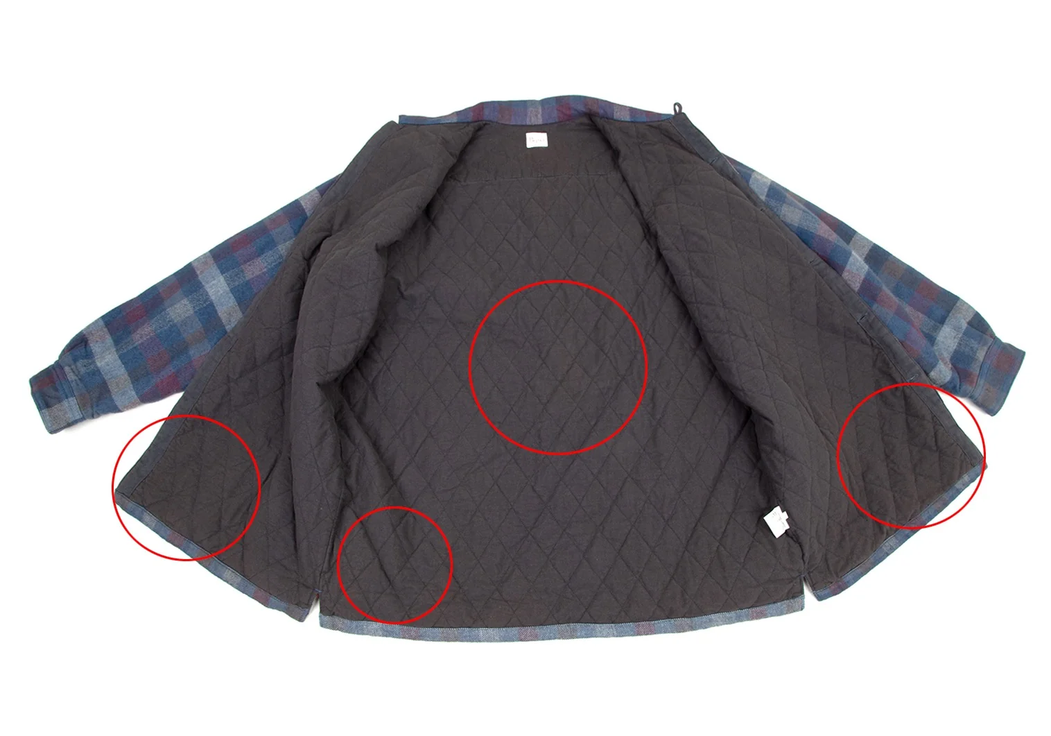 パパスPapas コットンワッペン裏キルティング中綿ブロックチェックシャツジャケット 青白ワインL