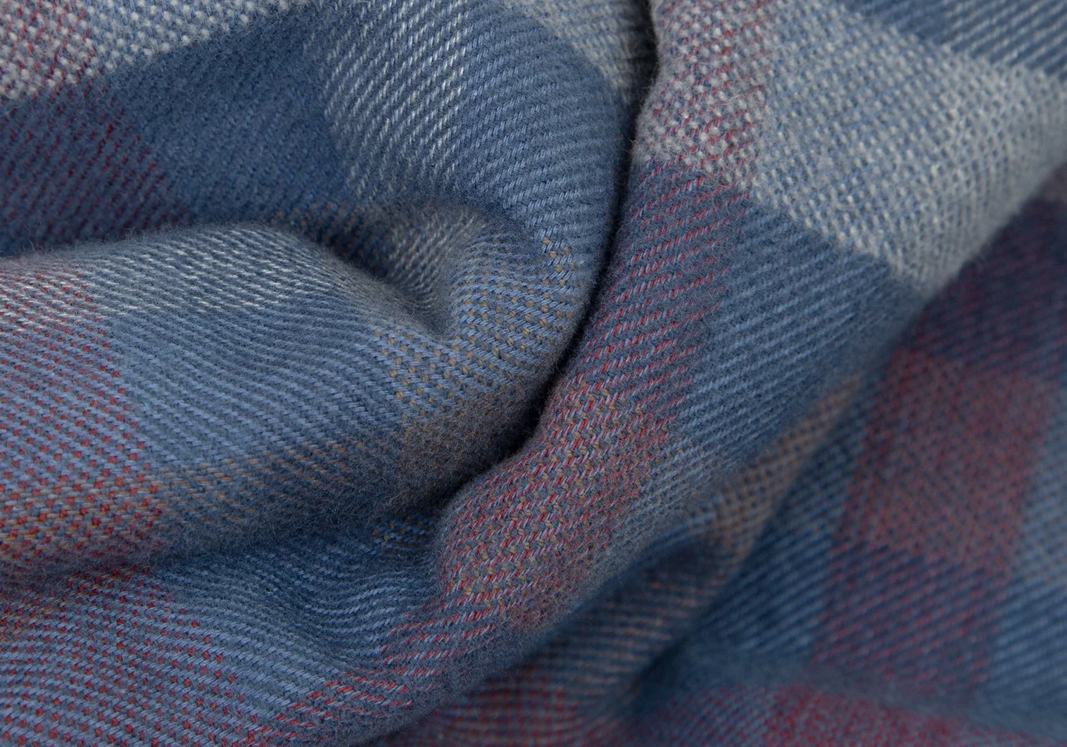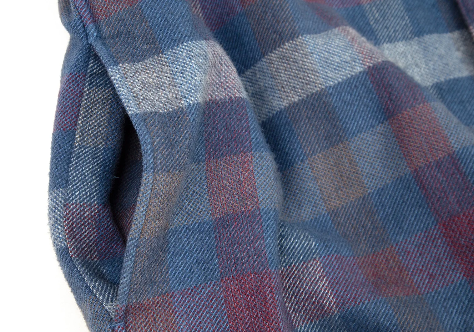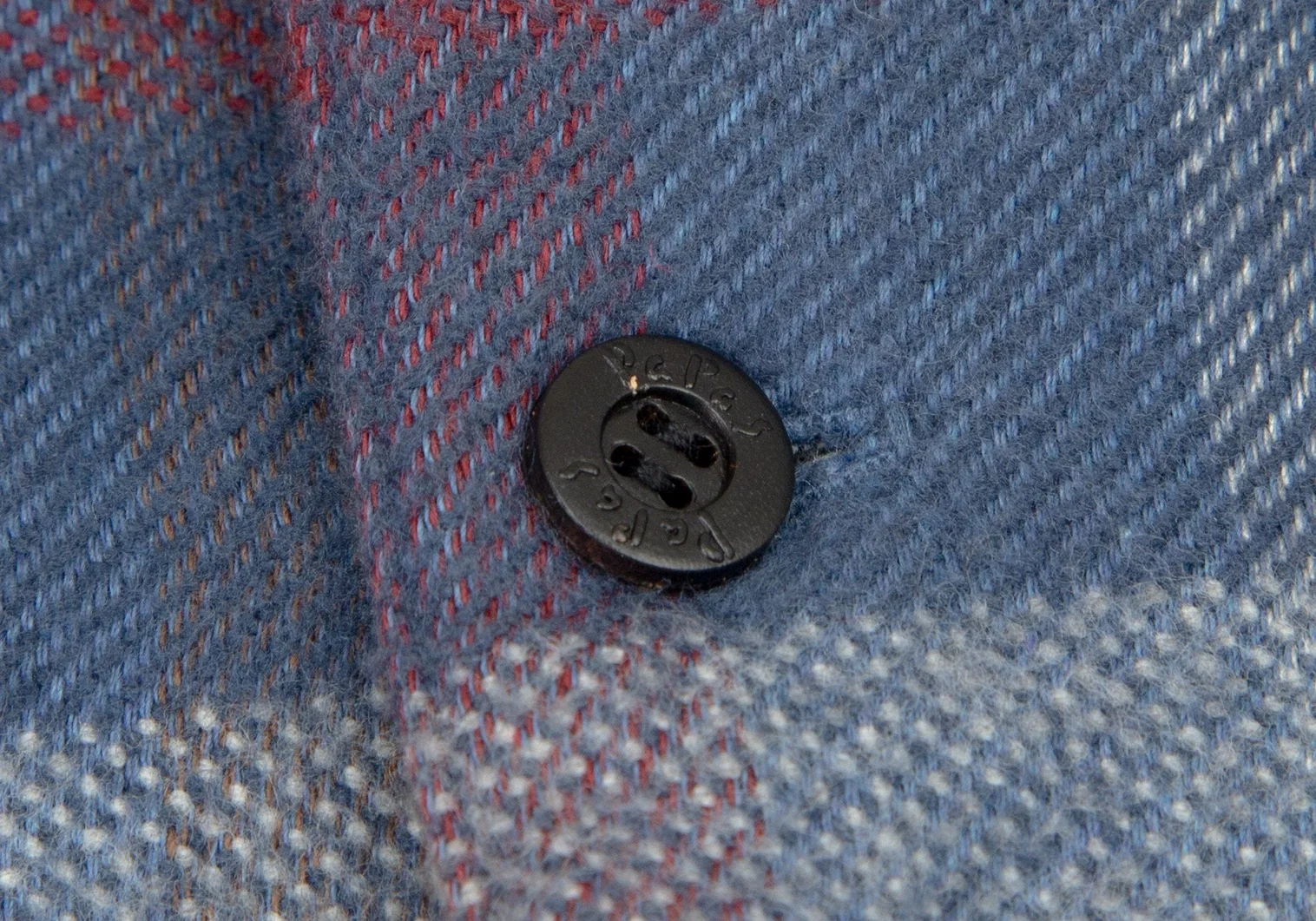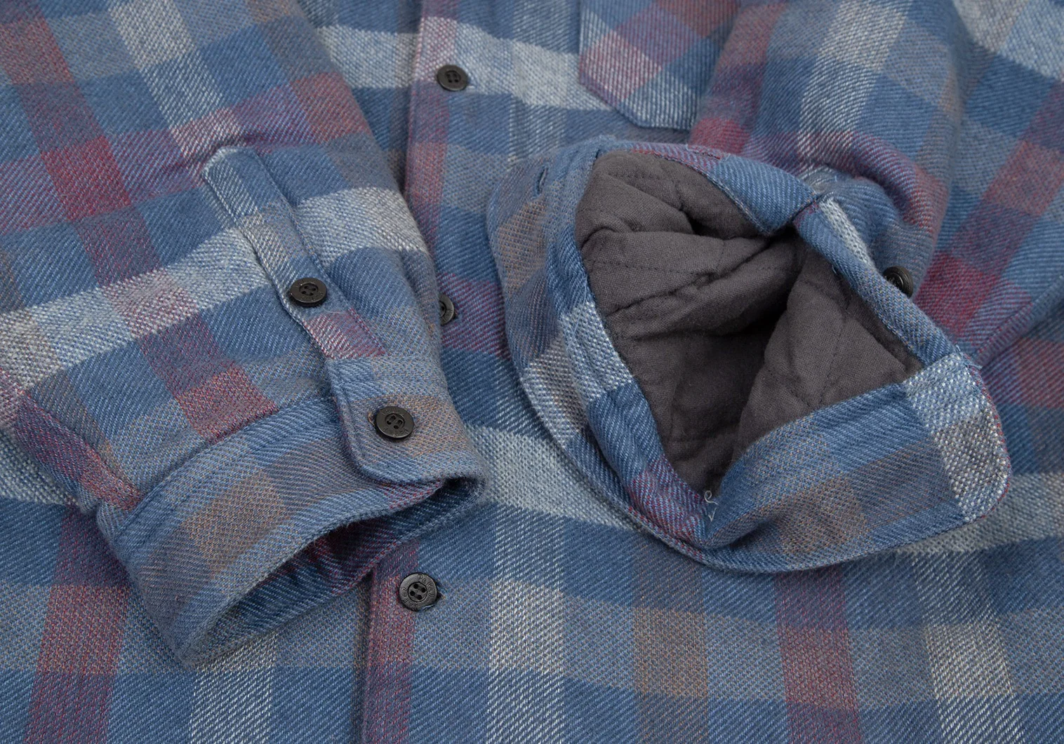 パパスPapas コットンワッペン裏キルティング中綿ブロックチェックシャツジャケット 青白ワインL