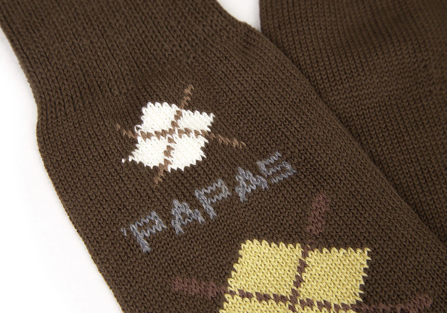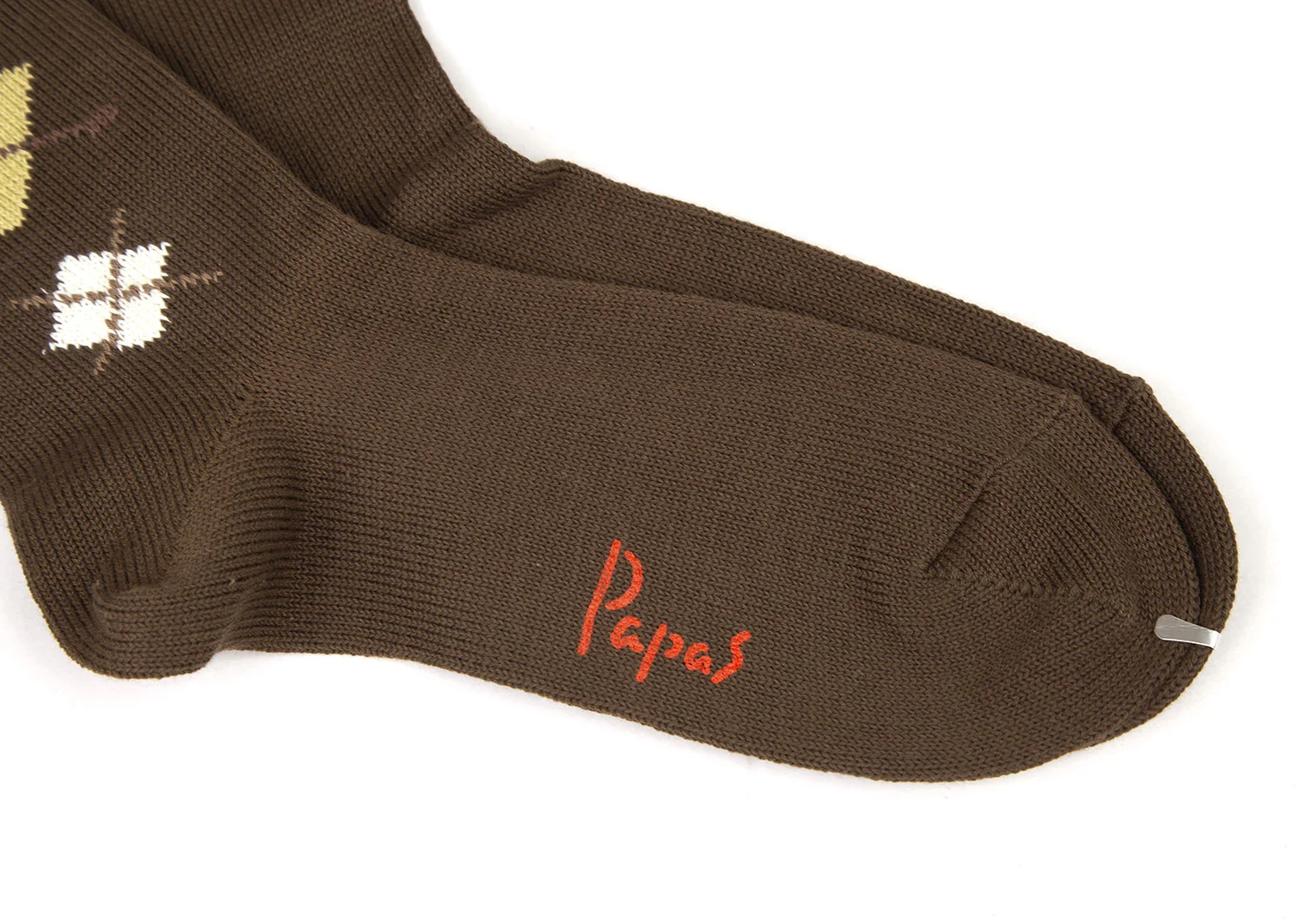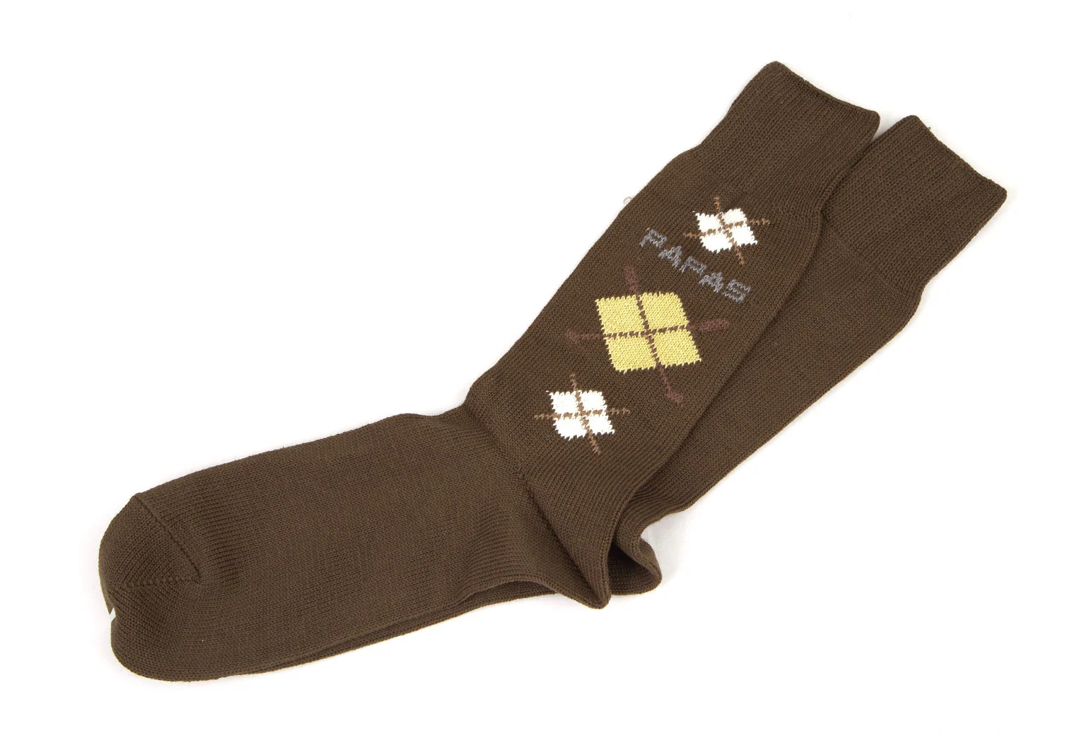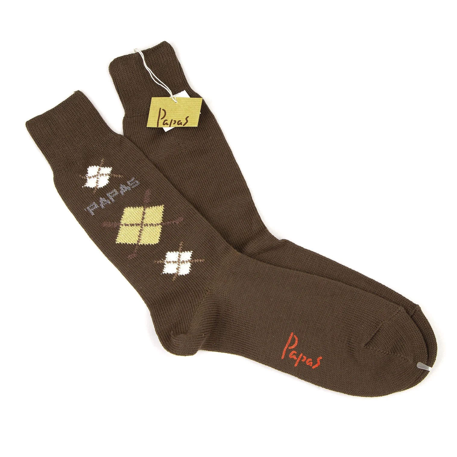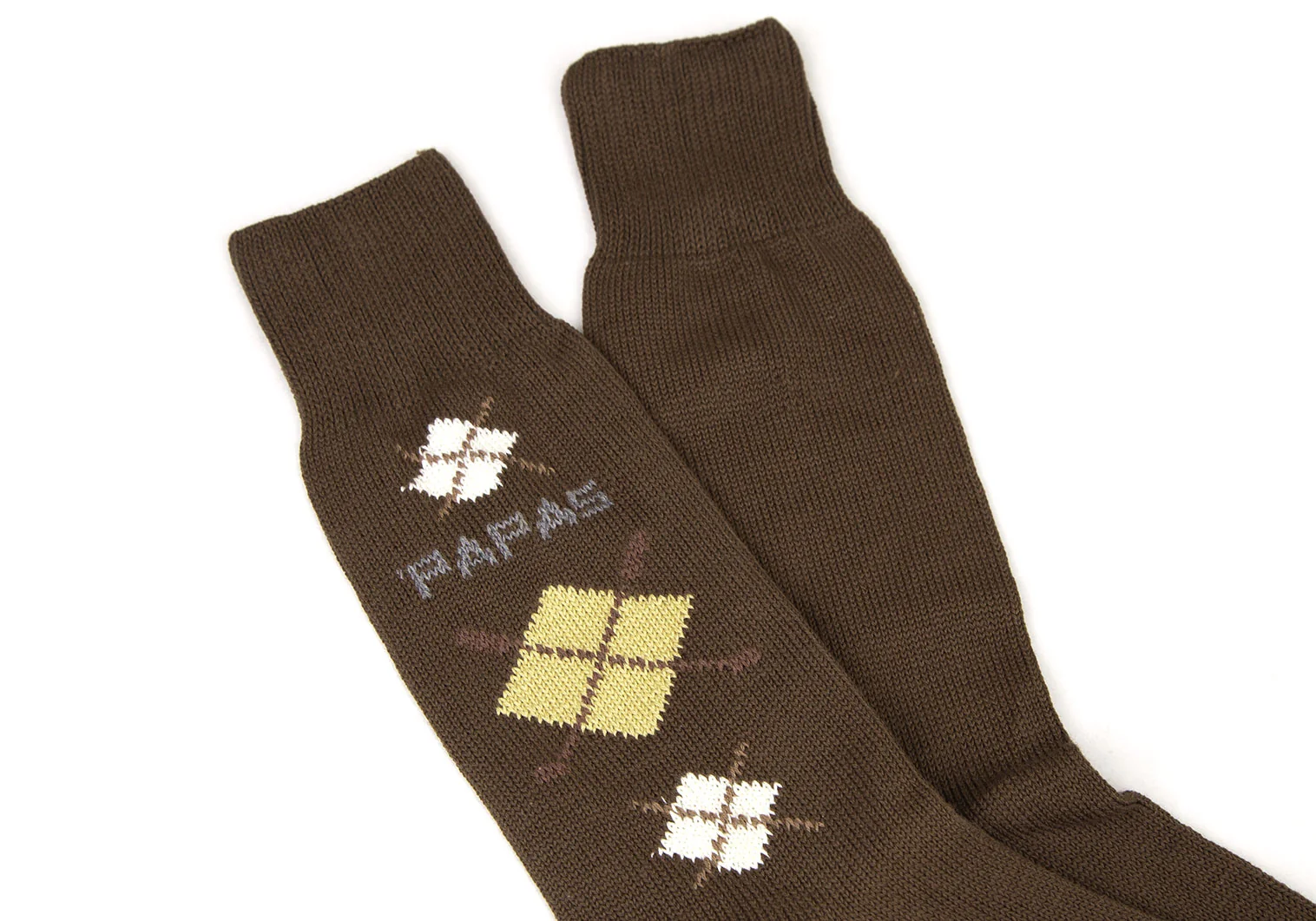 新品!パパスPapas ロゴアーガイルハイソックス 茶M位(25cm~27cm)