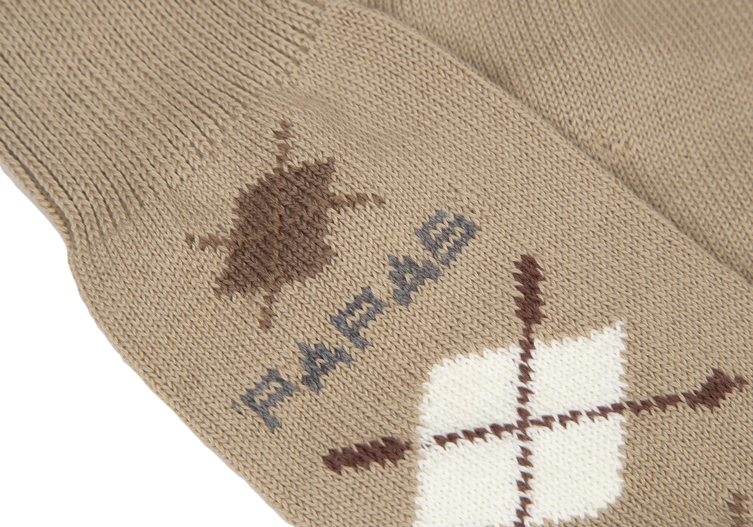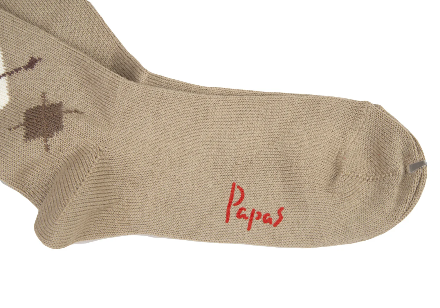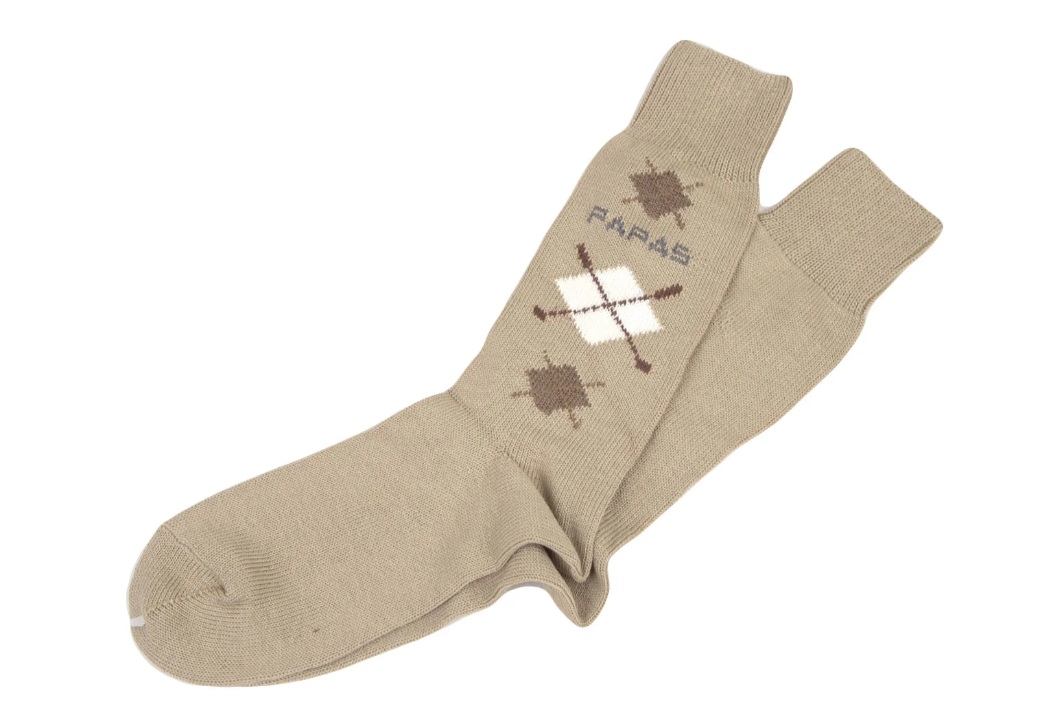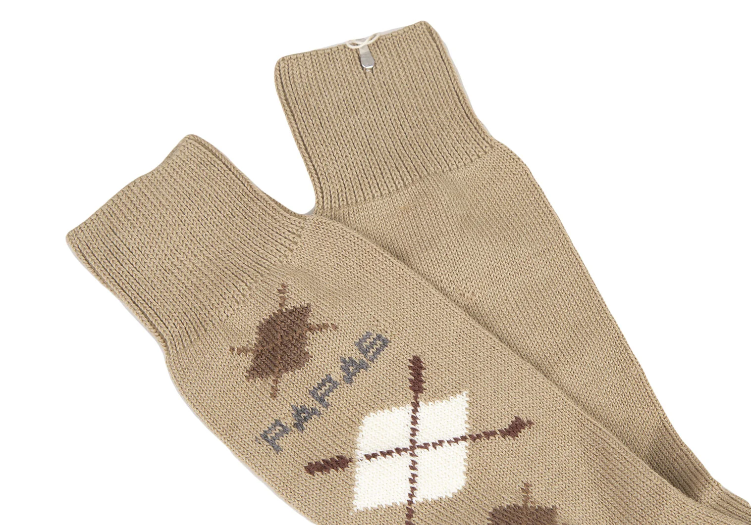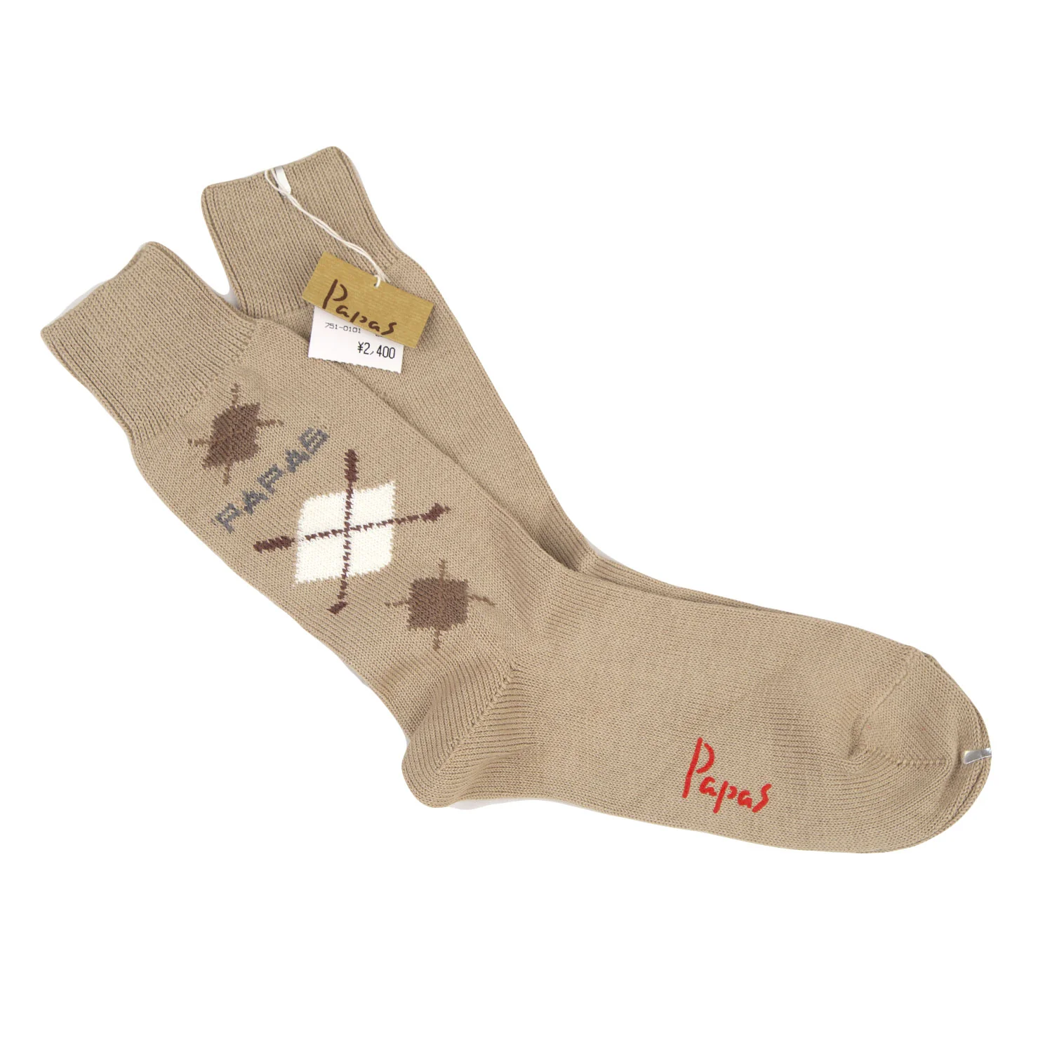 新品!パパスPapas ロゴアーガイルハイソックス モカM位(25cm~27cm)