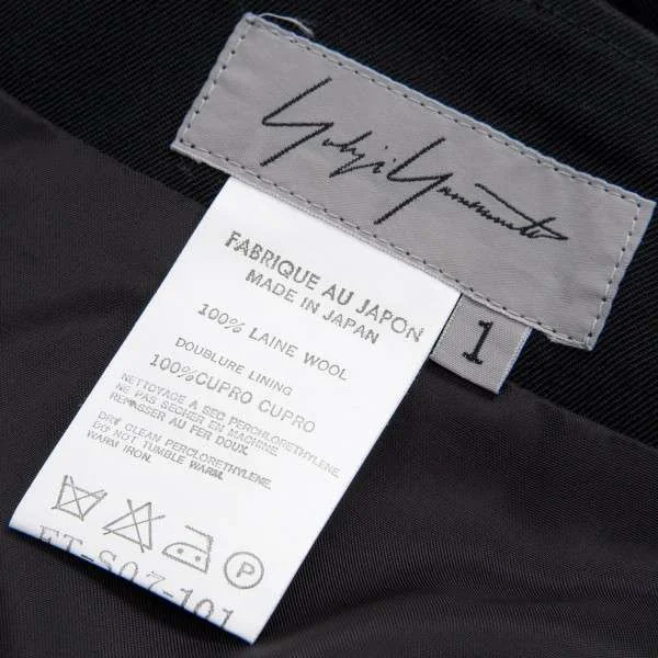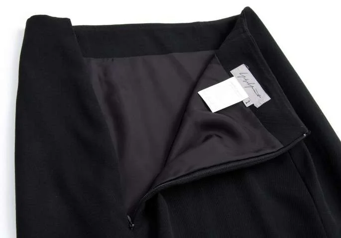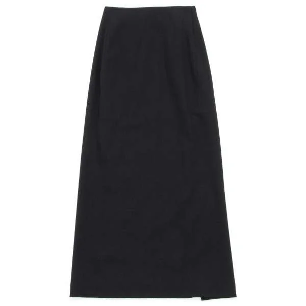 ヨウジヤマモト ファム yohji yamamoto femme スリットロングウールギャバスカート 黒1