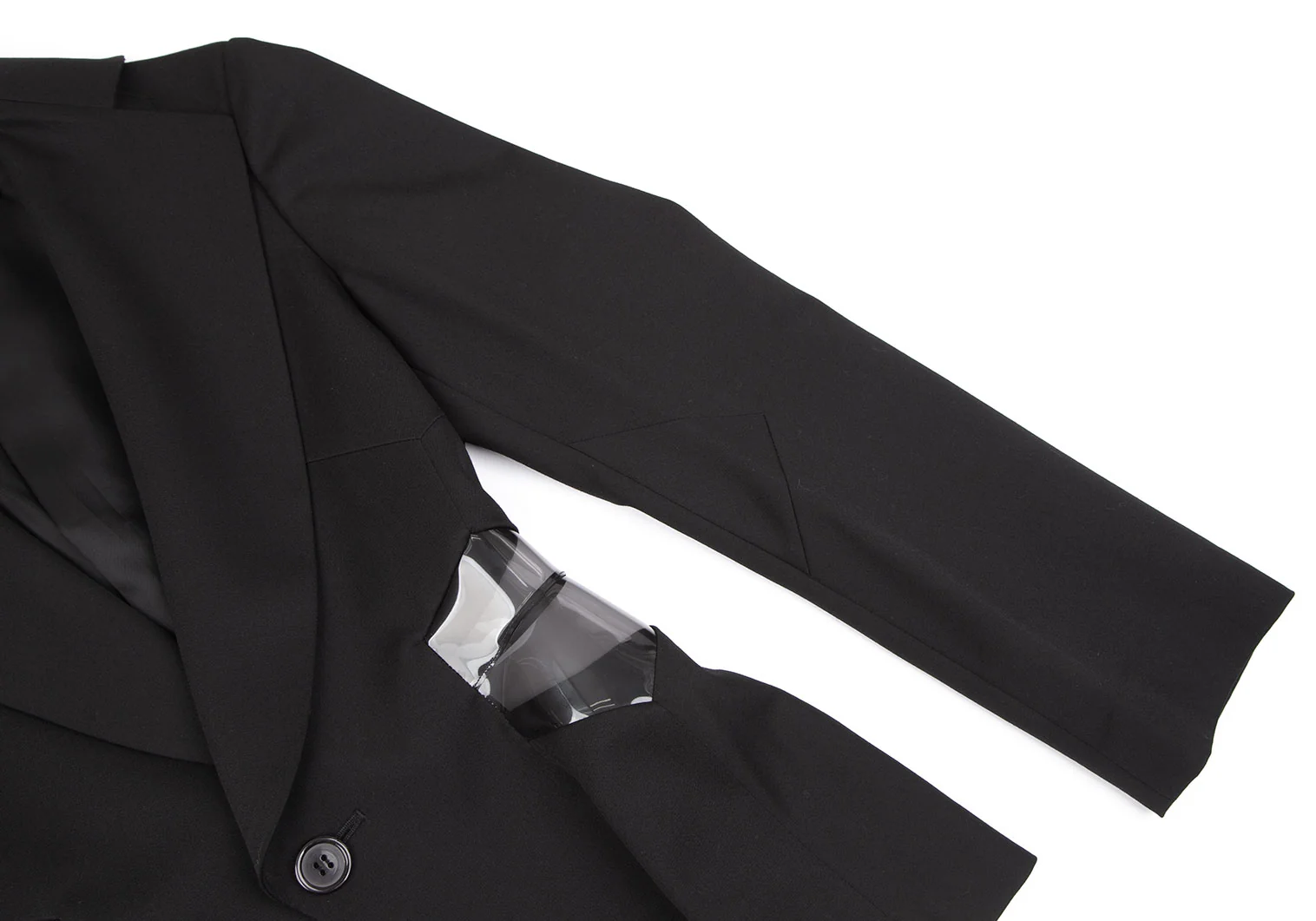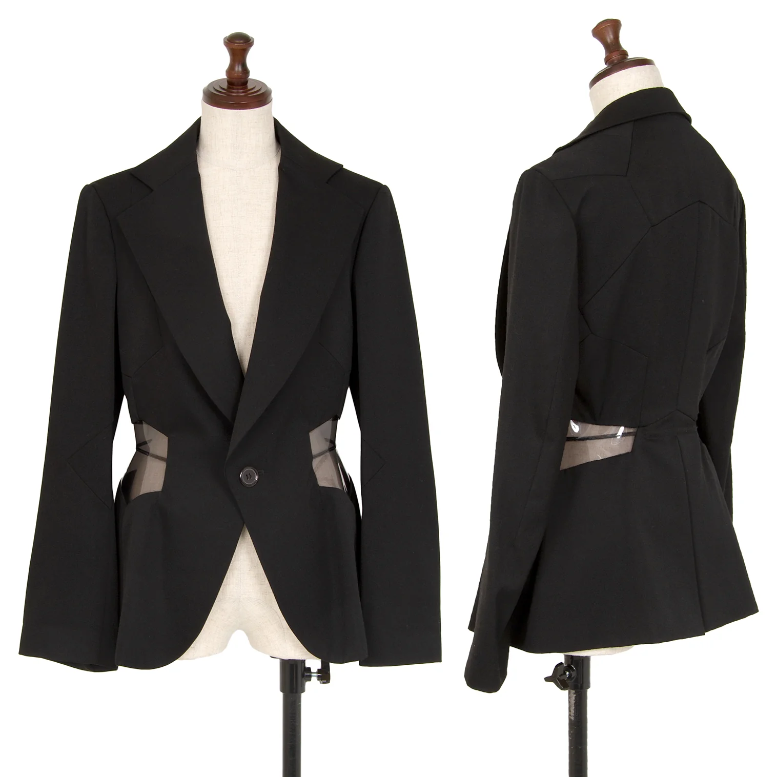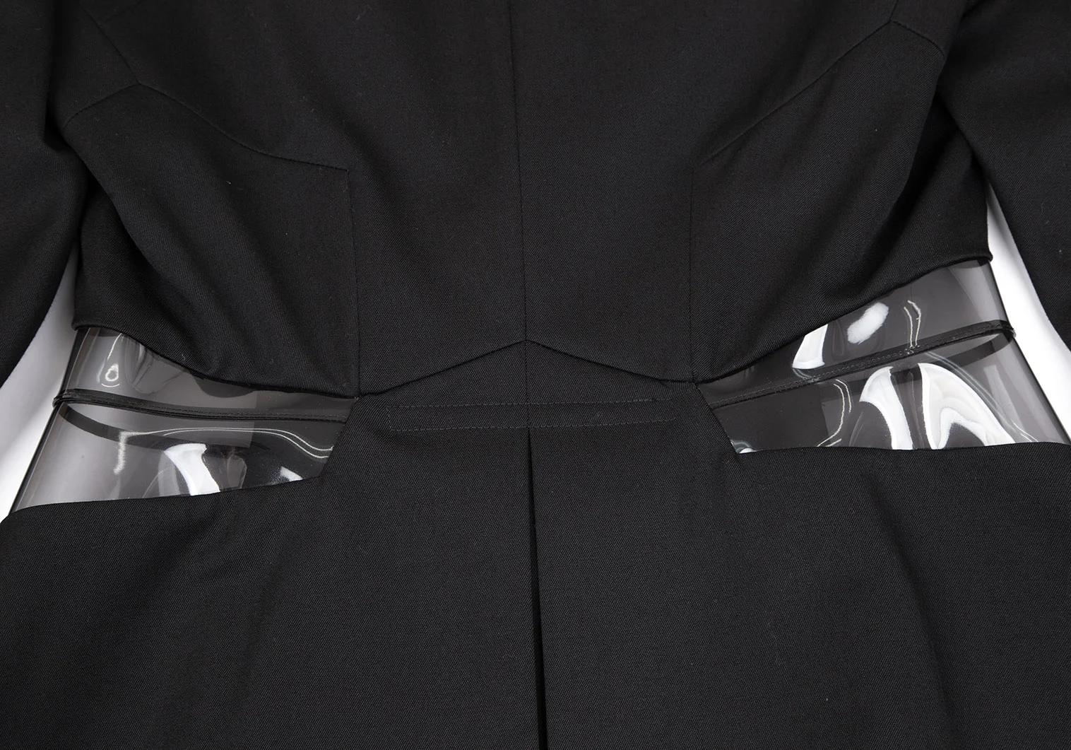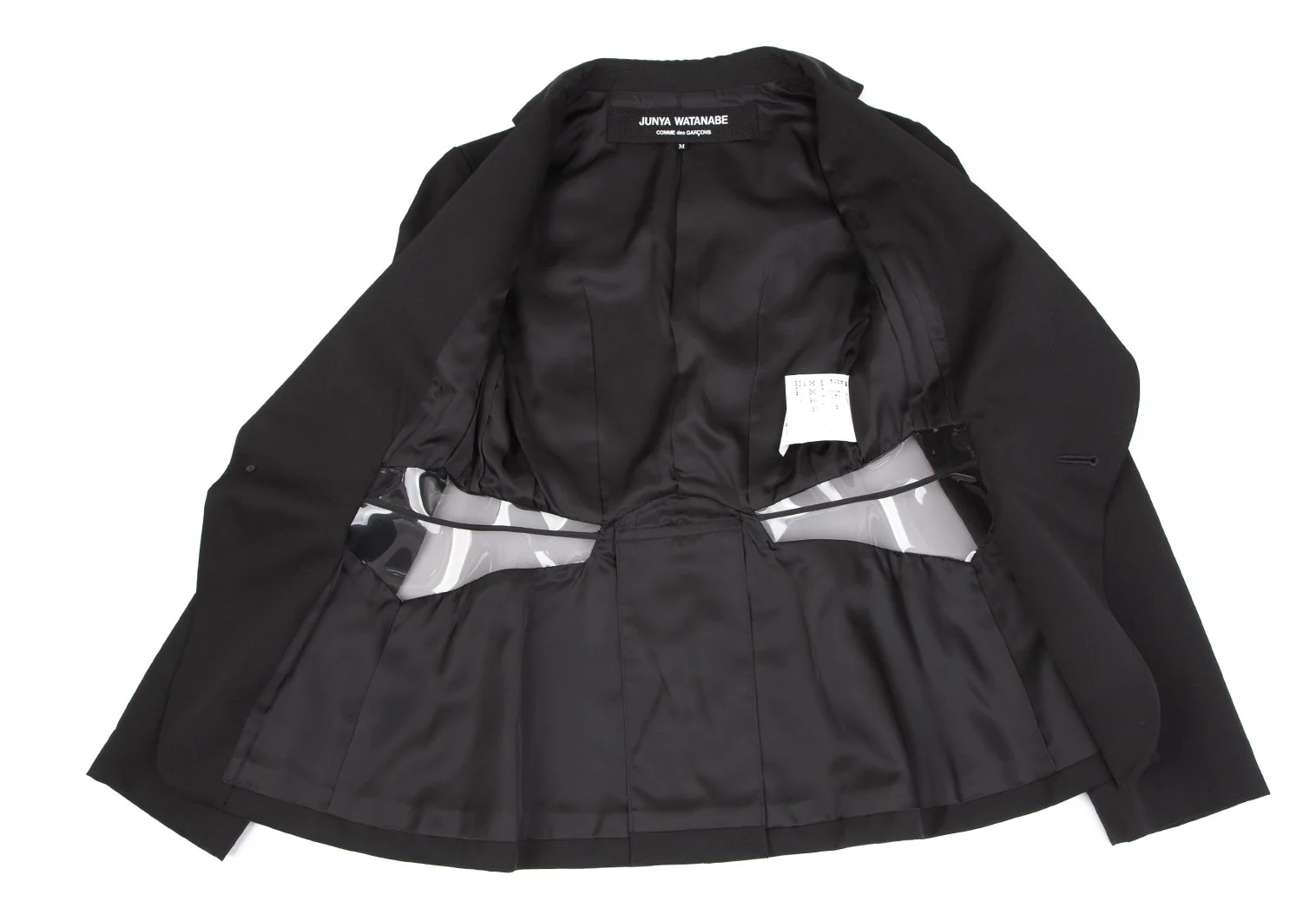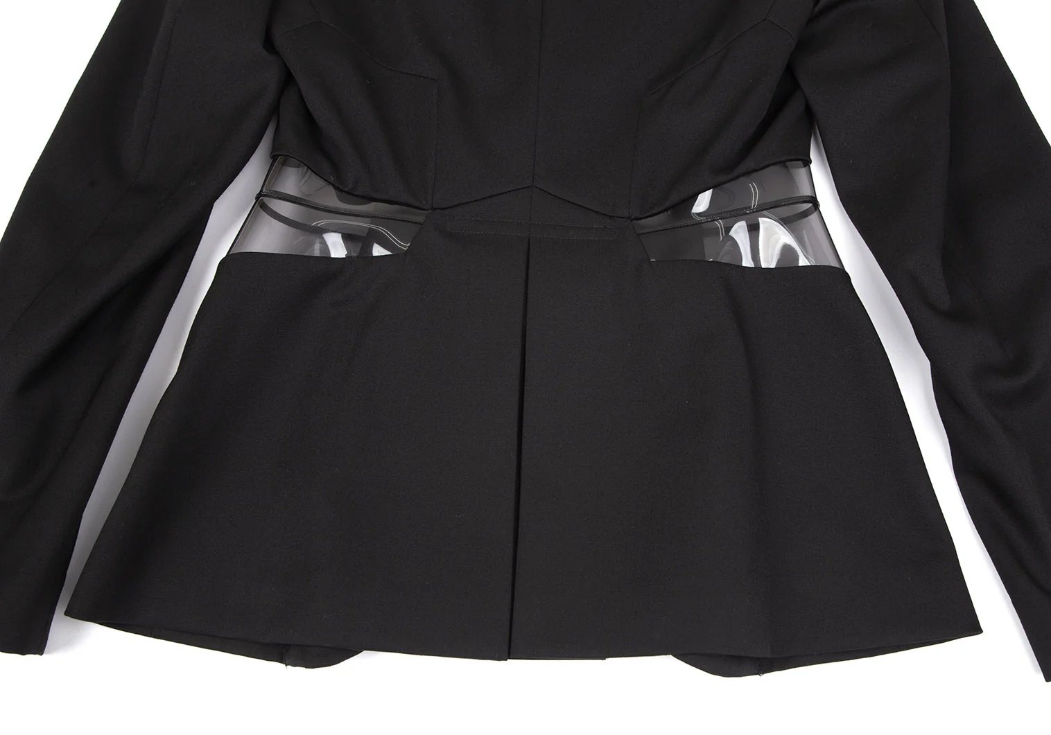 ジュンヤワタナベ コムデギャルソンJUNYA WATANABE COMME des GARCONSウールギャバサイドPVCくり抜きジャケット 黒M