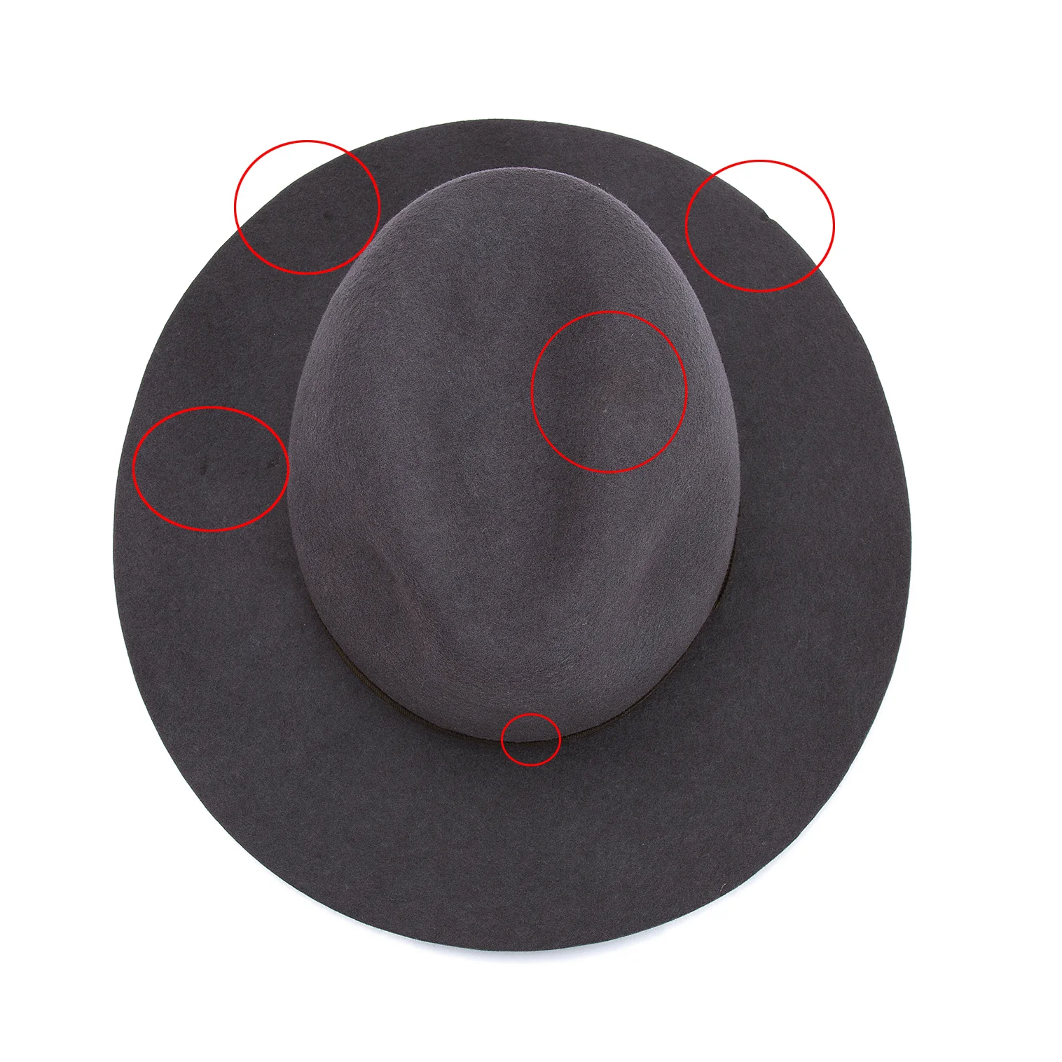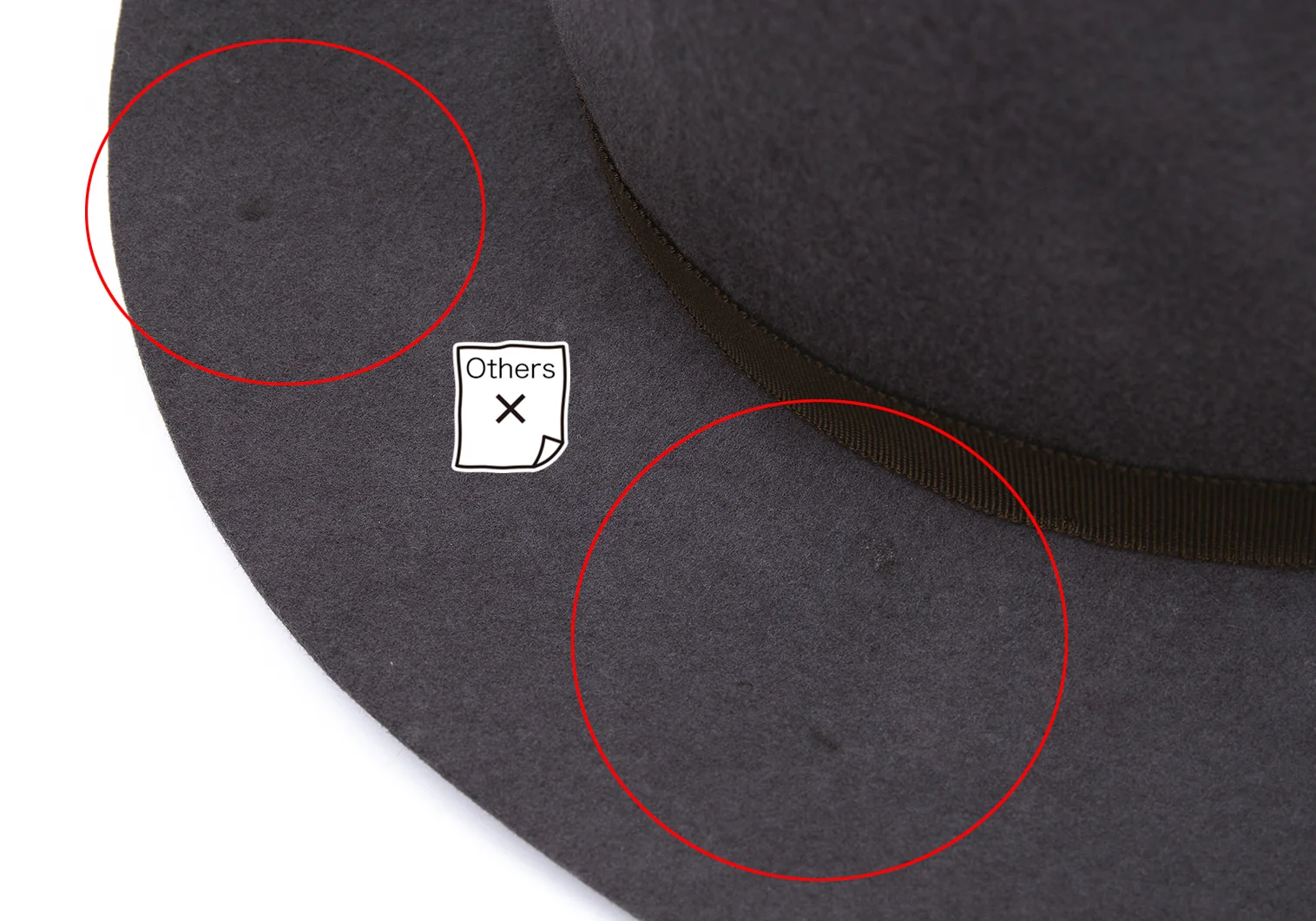 表裏つばに数カ所の虫食い、中央に薄汚れがあります(写真参照)。その他目立った傷や汚れなどなくいい状態です。