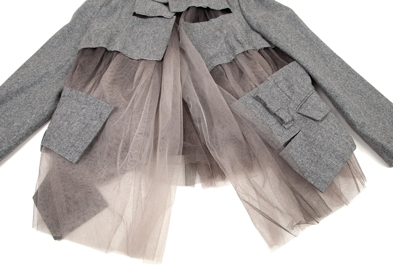 コムデギャルソンCOMME des GARCONS メッシュフェルト貼り付けジャケット グレーS