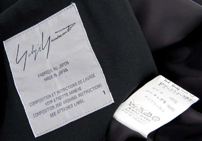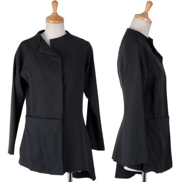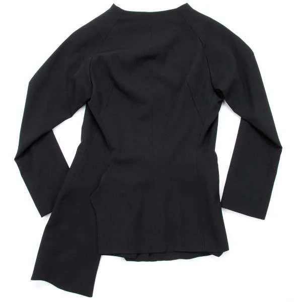 ヨウジヤマモト ファム yohji yamamoto femme ノーカラーアシンメトリーウールギャバジャケット 黒1