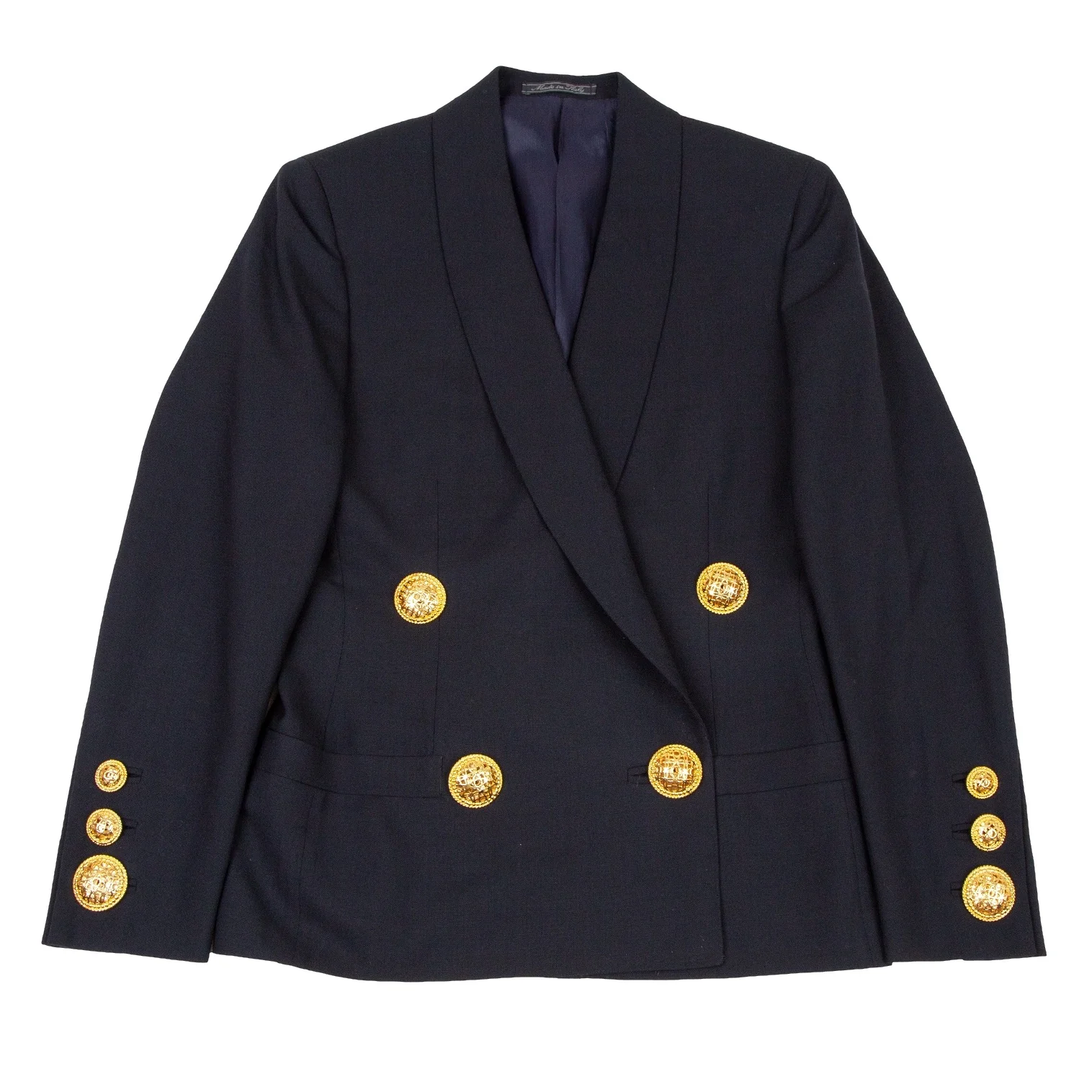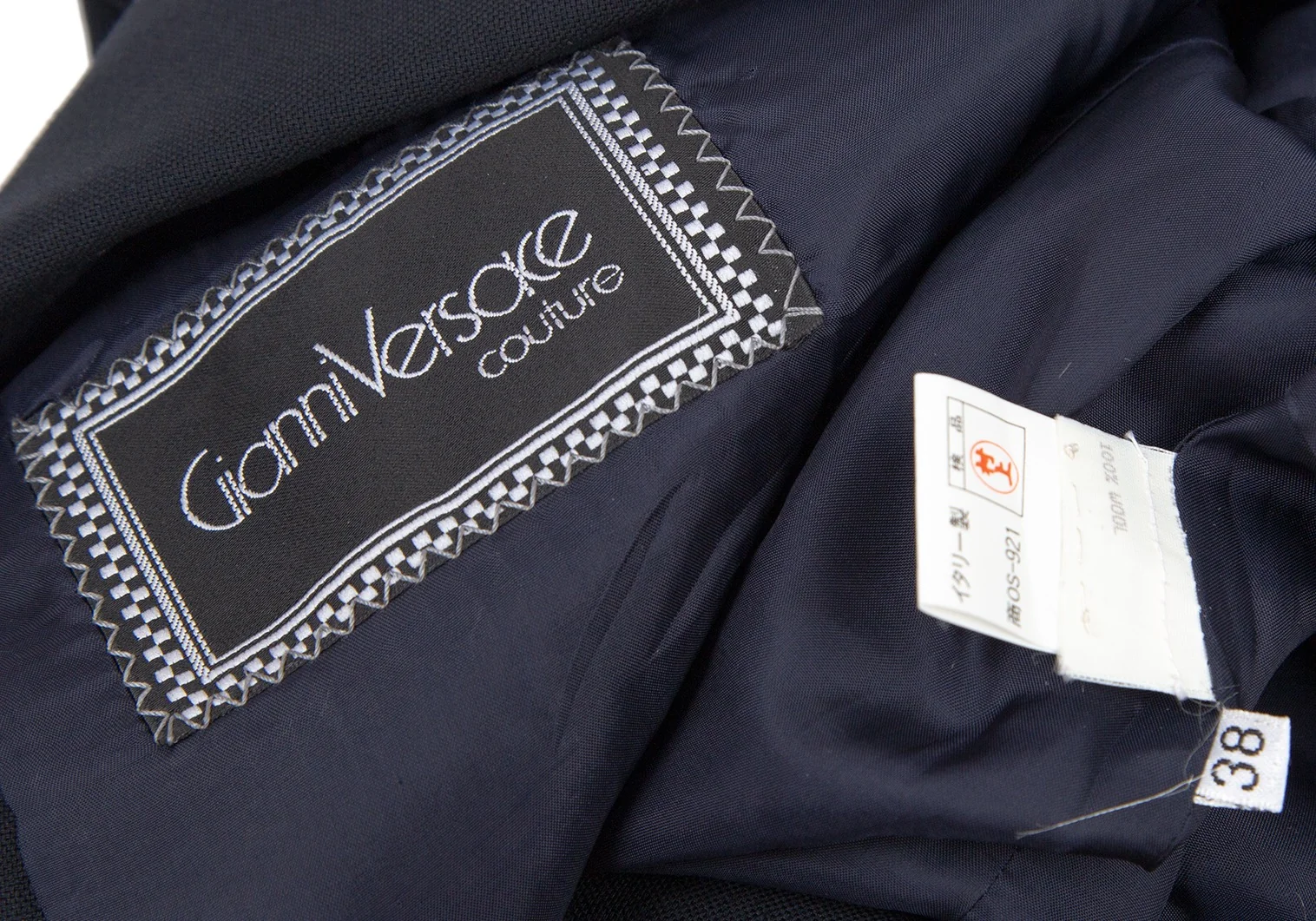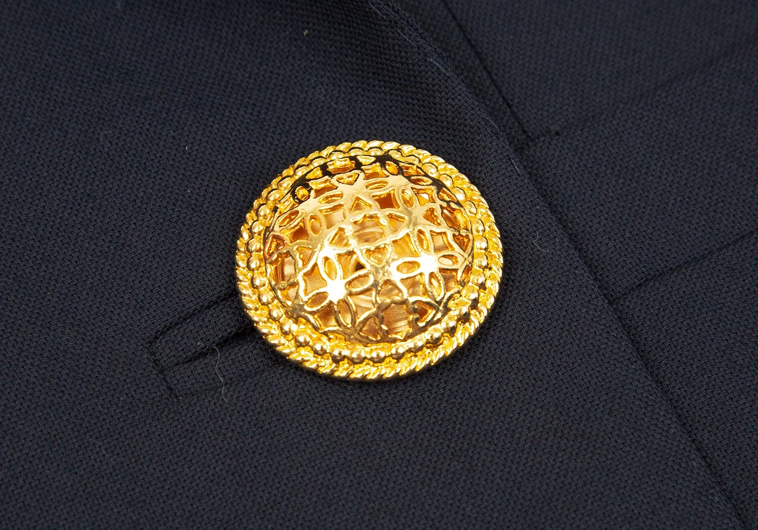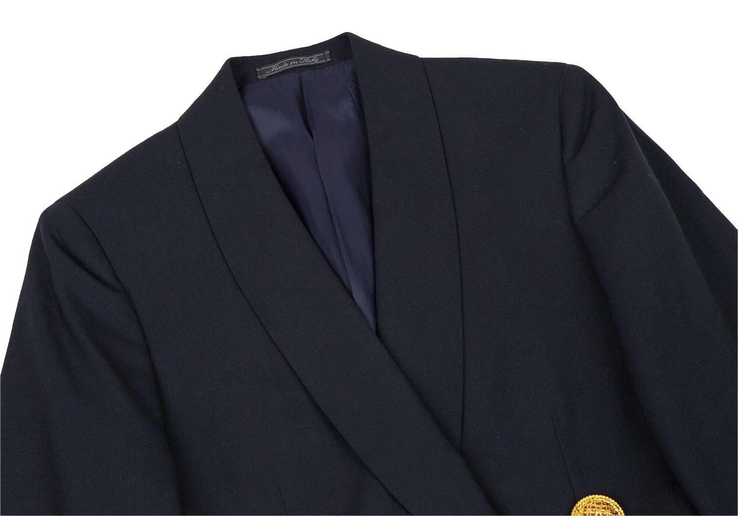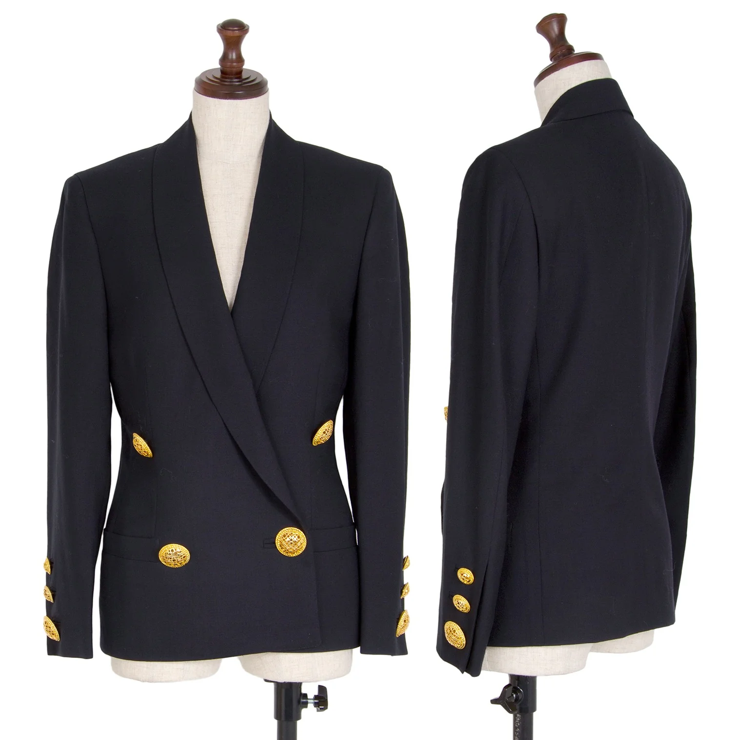ジャンニヴェルサーチGIANNI VERSACE 透かしボタンショールカラージャケット 紺38