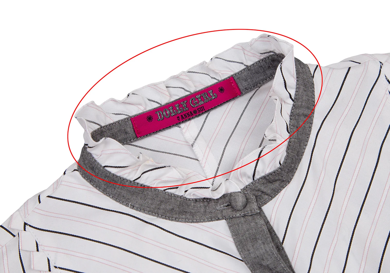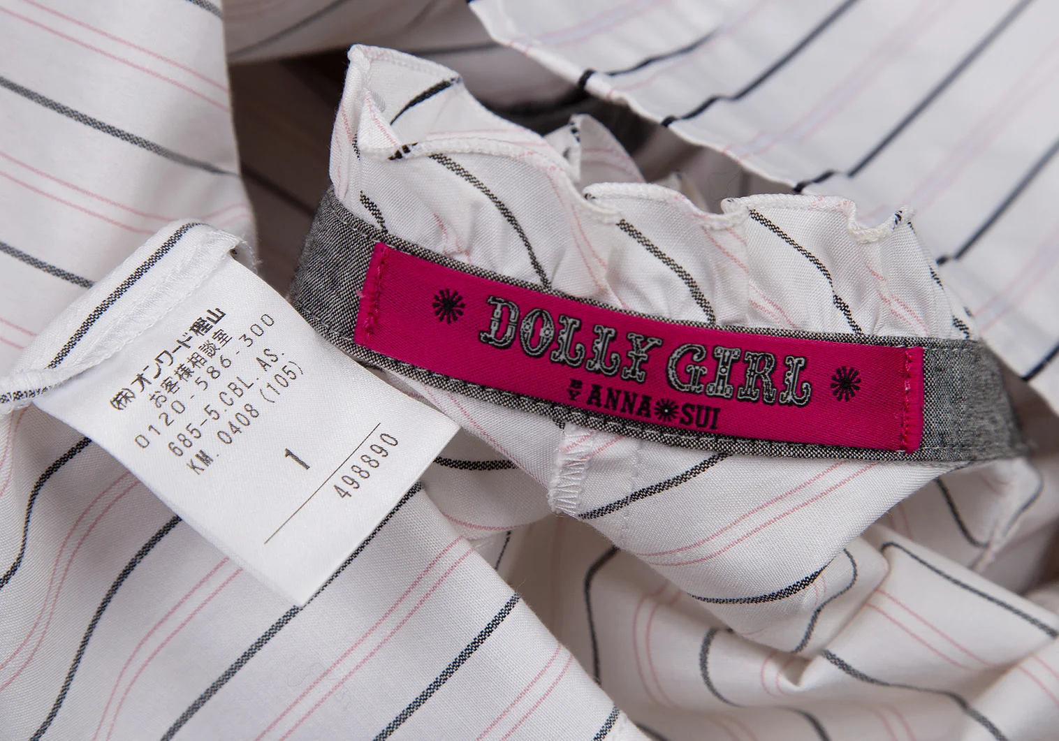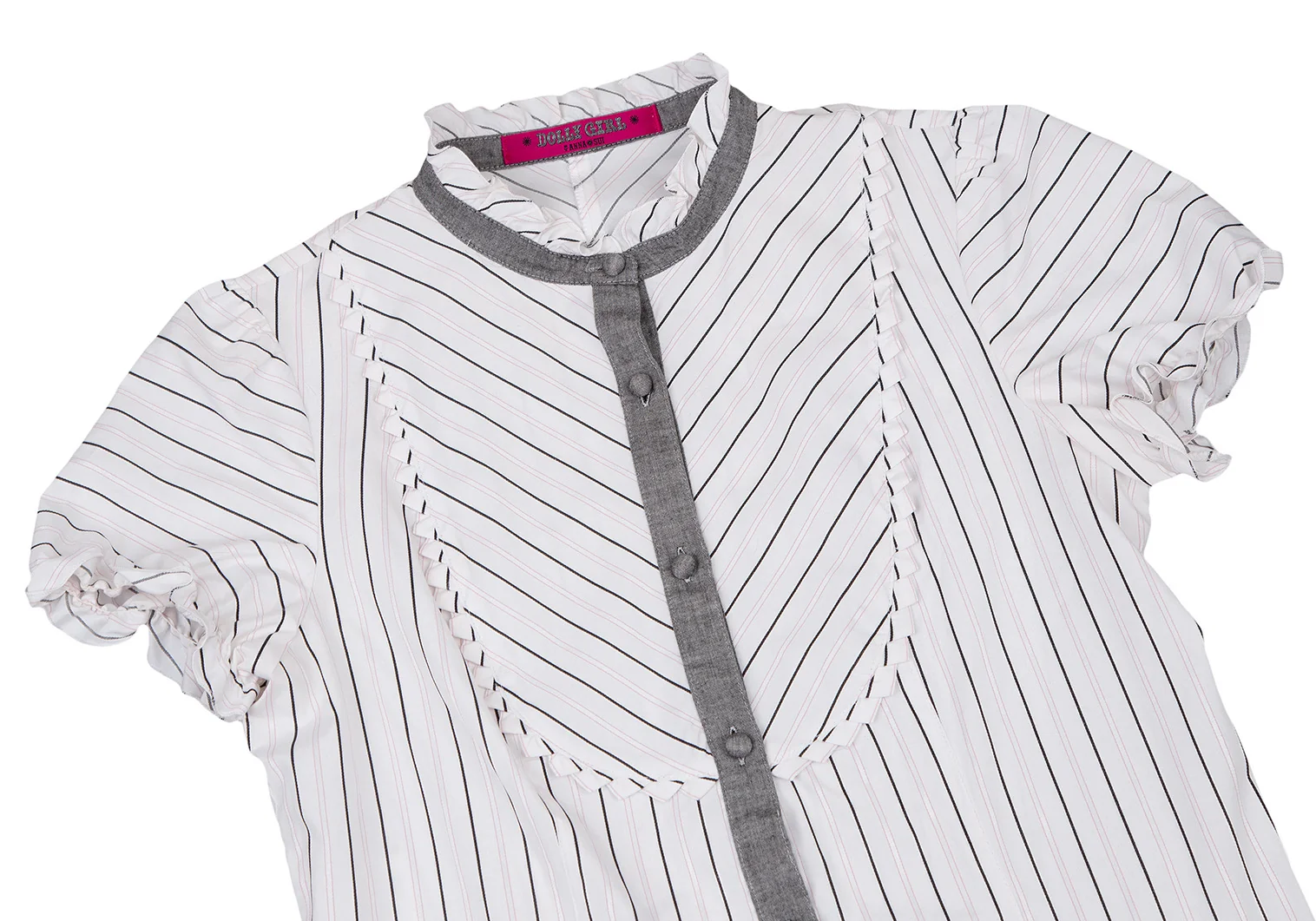 ドーリーガールバイアナスイ DOLLY GIRL BY ANNA SUI ストライプフリルブラウス 白グレーピンク1