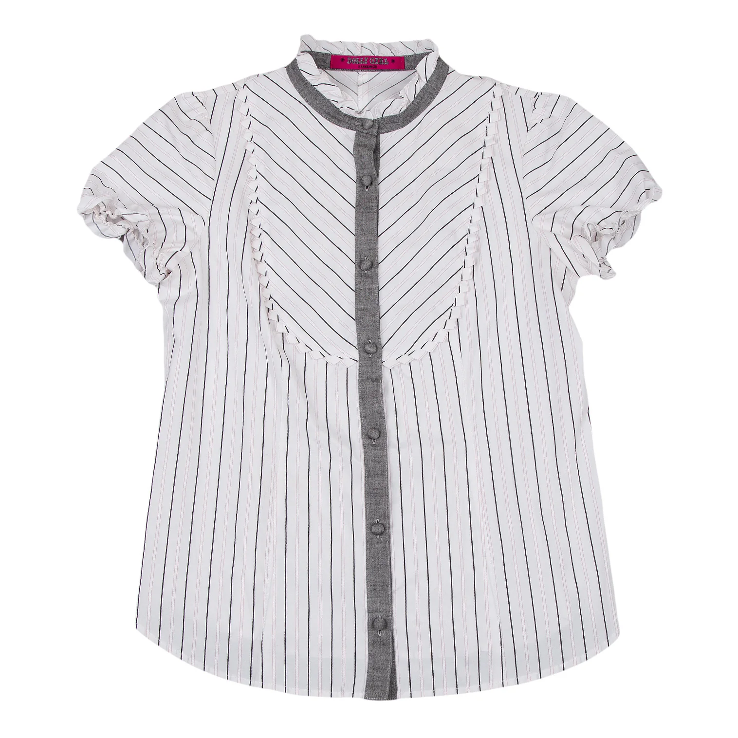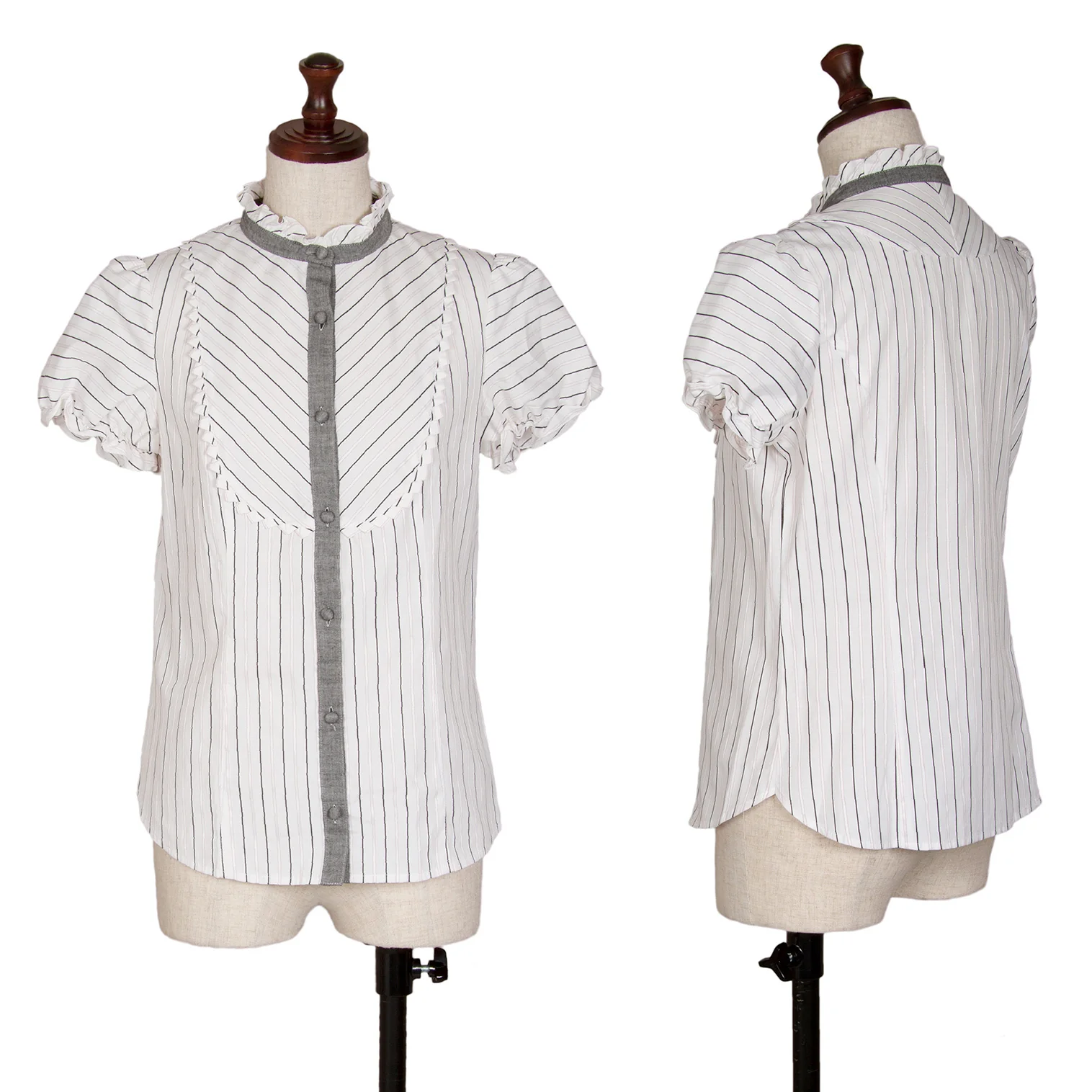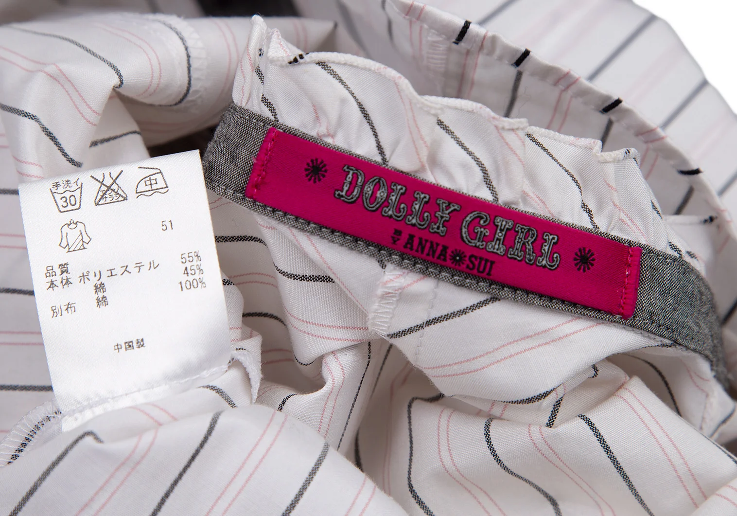 ドーリーガールバイアナスイ DOLLY GIRL BY ANNA SUI ストライプフリルブラウス 白グレーピンク1