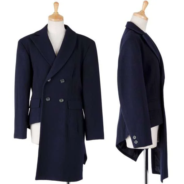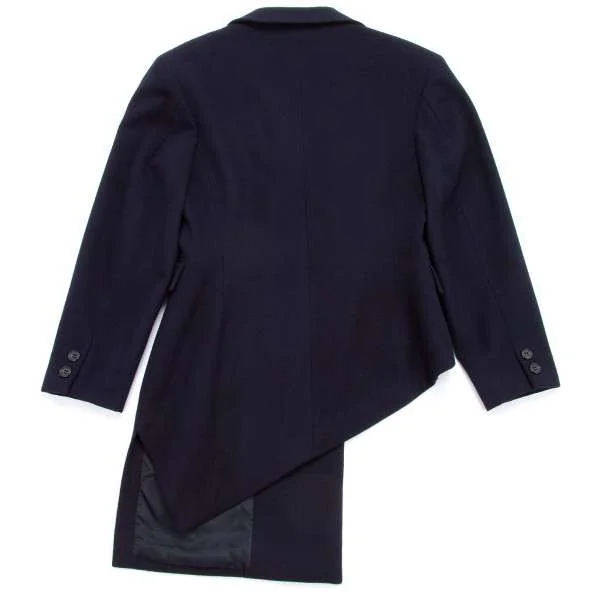 ヨウジヤマモト ファム yohji yamamoto femme フラノアシンメトリージャケット 紺S