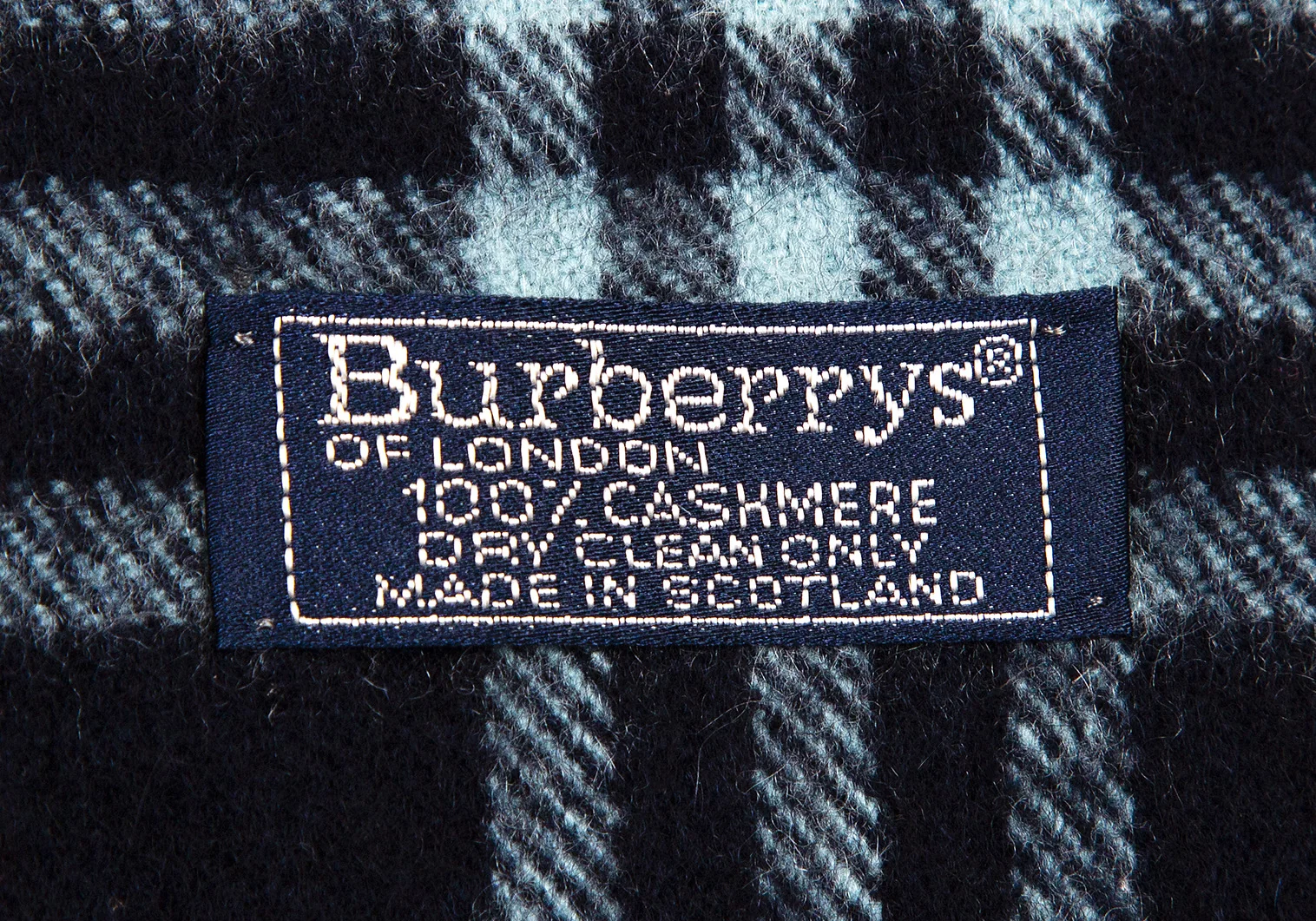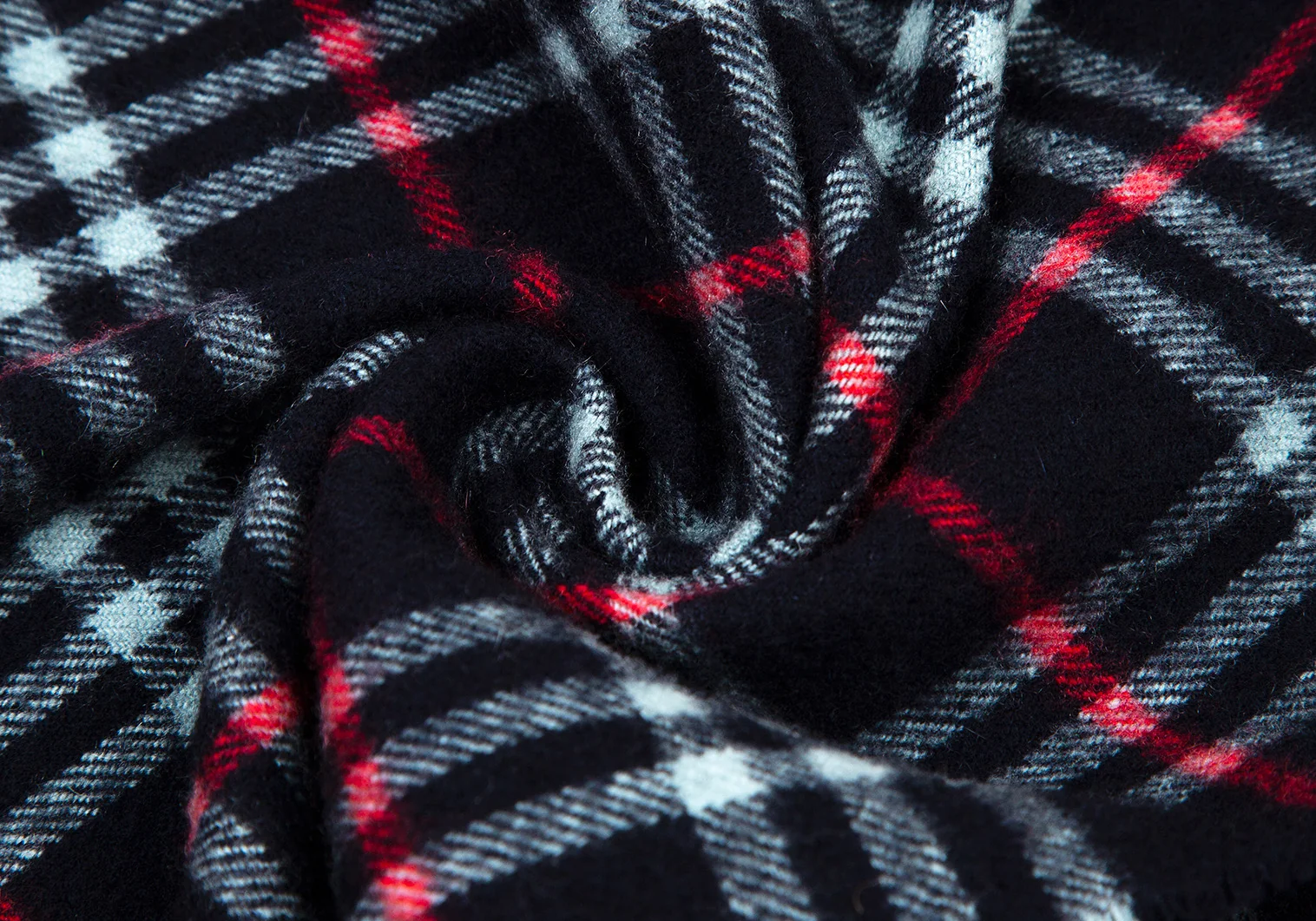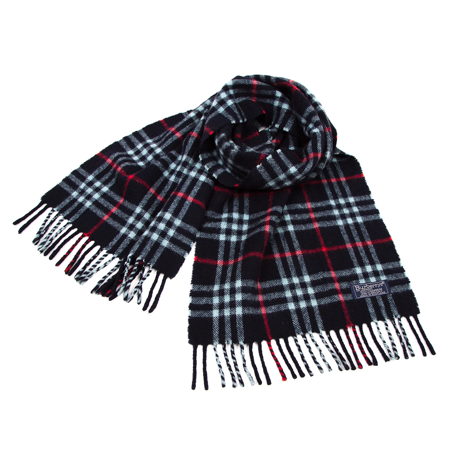 バーバリーズBurberrys' カシミヤチェックフリンジマフラー 紺水色赤