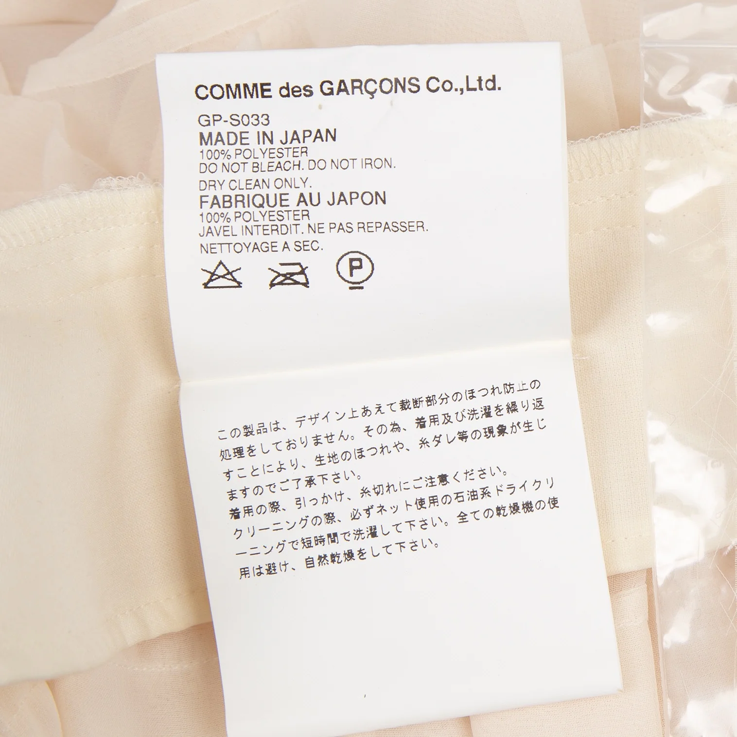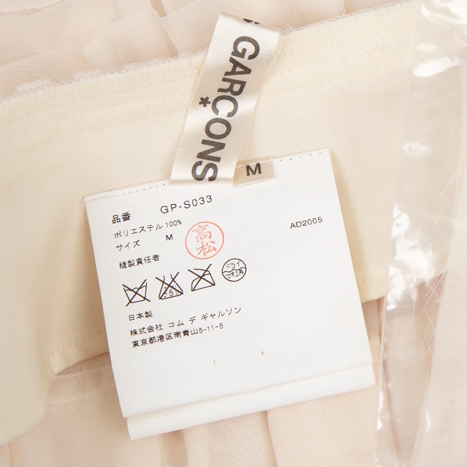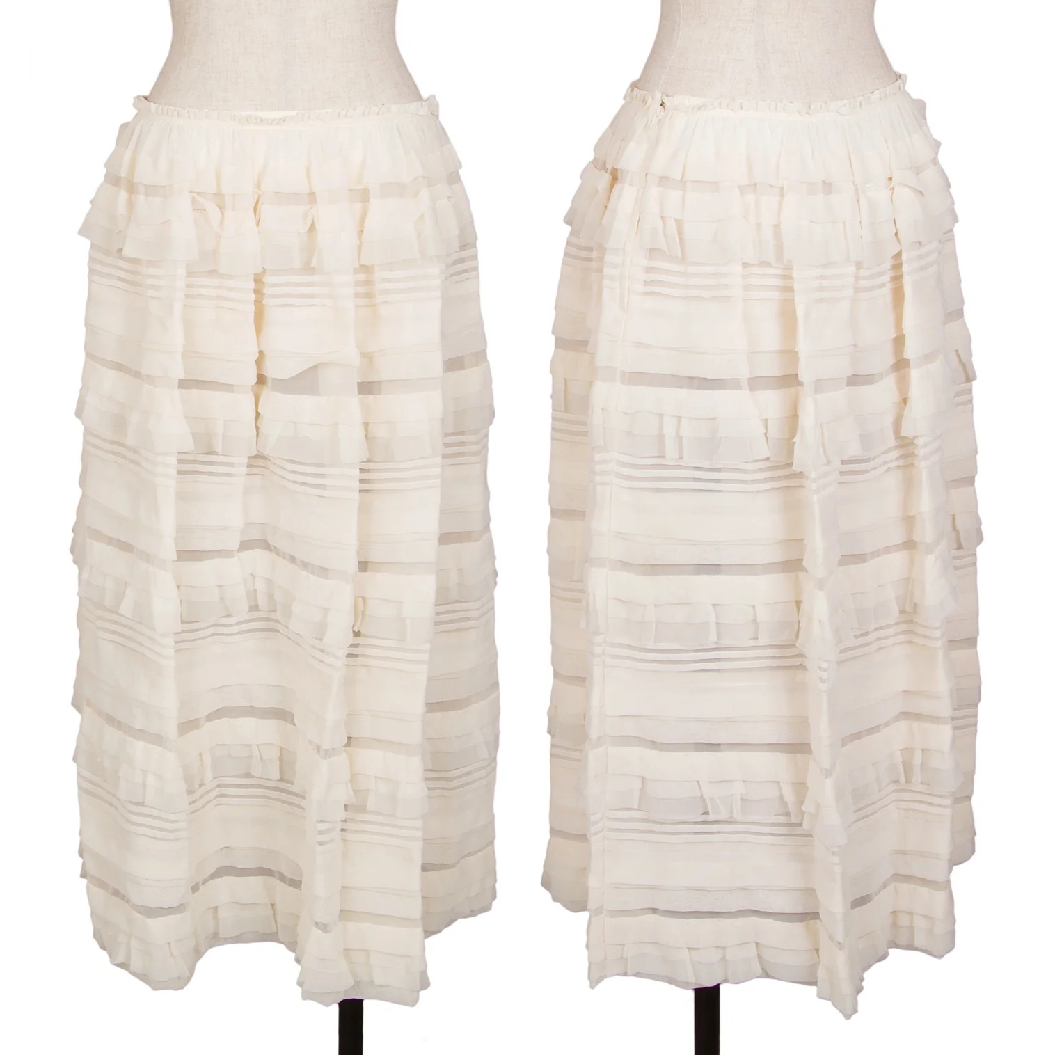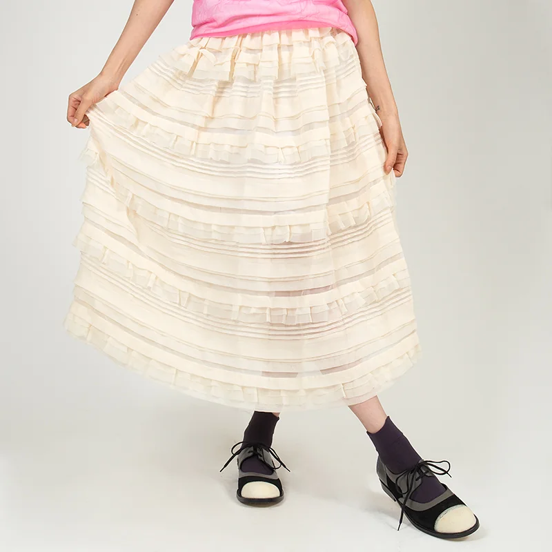 コムデギャルソンCOMME des GARCONSポリフリルシースルーティアードスカート クリームM