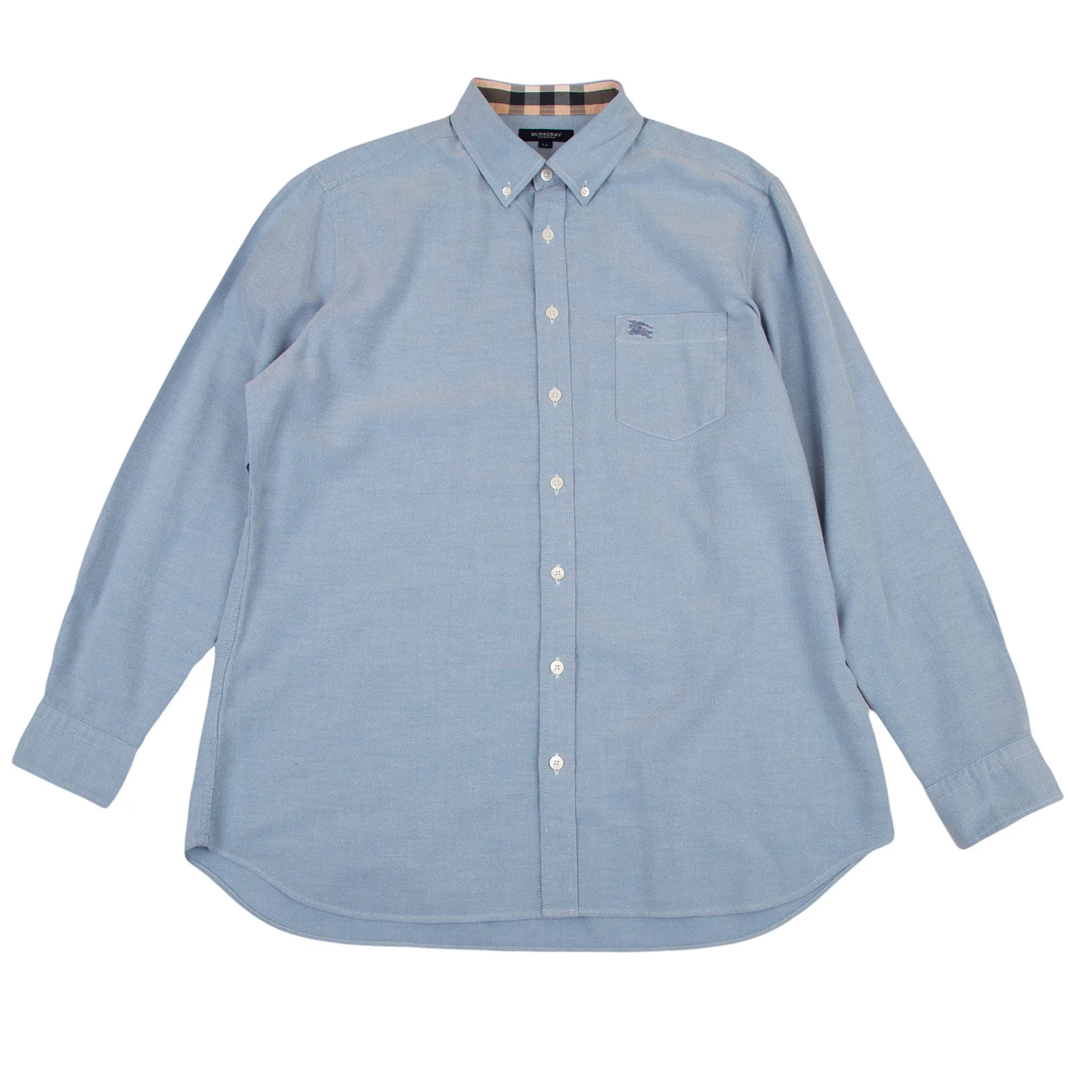 バーバリーBURBERRY LONDON コットンカシミヤオックスフォードボタンダウンシャツ 水色LL