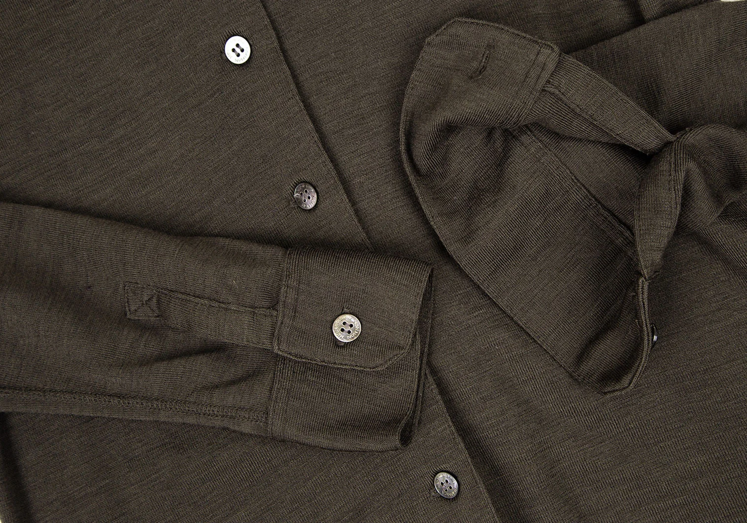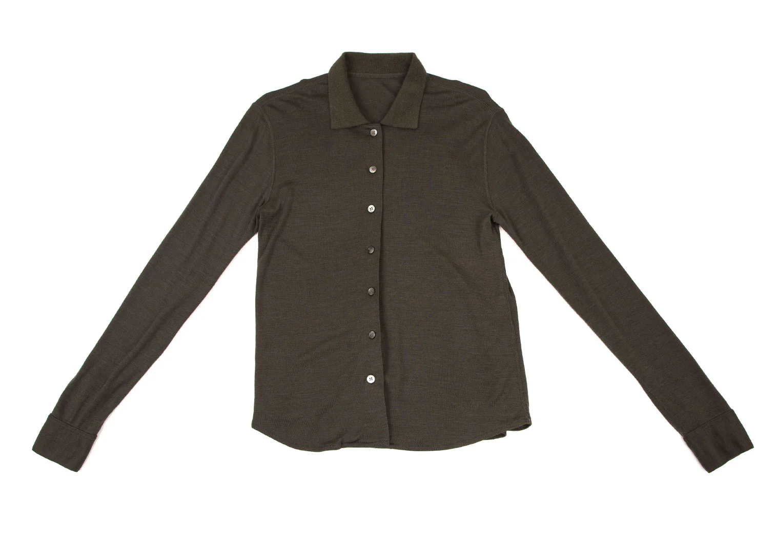 マドモアゼルノンノンMademoiselle NON NON ウール天竺ストレッチシャツ カーキ38M