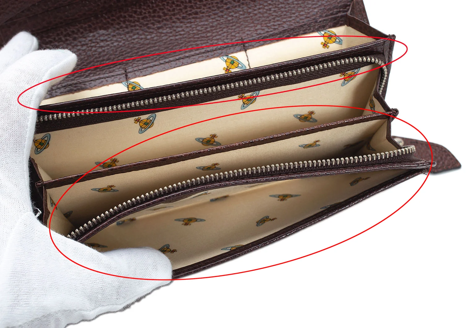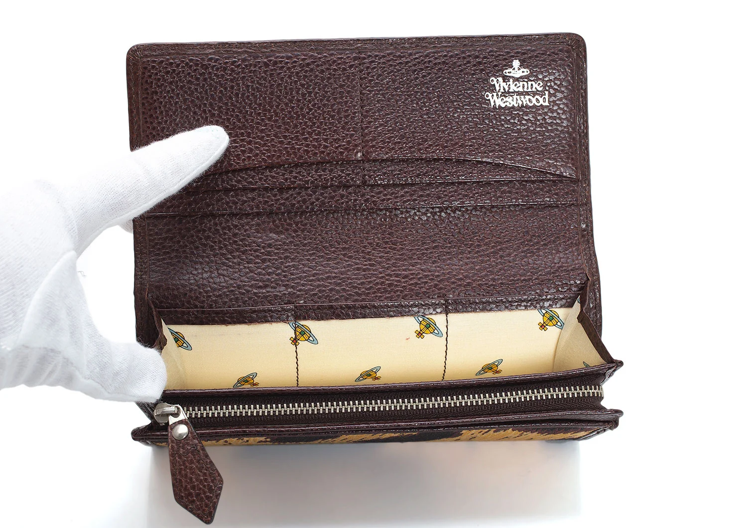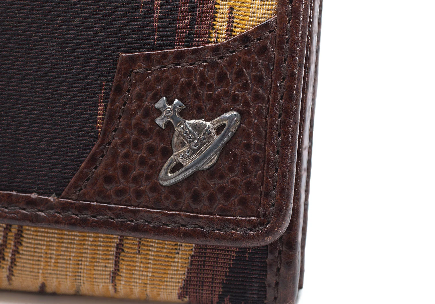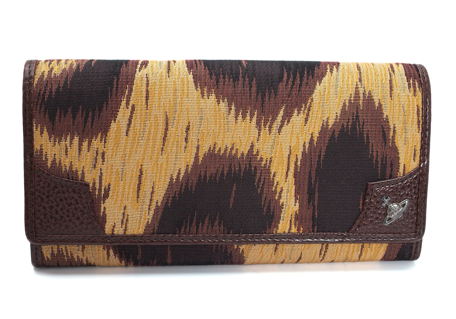 ヴィヴィアンウエストウッドVivienne Westwood オーブレオパードレザー切替二つ折りウォレット 茶黄