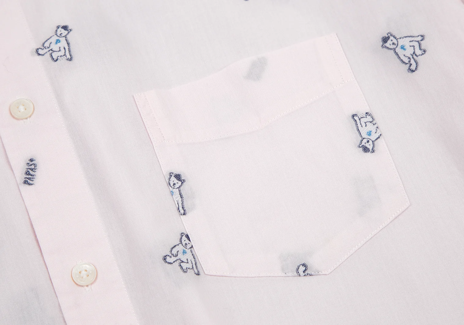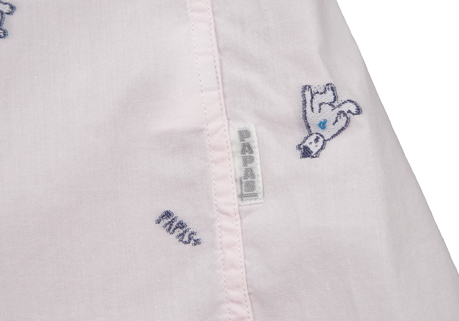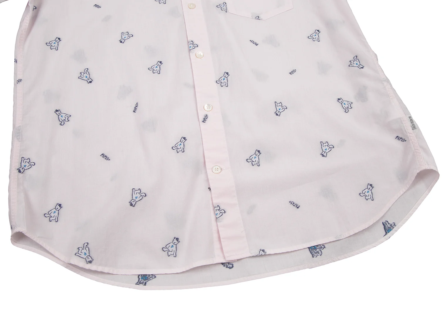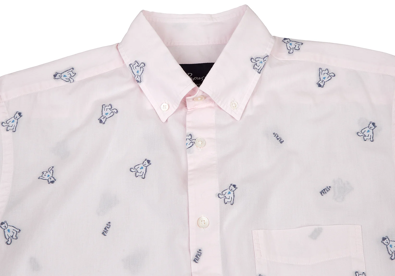 パパスプラスPapas+ ベアカットジャガード半袖シャツ ライトピンクL