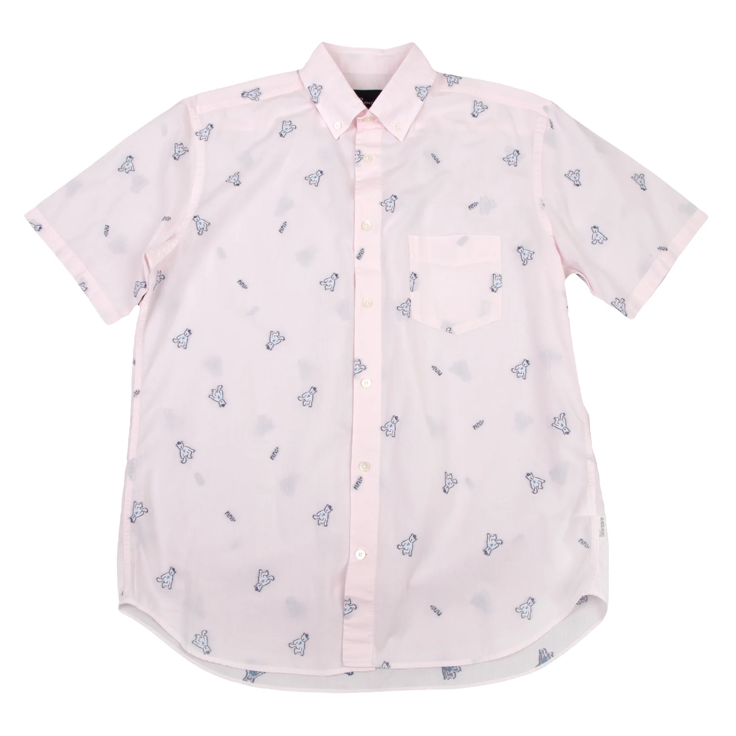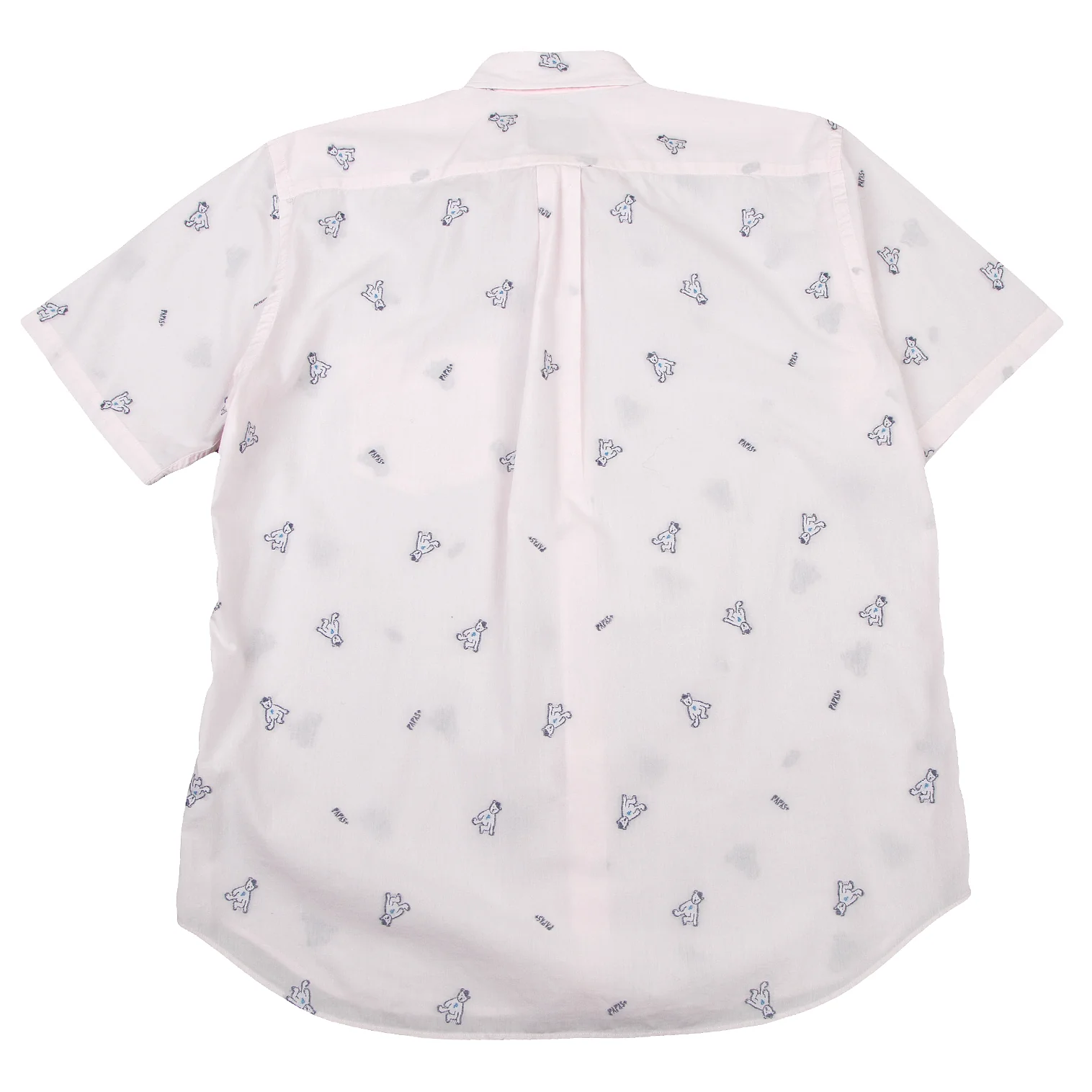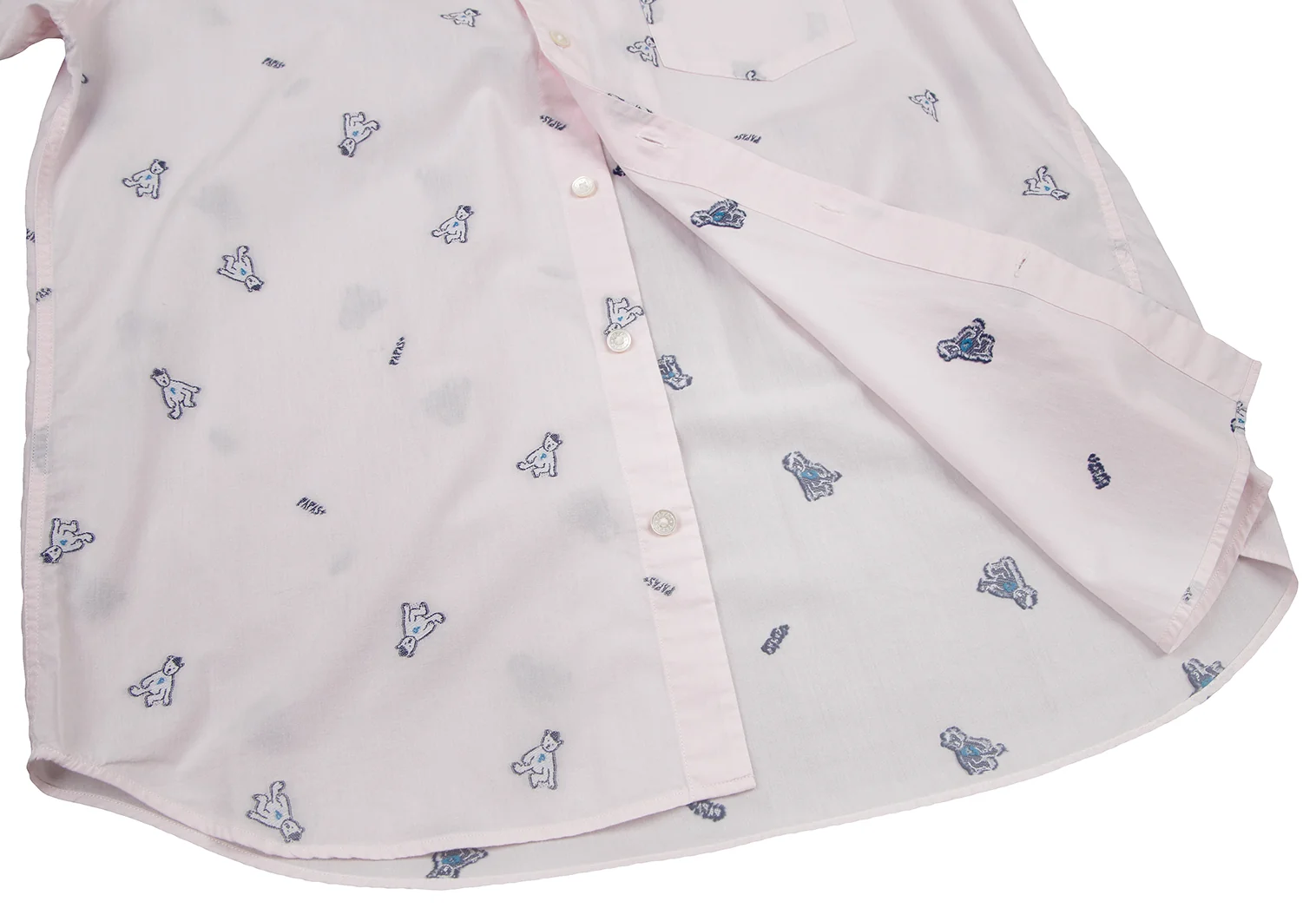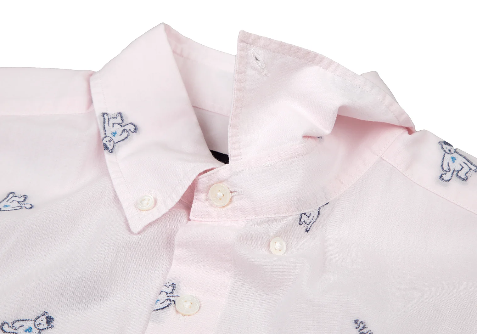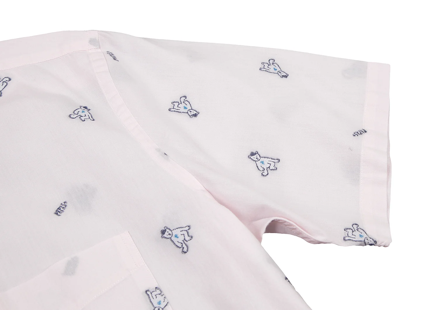 パパスプラスPapas+ ベアカットジャガード半袖シャツ ライトピンクL