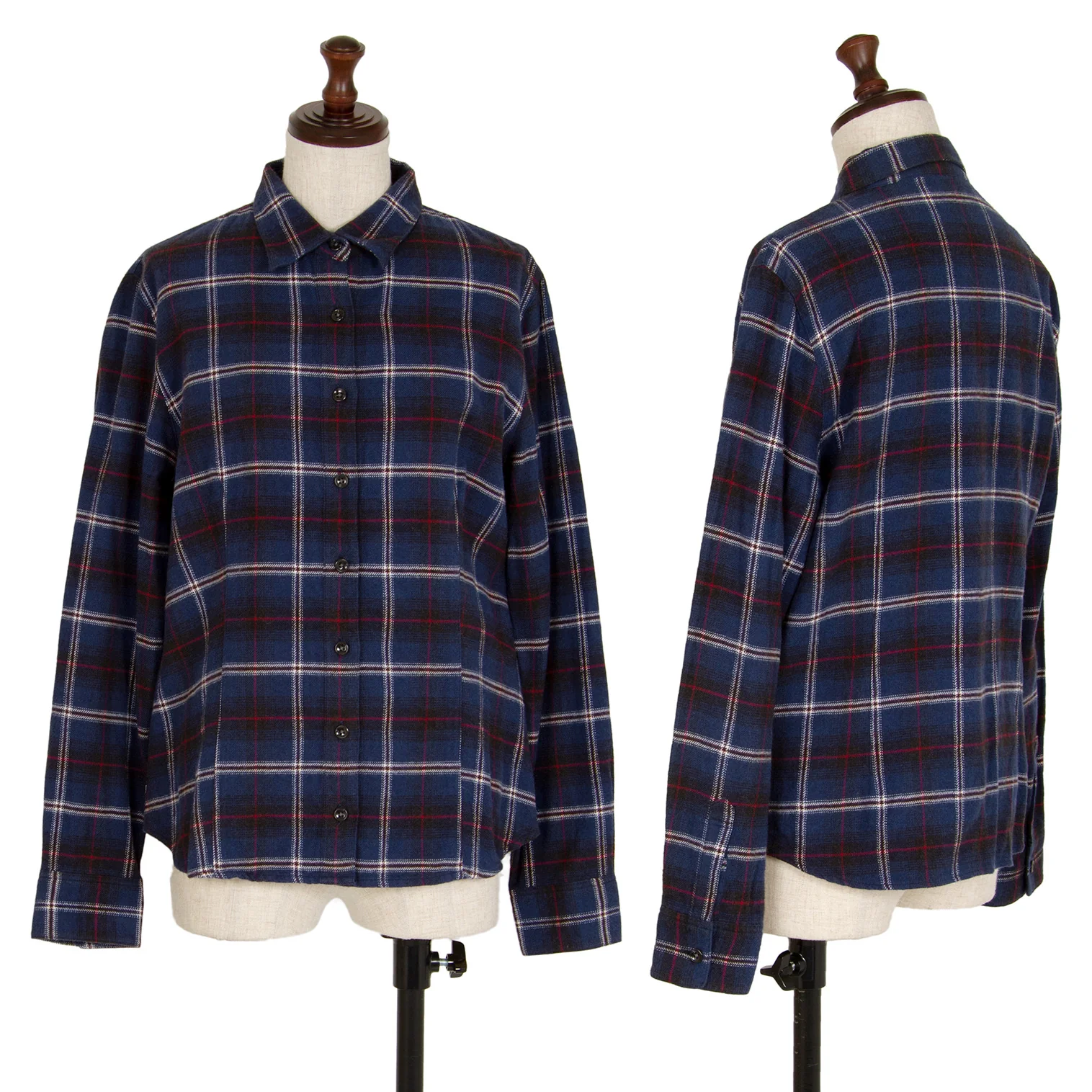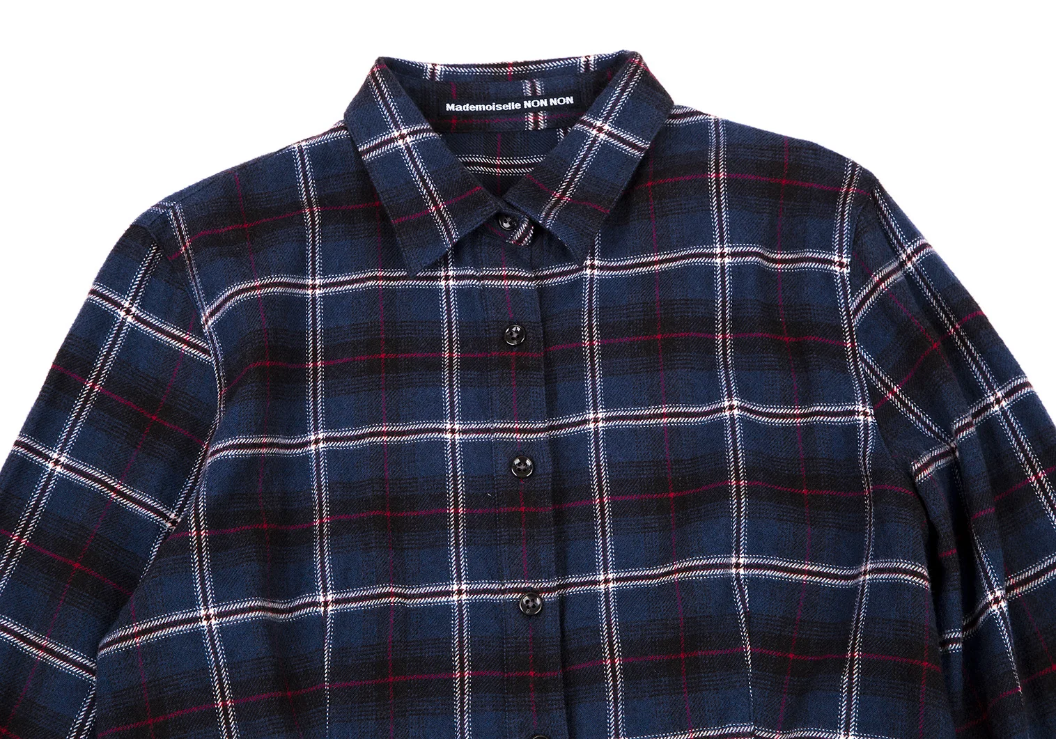 マドモアゼルノンノンMademoiselle NON NON コットンフランネルチェックシャツ 青38M