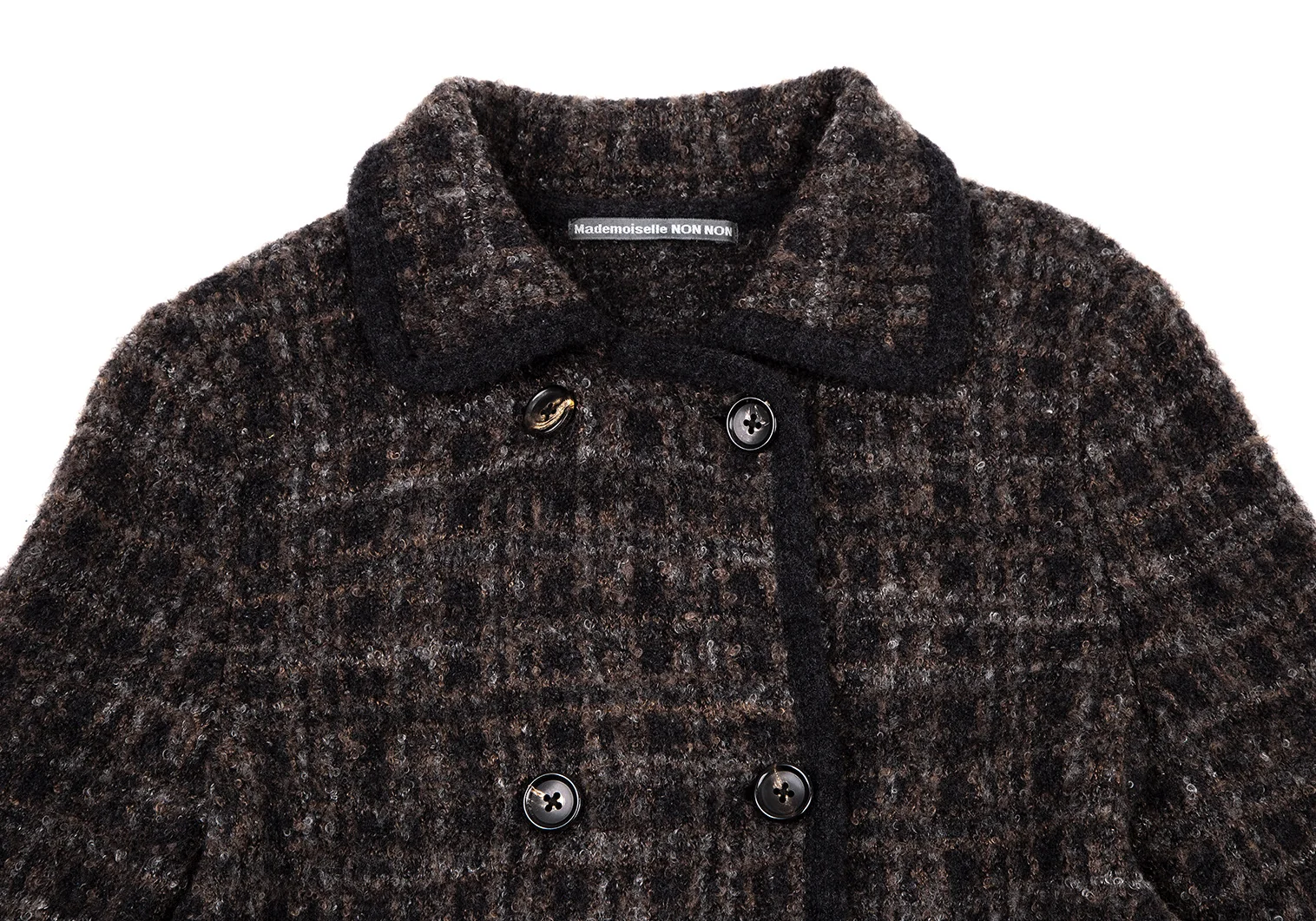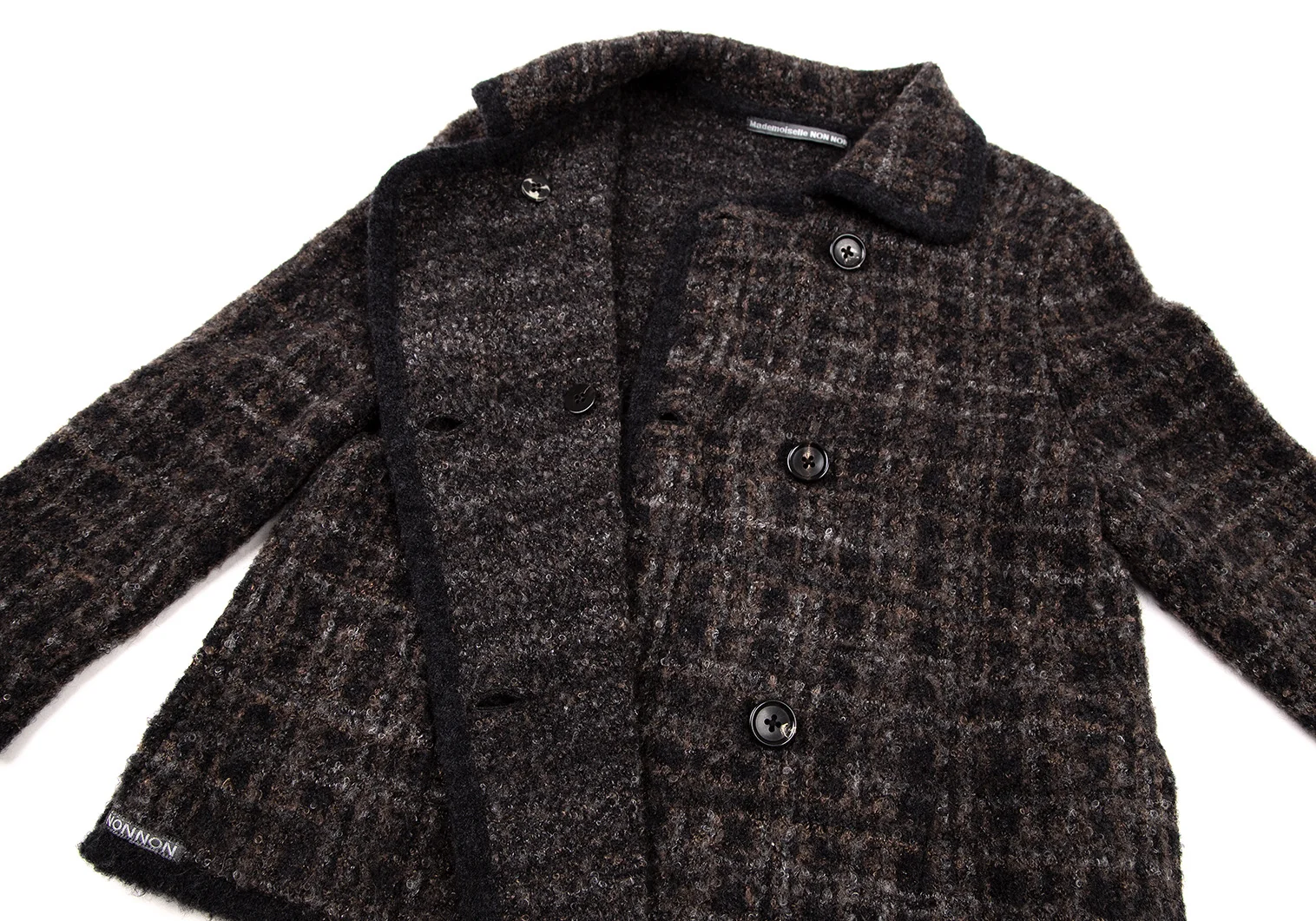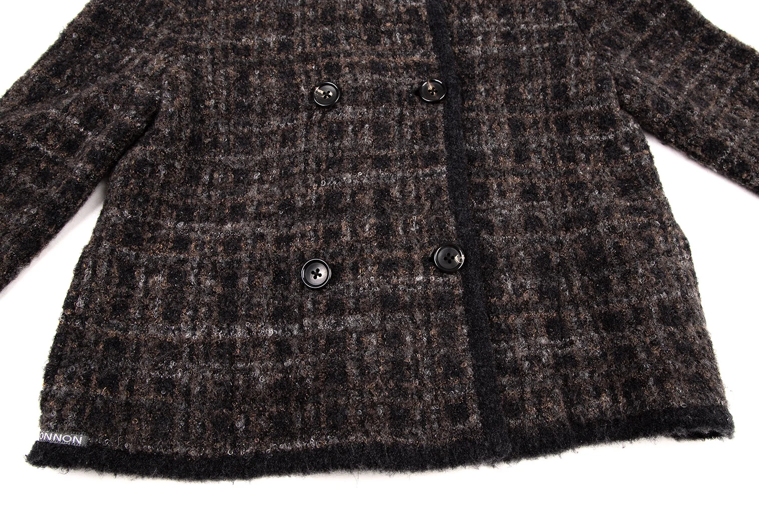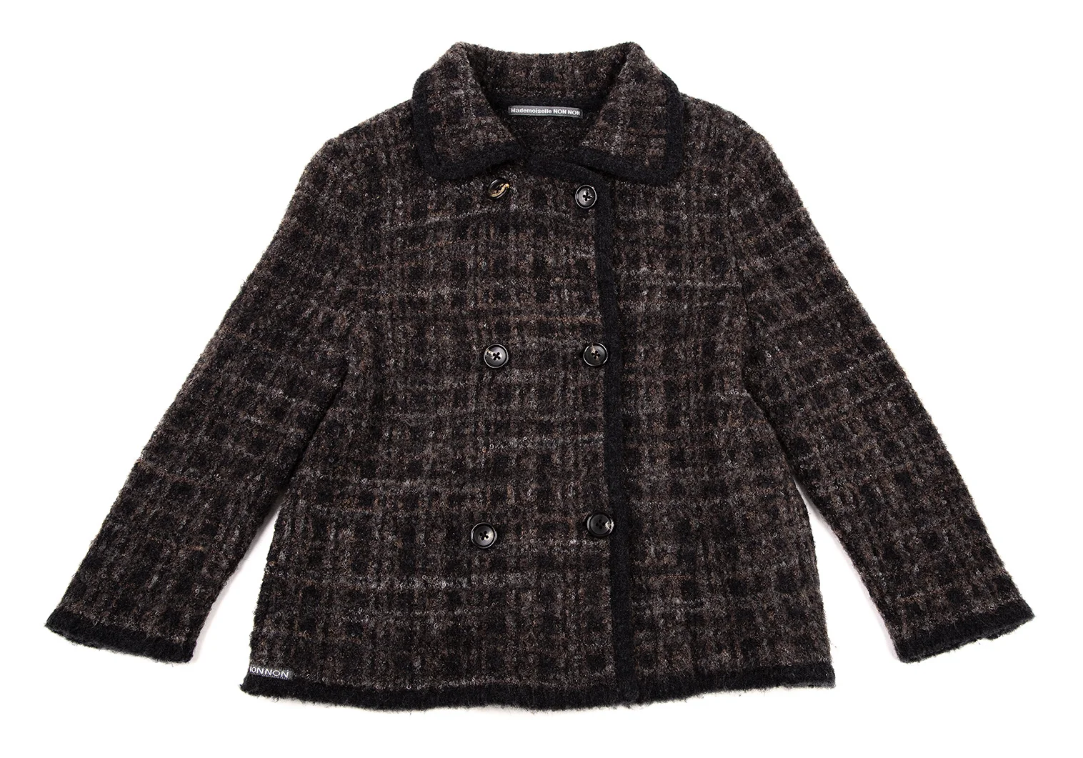 マドモアゼルノンノンMademoiselle NON NON ループツイードチェックニットジャケット 茶黒38M