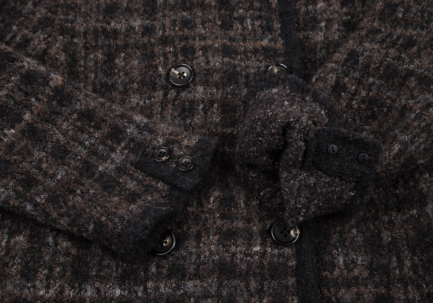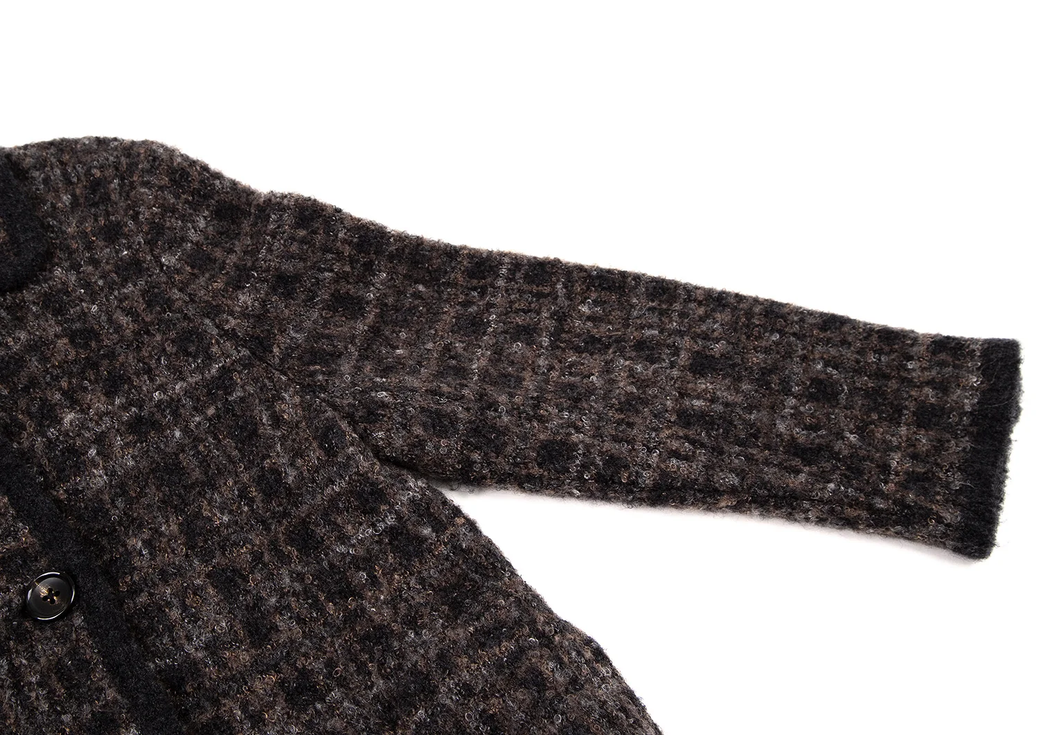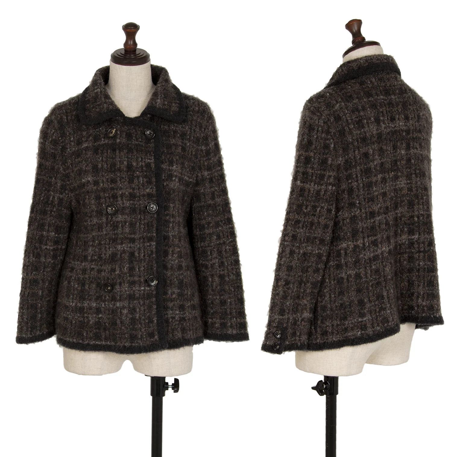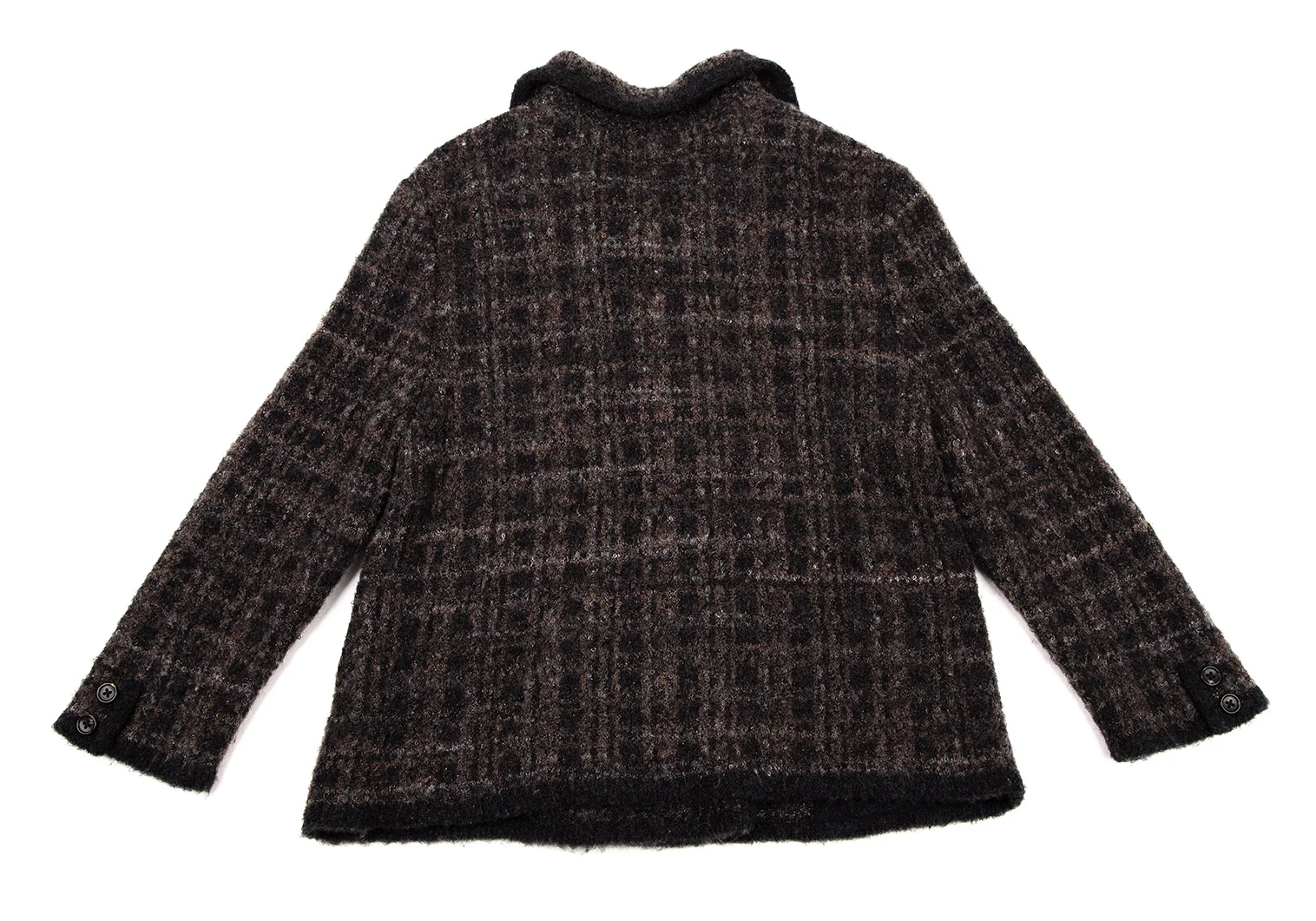 マドモアゼルノンノンMademoiselle NON NON ループツイードチェックニットジャケット 茶黒38M