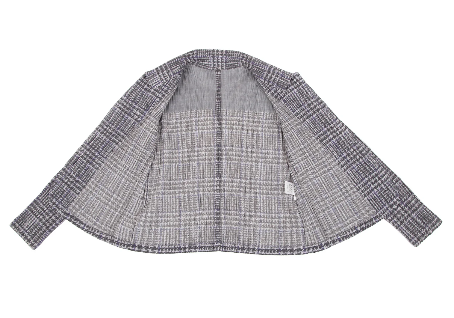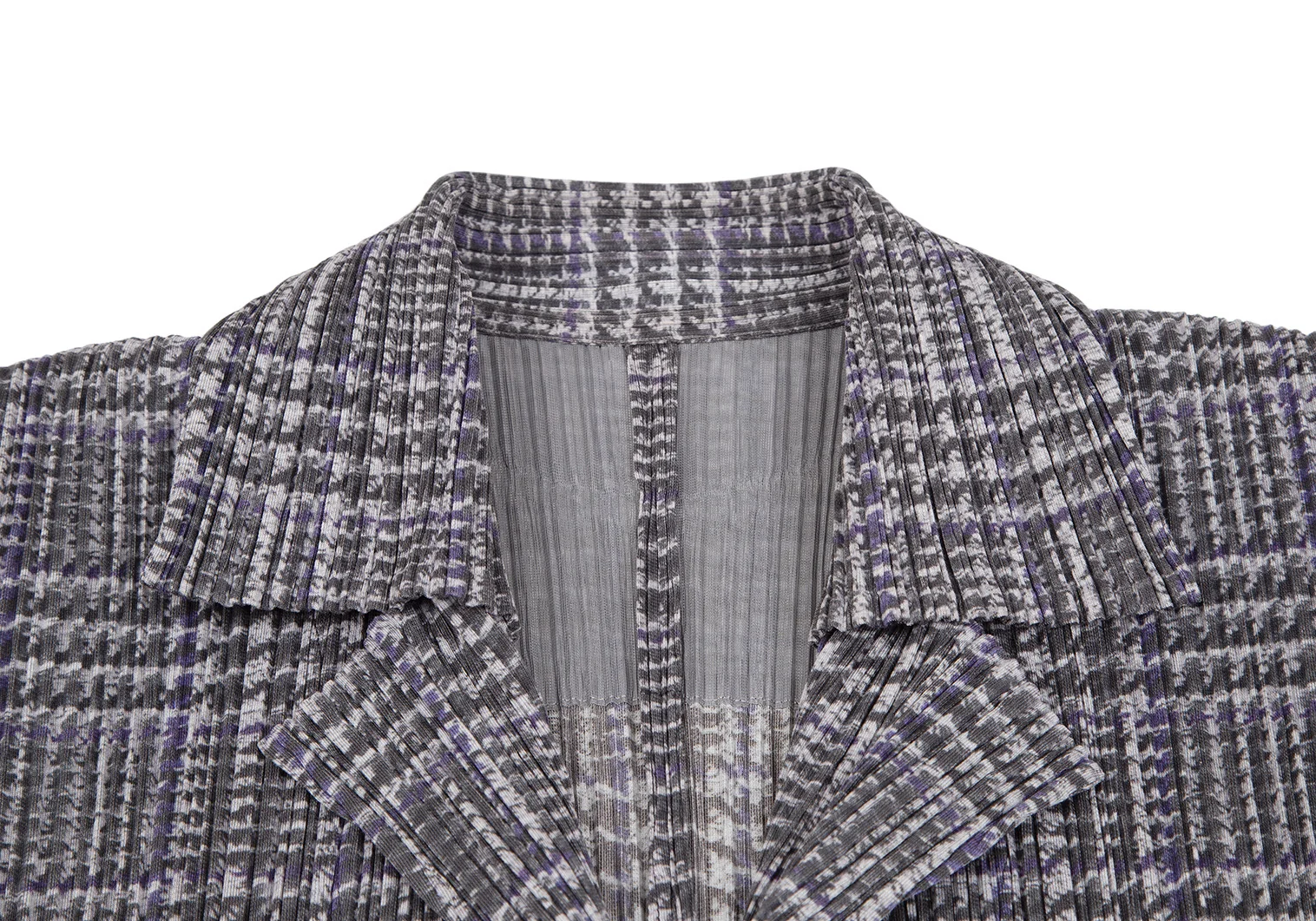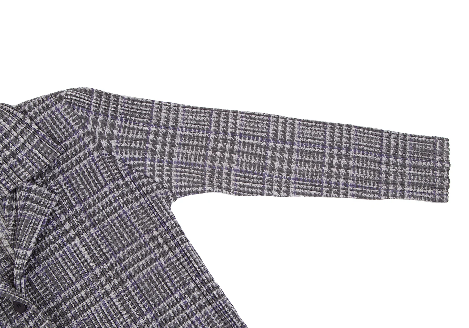 プリーツプリーズPLEATS PLEASE グレンチェック転写プリントプリーツジャケット グレーパープル3