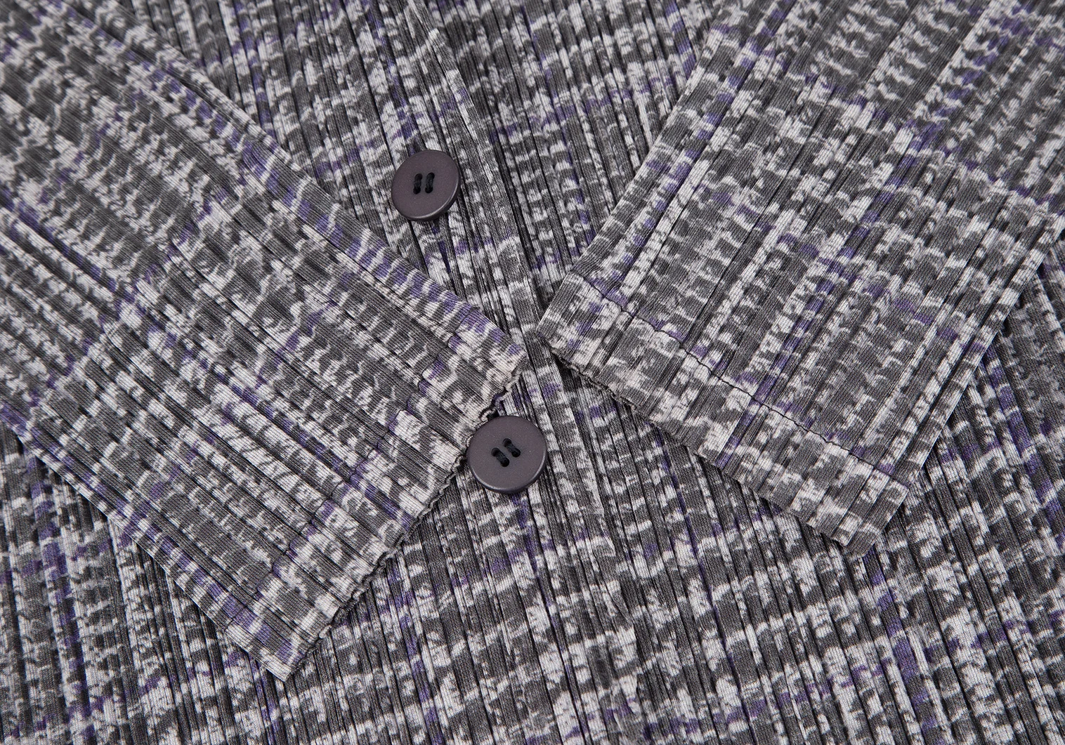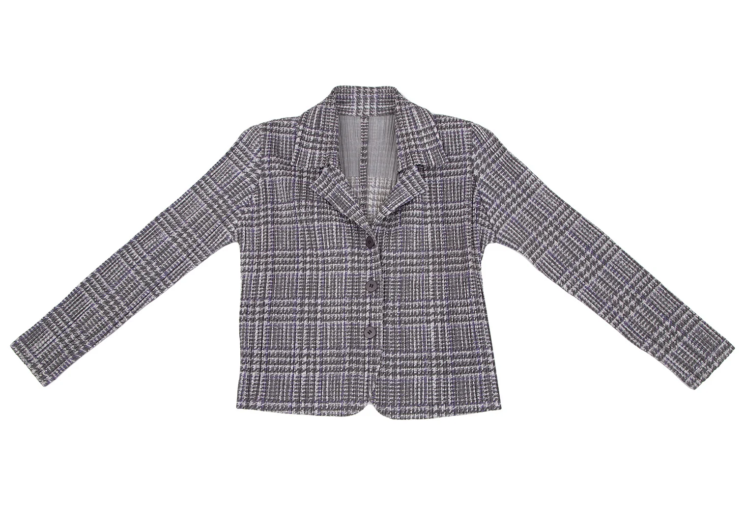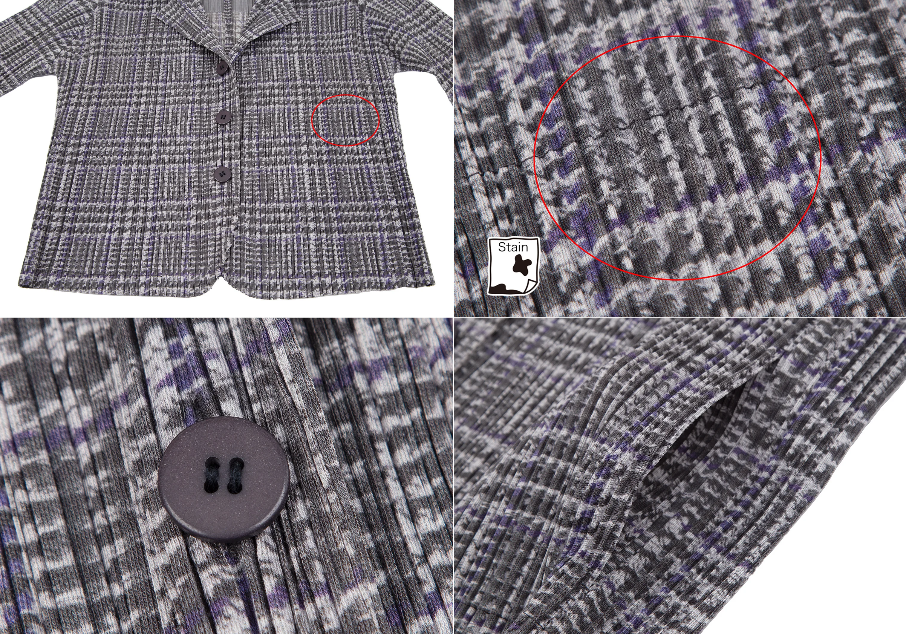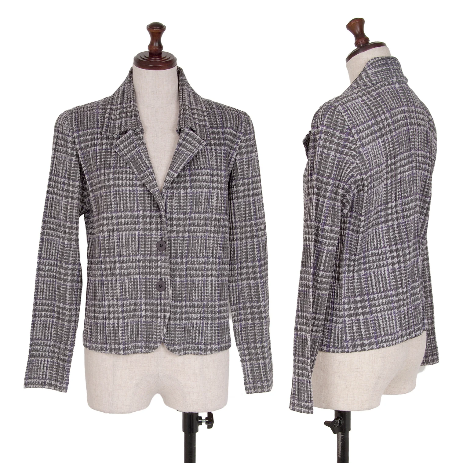 プリーツプリーズPLEATS PLEASE グレンチェック転写プリントプリーツジャケット グレーパープル3