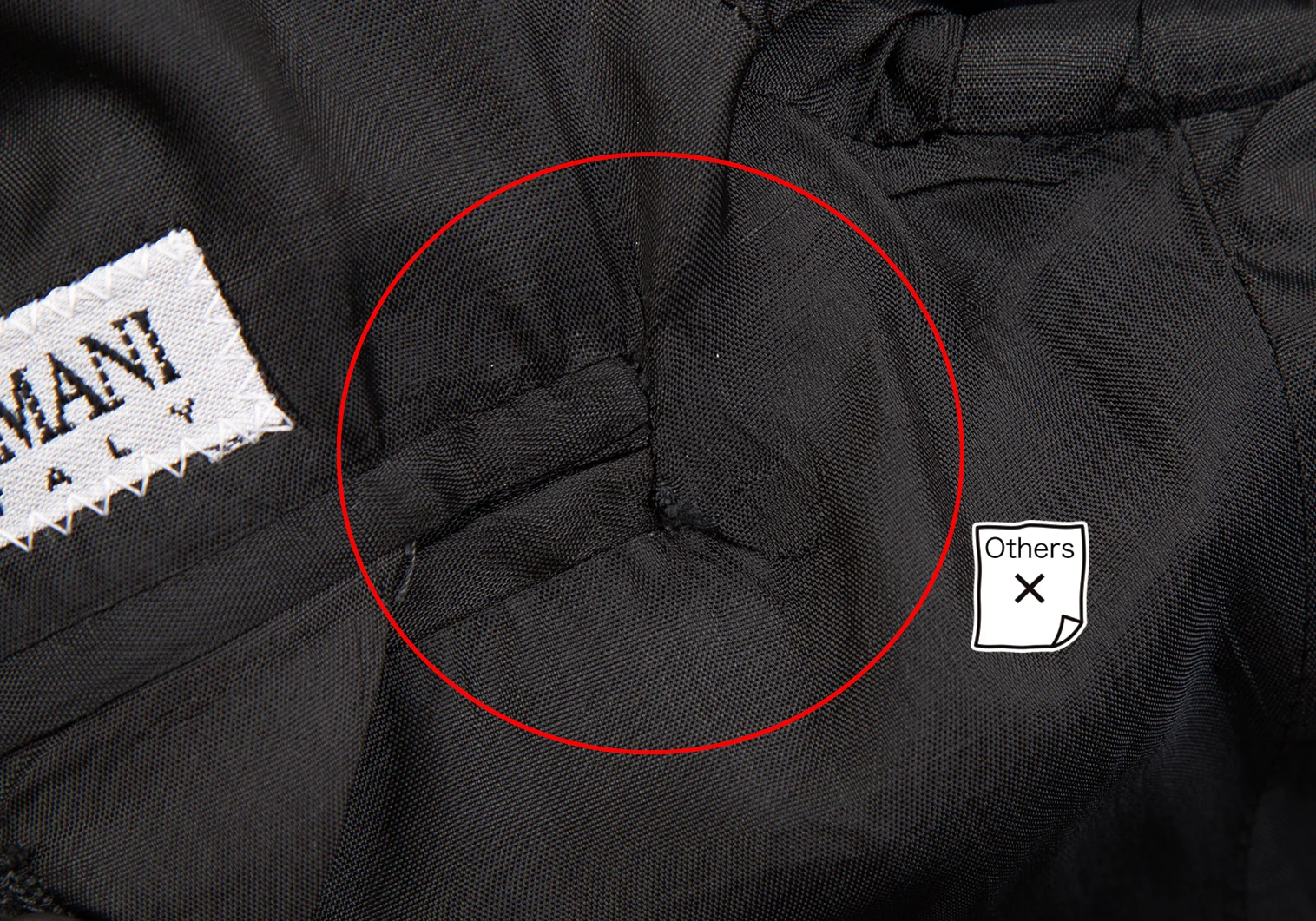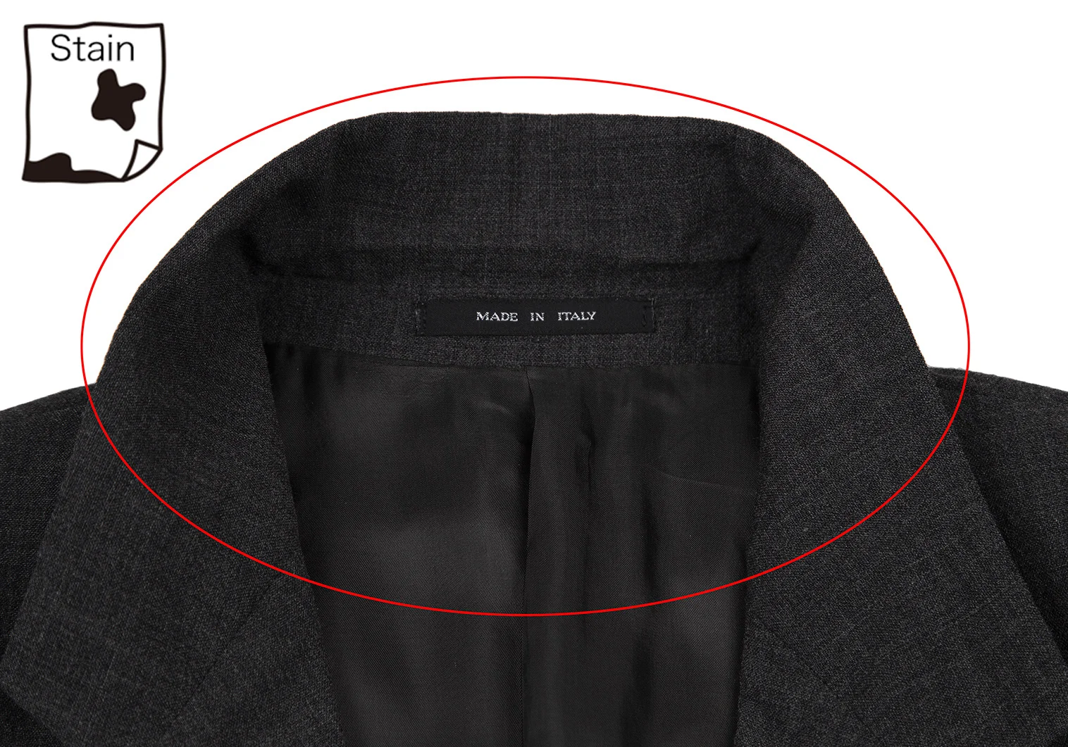 肩パッドがあります。襟元に薄汚れ、テカリ、裏側ポケット口にダメージがあります。(画像参照)その他目立ったシミ、汚れ、ほつれ等なくいい状態です。クリーニング済み