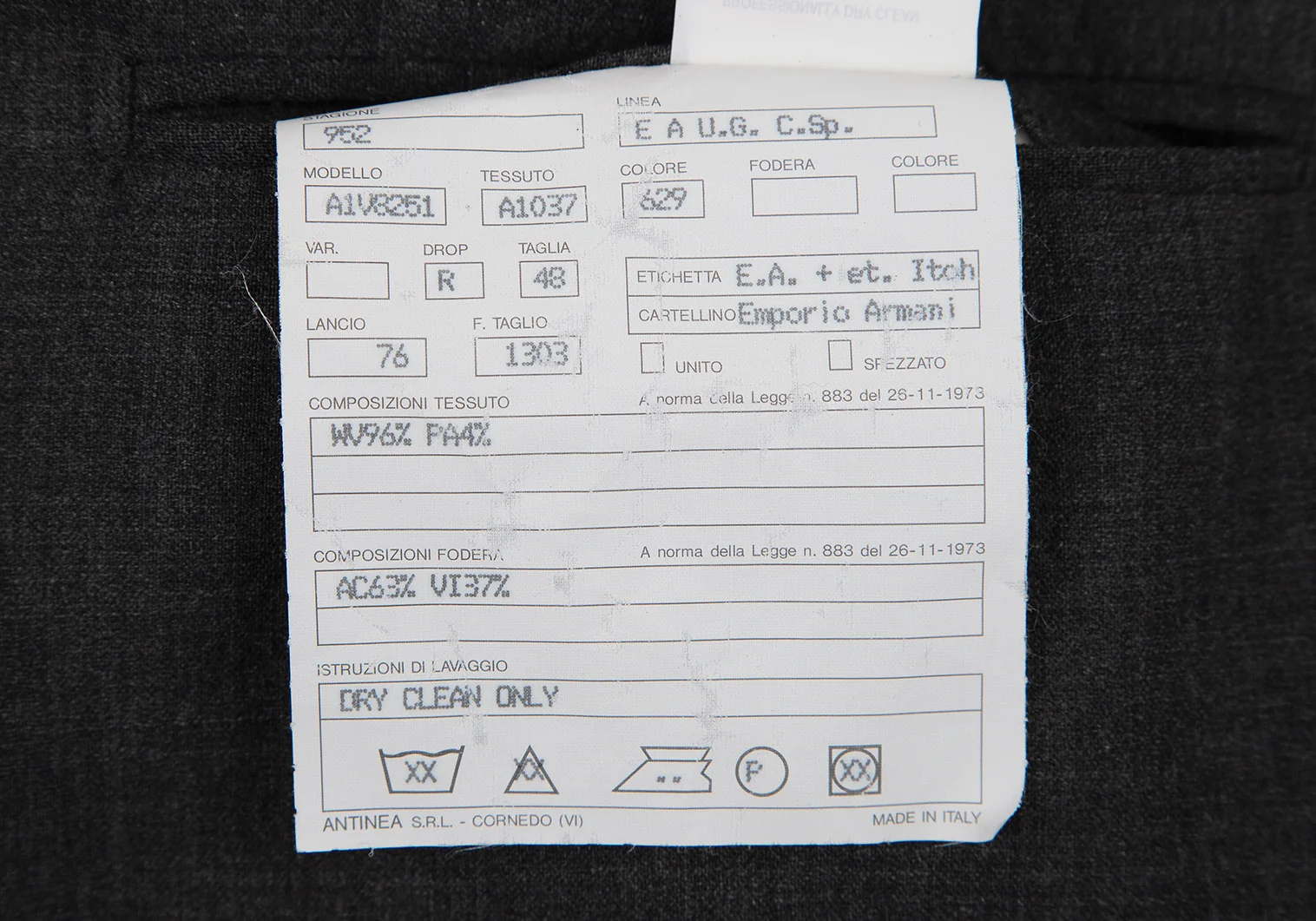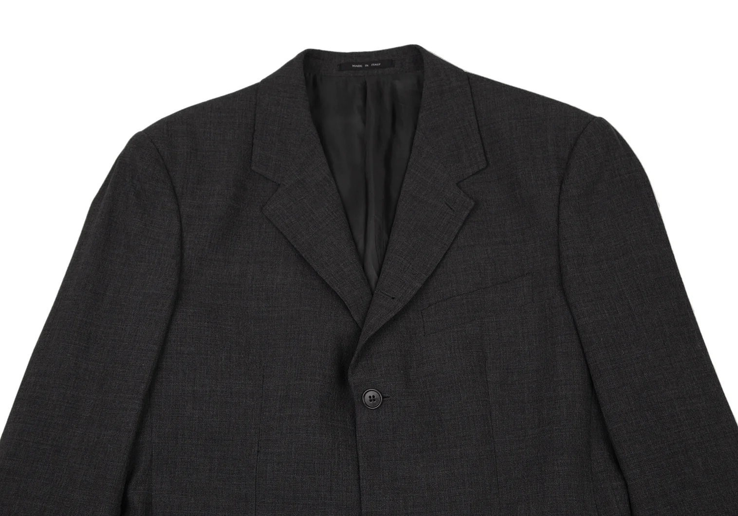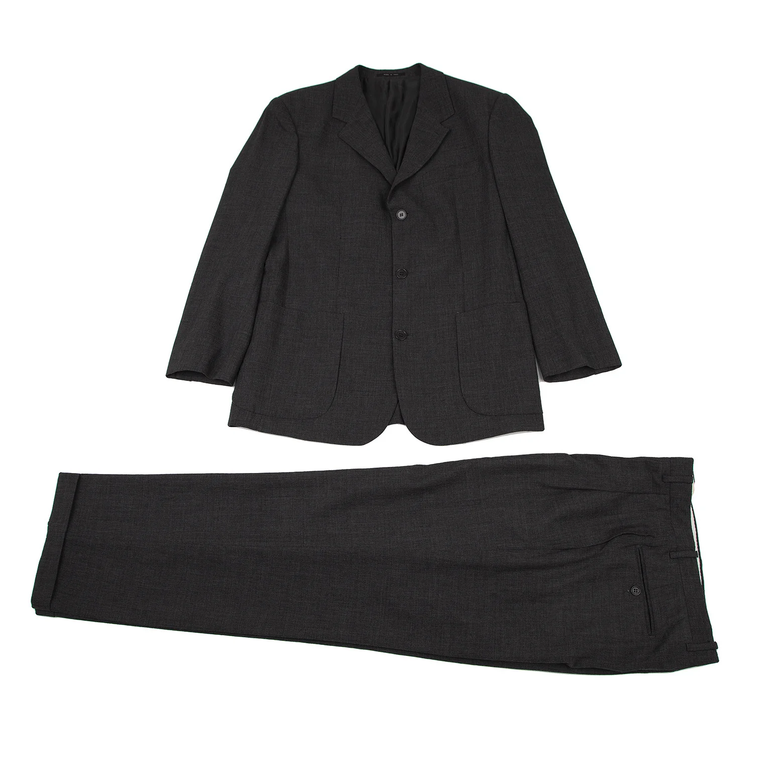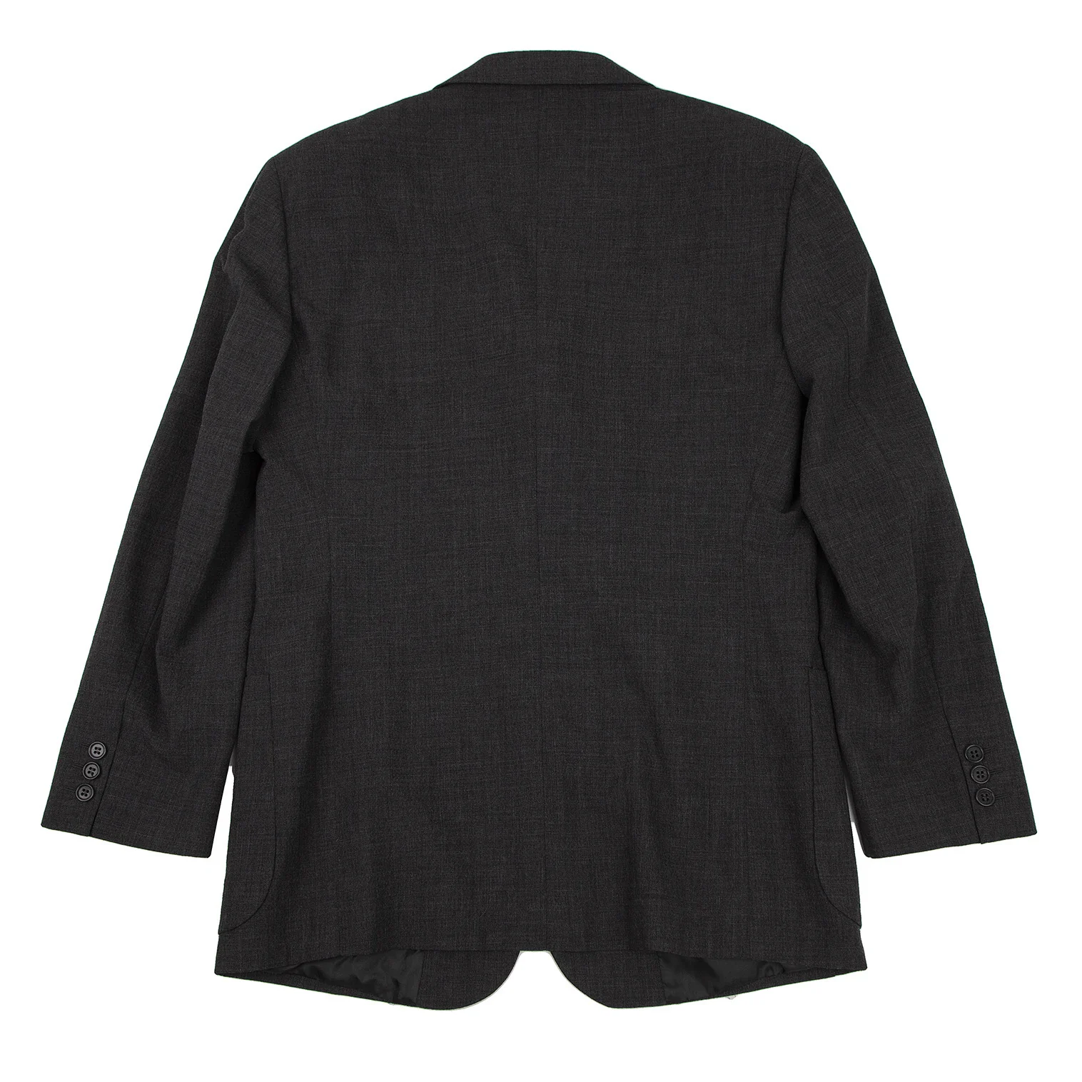 ジャケット:肩パッドがあります。襟元に薄汚れ・テカリ、裏側ポケット口にダメージがあります。パンツ:セットアップのためブランドタグはありません。ウエスト見返しに汚れがあります。(画像参照)その他目立ったシミ、汚れ、ほつれ等なくいい状態です。クリーニング済み