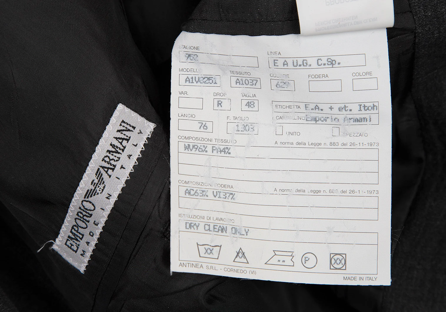 毛96% ナイロン4% 裏地 アセテート63% ヴィスコース37%