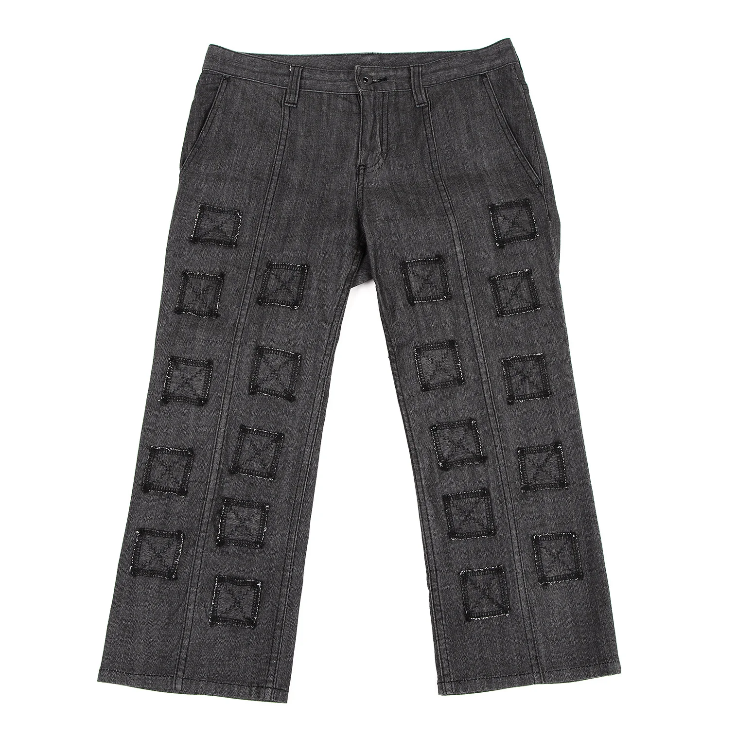 イッセイミヤケ ハートISSEY MIYAKE HaaT ストレッチスクエアパッチクロップドパンツ ブラック1