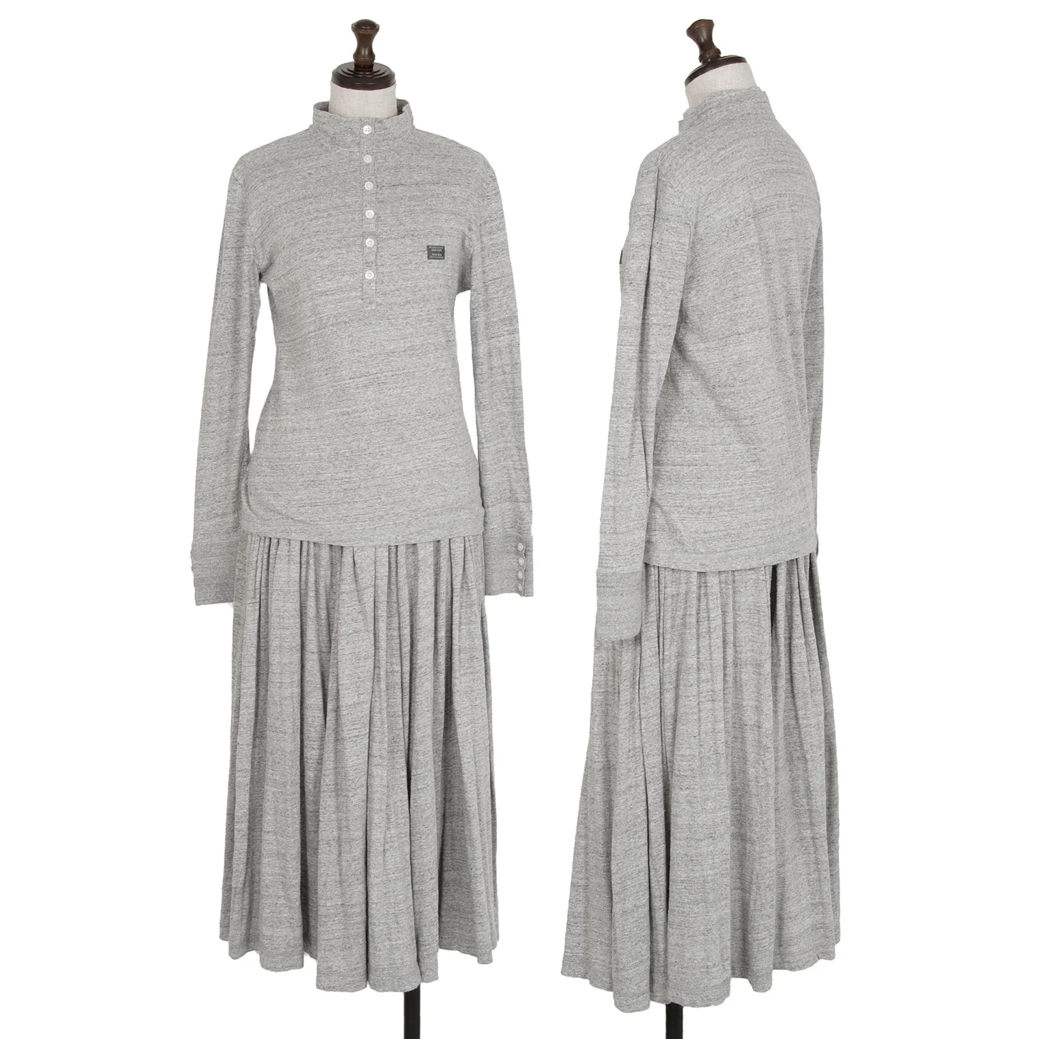 マドモアゼルノンノンMademoiselle NON NON ジャズネップスタンドカラー長袖ポロシャツ 杢グレー38M
