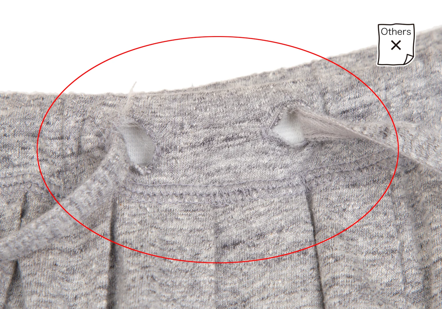 ウエストボタンホールに広がりがあります(写真参照)。その他に目立ったシミ、汚れ、ほつれ等なくいい状態です。クリーニング済み