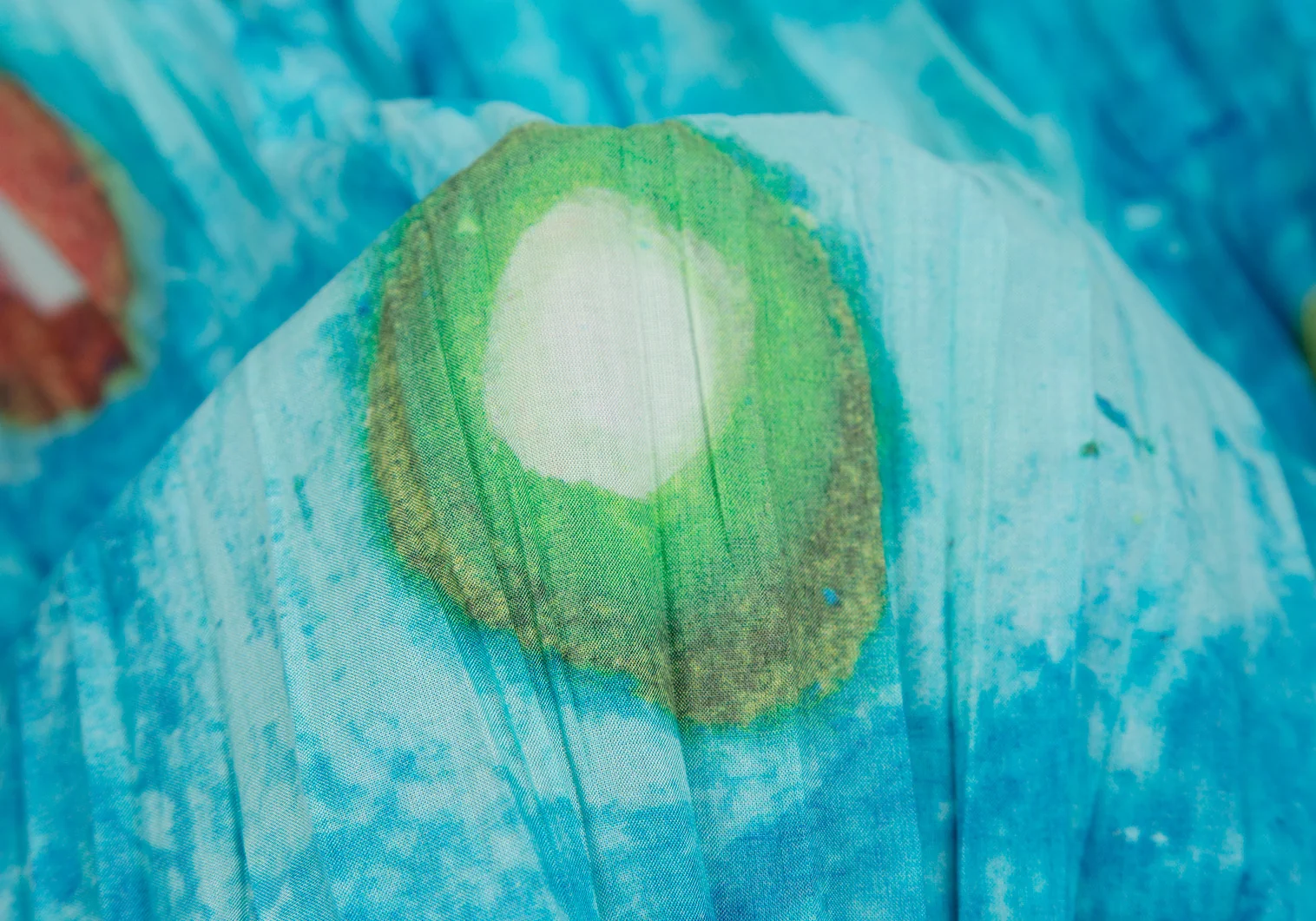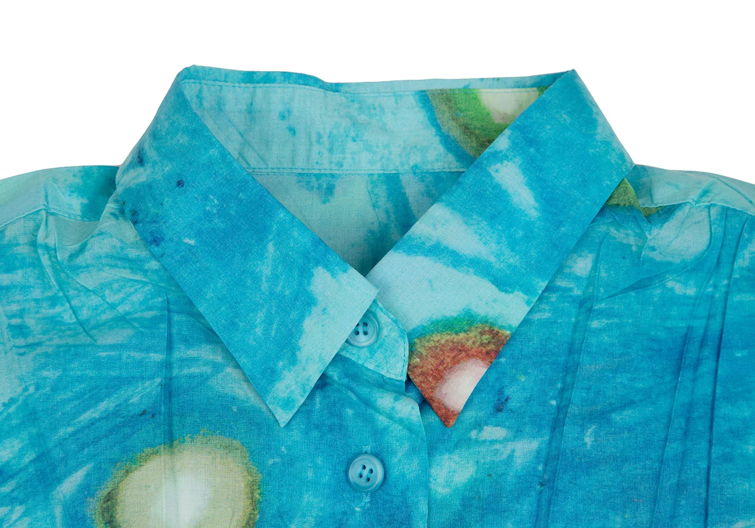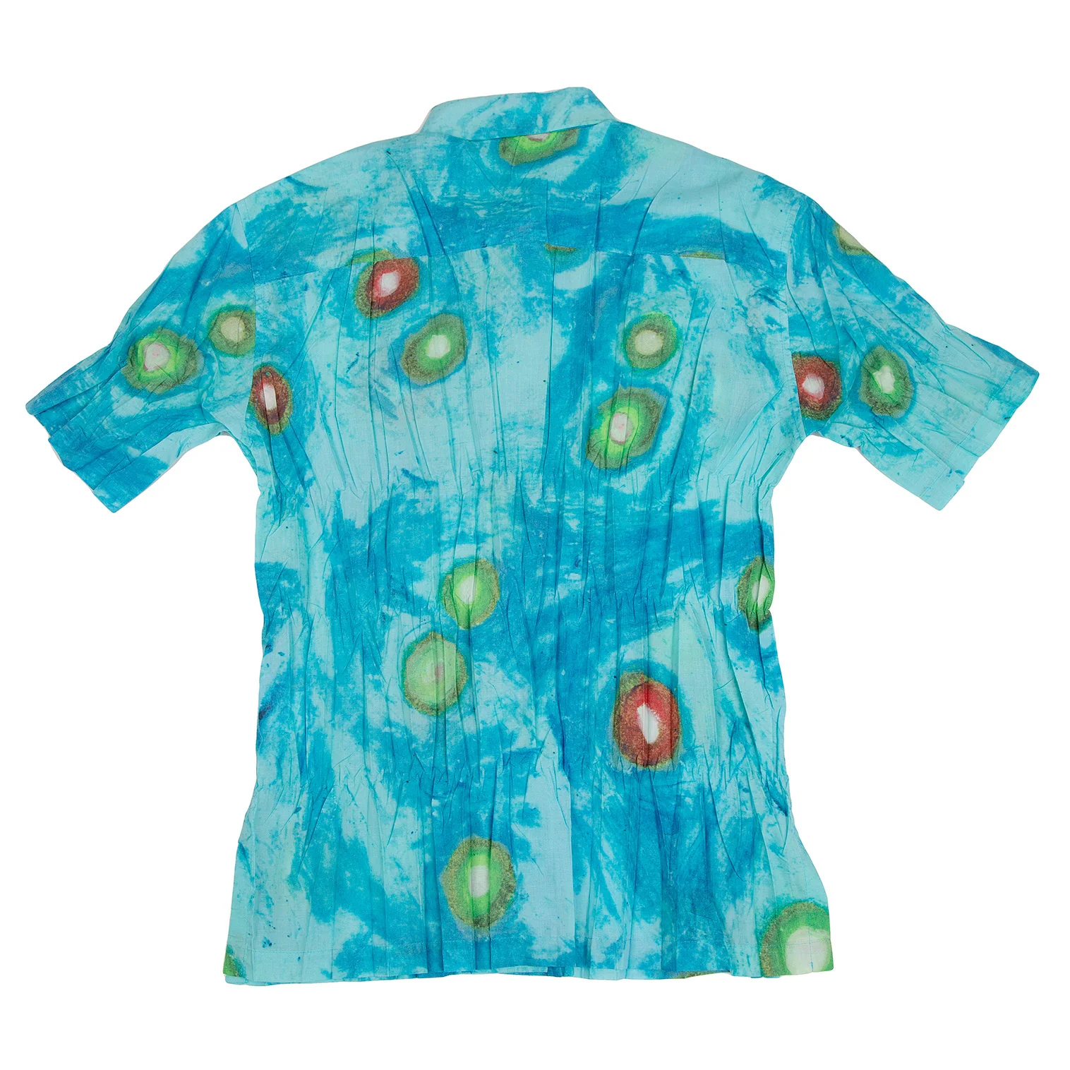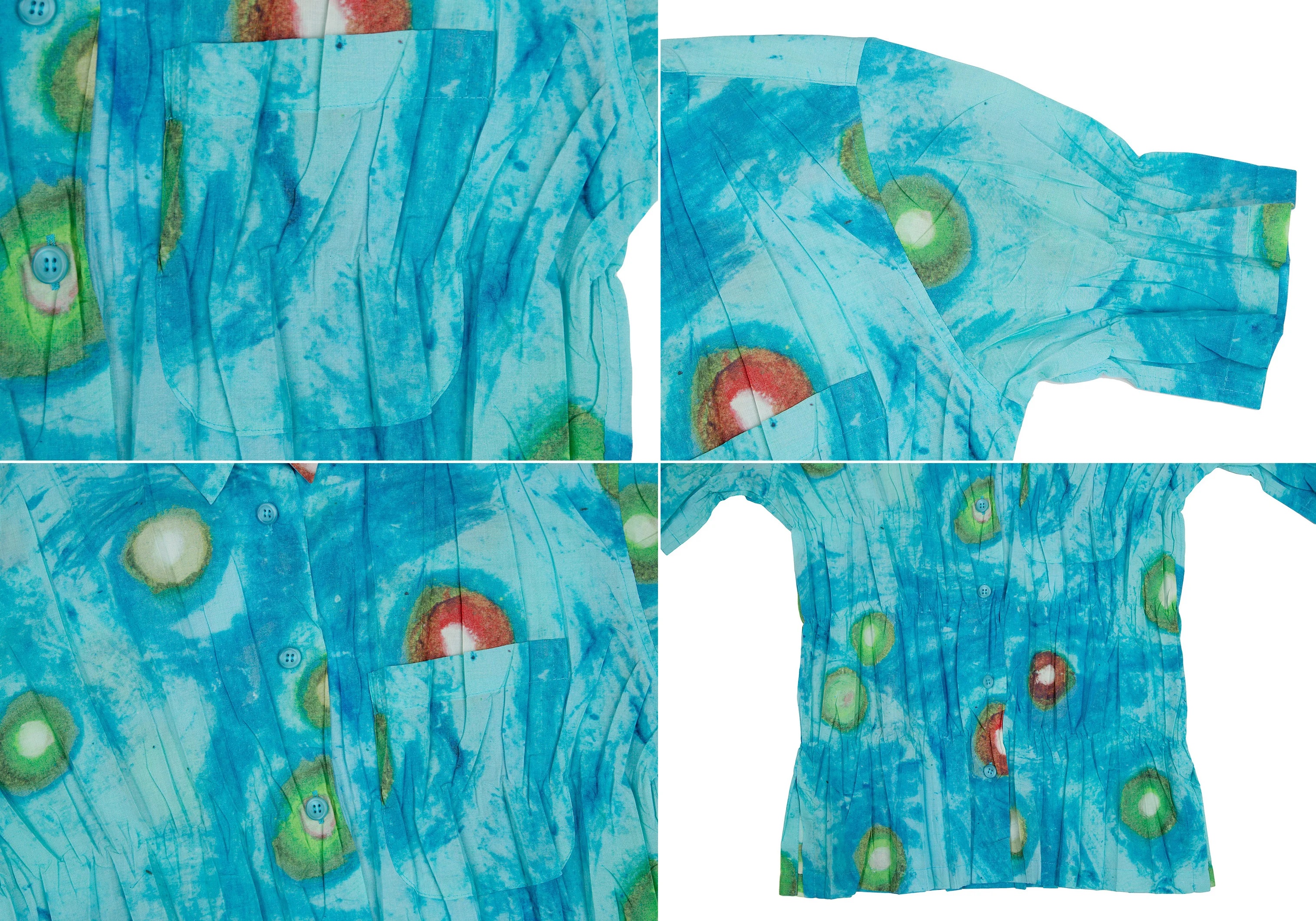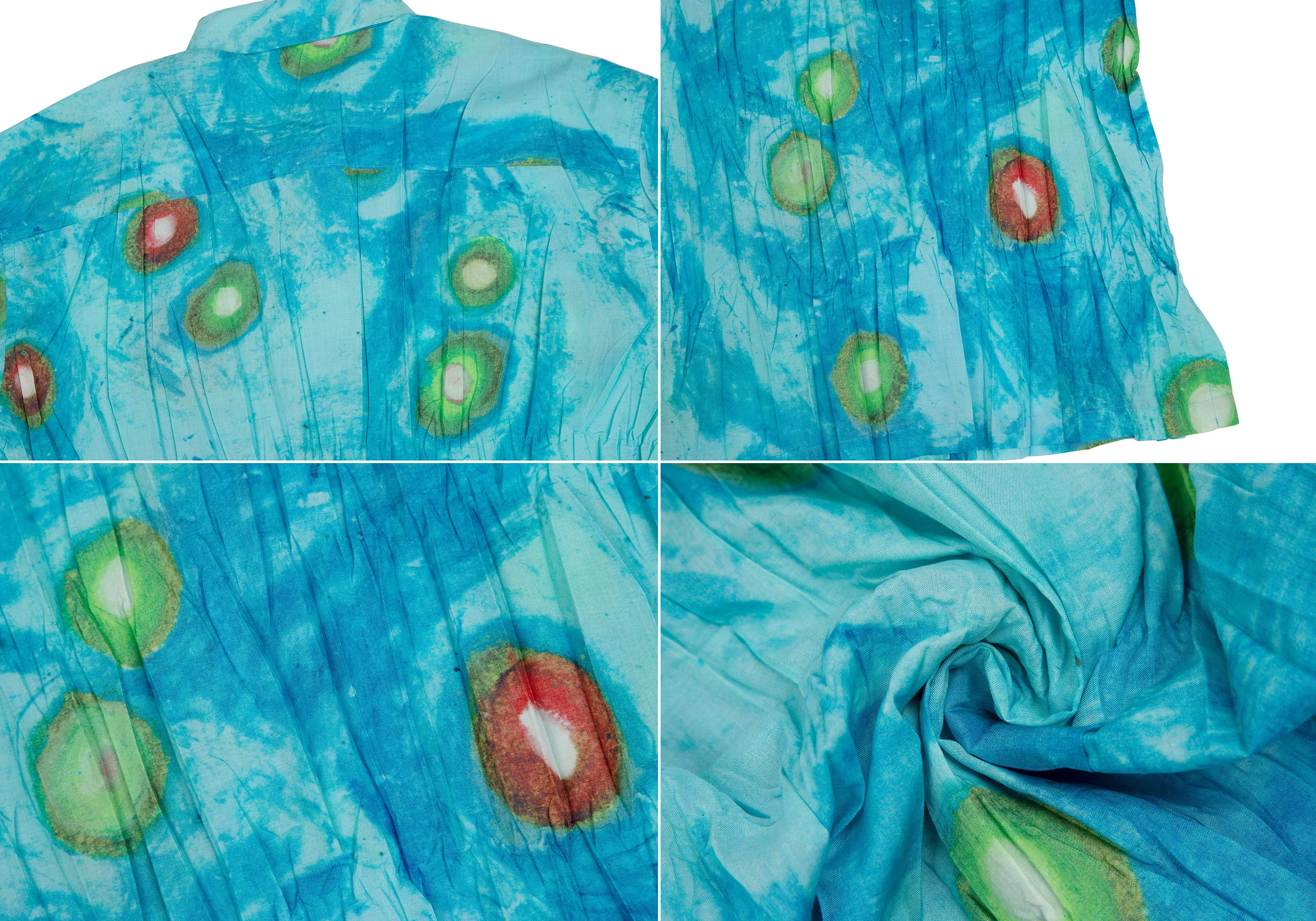 イッセイミヤケ ホワイトレーベルISSEY MIYAKE WHITELABEL 水彩プリントシワプリーツセットアップ 青2