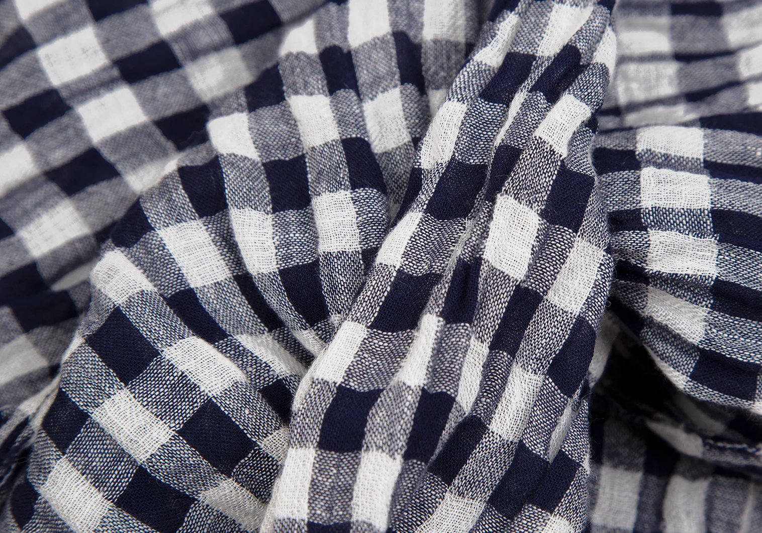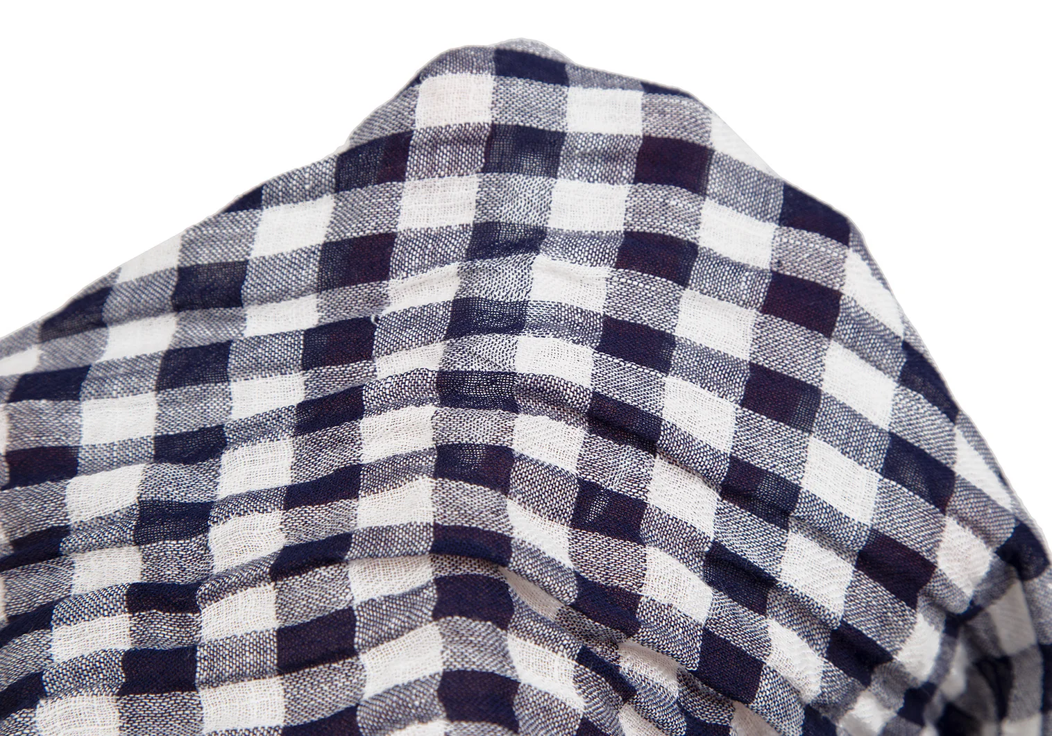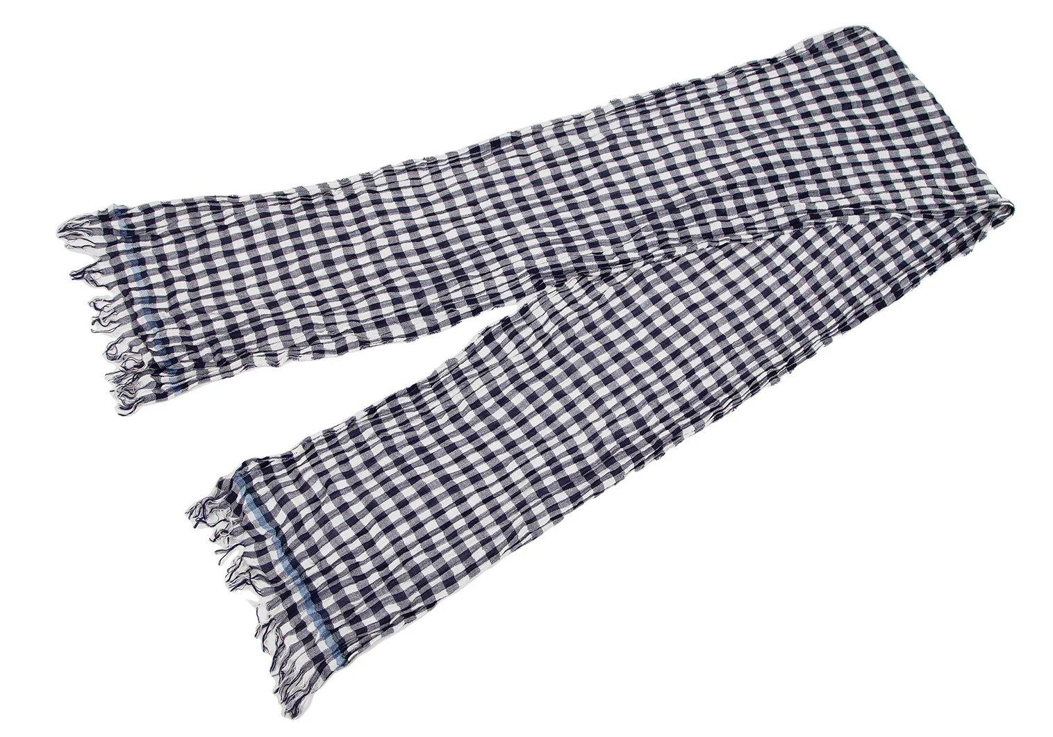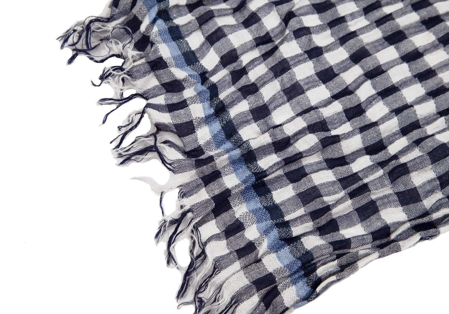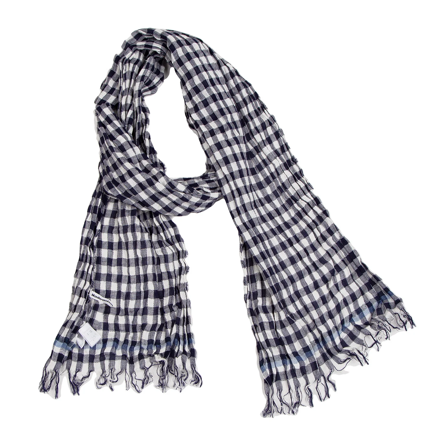 マドモアゼルノンノンMademoiselle NON NON リネンコットンシワ加工ブロックチェックストール 白紺