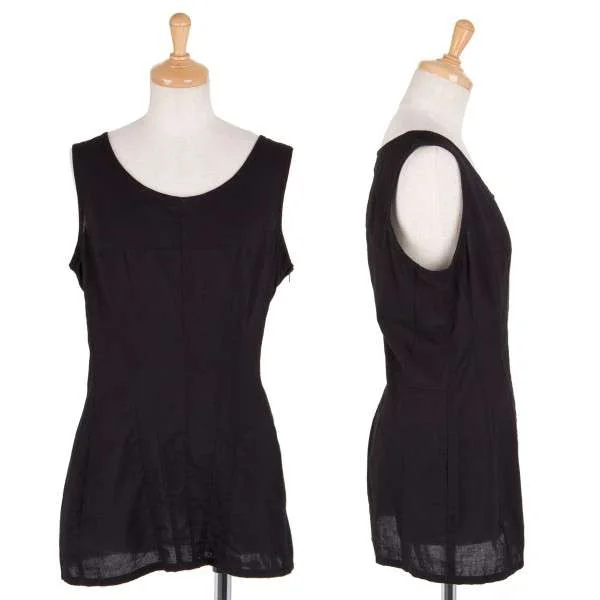 ヨウジヤマモト ファムyohji yamamoto FEMME ダーツ切替コットンノースリーブブラウス 黒1